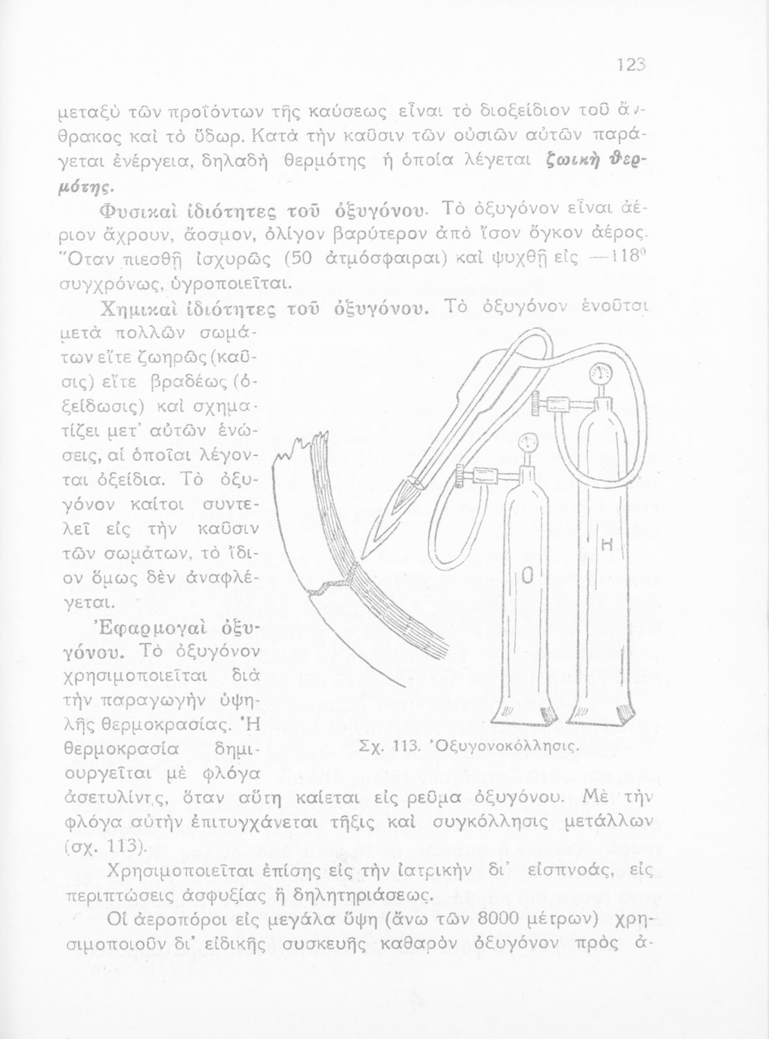 Σχολικό εγχειρίδιο της Α΄ Τάξης των Αστικών Σχολείων για το μάθημα της Φυσικής. Παρέχει βασικές γνώσεις της Φυσικής επιστήμης και της Χημείας. Αναλύει τις ιδιότητες των σωμάτων, καθώς και της θερμότητας, του ηλεκτρισμού και του μαγνητισμού, την υδροστατική, την βαρύτητα και την αεροστατική. Σχετικά με τη Χημεία αναφέρεται στα μέταλλα, στα οξέα, τις βάσεις, τα άλατα. Αναφέρεται στην πρακτική εφαρμογή της φυσικής και της χημείας στην καθημερινότητά. Επίσης, περιλαμβάνει πολλά από τα όργανα, που χρησιμοποιούνται στη φυσική, και τη χημεία. Περιέχει εικόνες και σχεδιαγράμματα τα οποία βοηθούν τη διδασκαλία. Προτείνεται μια συγκεκριμένη δομή για τη διδασκαλία σύμφωνα με την οποία το μάθημα διαρθρώνεται αρχικά στην ανάγνωση, που αναφέρεται στη θεωρία, στην περίληψη των σημαντικότερων σημείων, στις ερωτήσεις κατανόησης και τέλος στο γύμνασμα, το οποίο είναι η πρακτική εφαρμογή για την εμπέδωση της θεωρίας.
