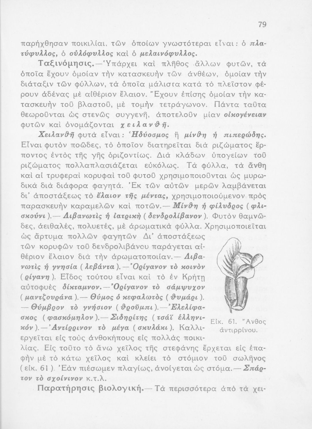 Σχολικό εγχειρίδιο Φυτολογίας για τη Β΄ τάξη των Εξαταξίων Γυμνασίων και Ημιγυμνασίων και τη Δ΄ τάξη των οκταταξίων Γυμνασίων που εξετάζει φυτά της Ελλάδας και παραθέτει στοιχεία γενικής φυτολογίας για την ...