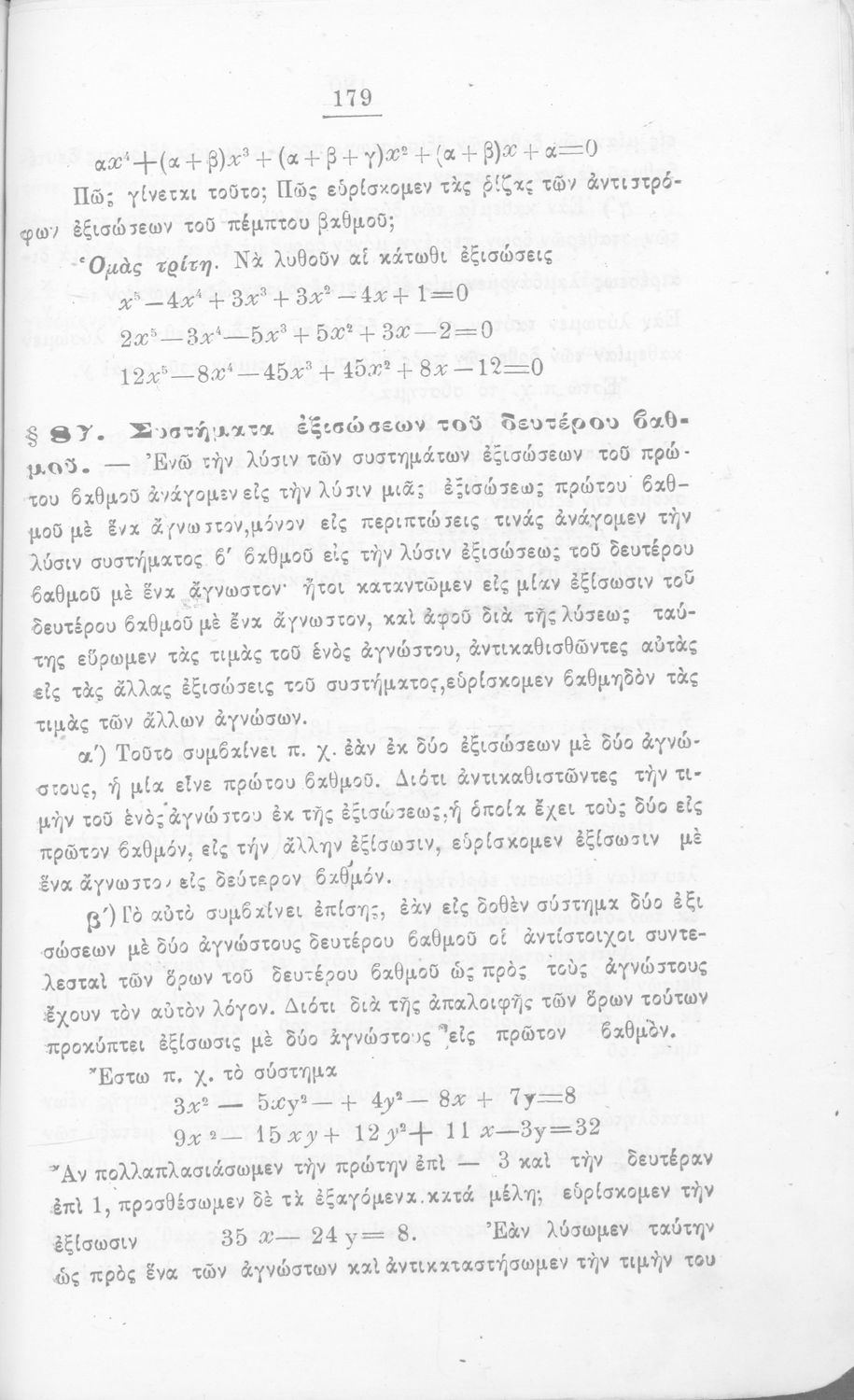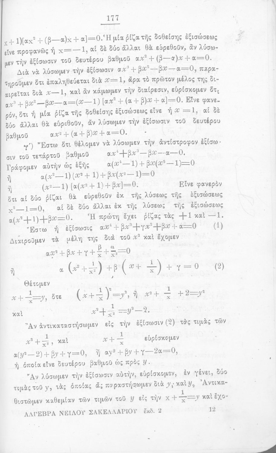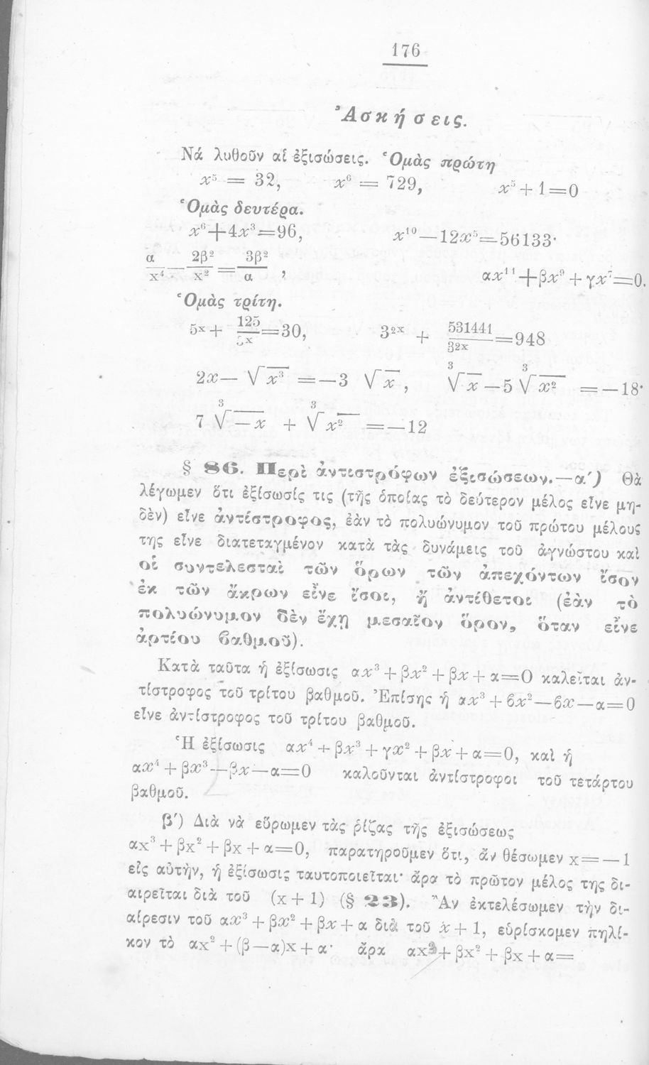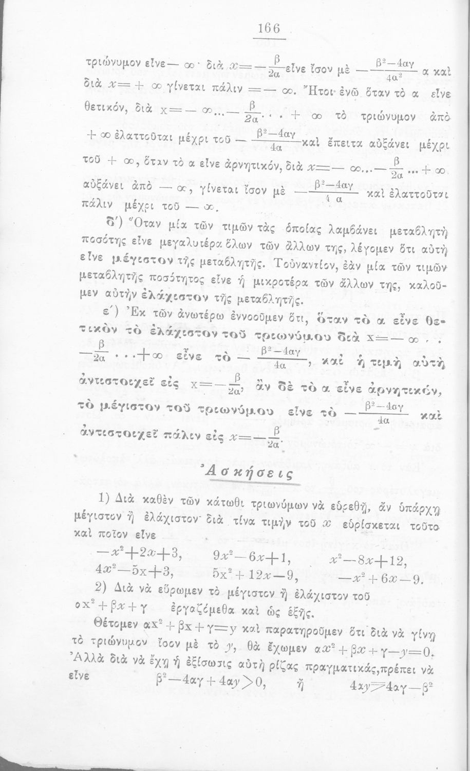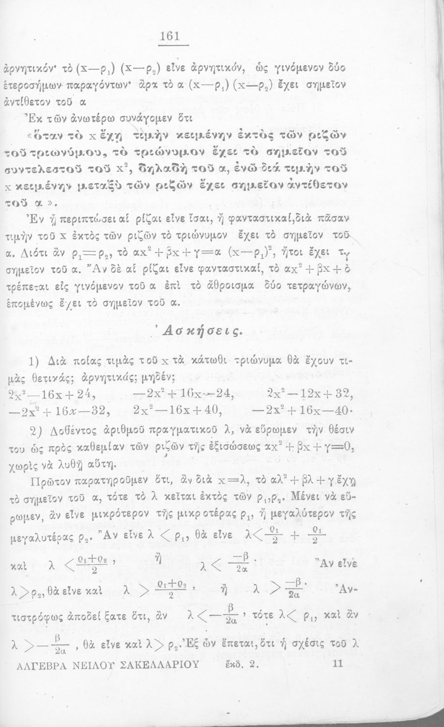 Σχολικό εγχειρίδιο Άλγεβρας για τα Γυμνάσια χωρισμένο σε θεωρία και ασκήσεις. Ο συγγραφέας ήταν καθηγητής στο Πανεπιστήμιο Αθηνών.