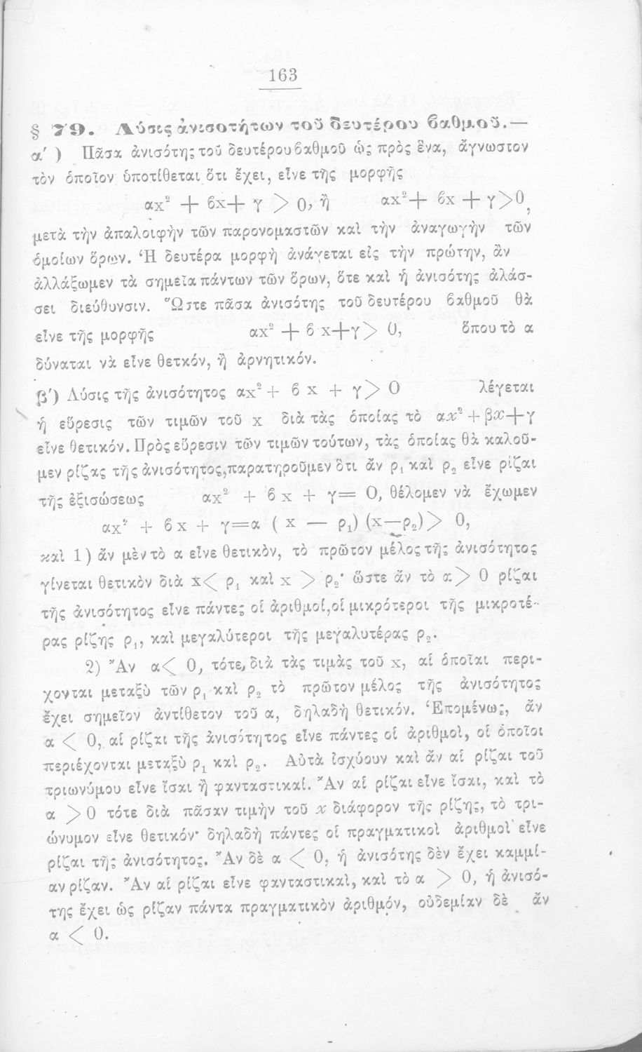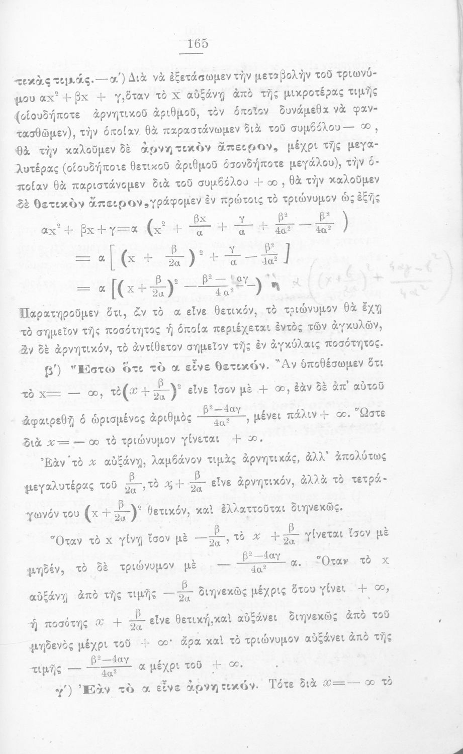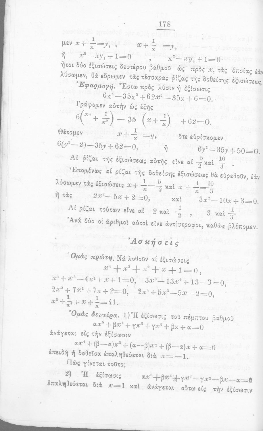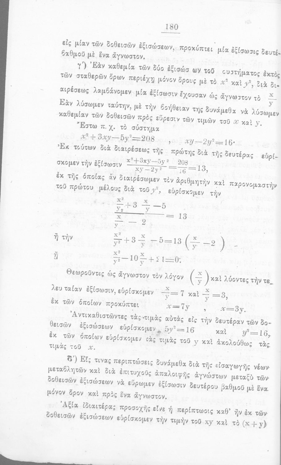 Σχολικό εγχειρίδιο Άλγεβρας για τα Γυμνάσια χωρισμένο σε θεωρία και ασκήσεις. Ο συγγραφέας ήταν καθηγητής στο Πανεπιστήμιο Αθηνών.