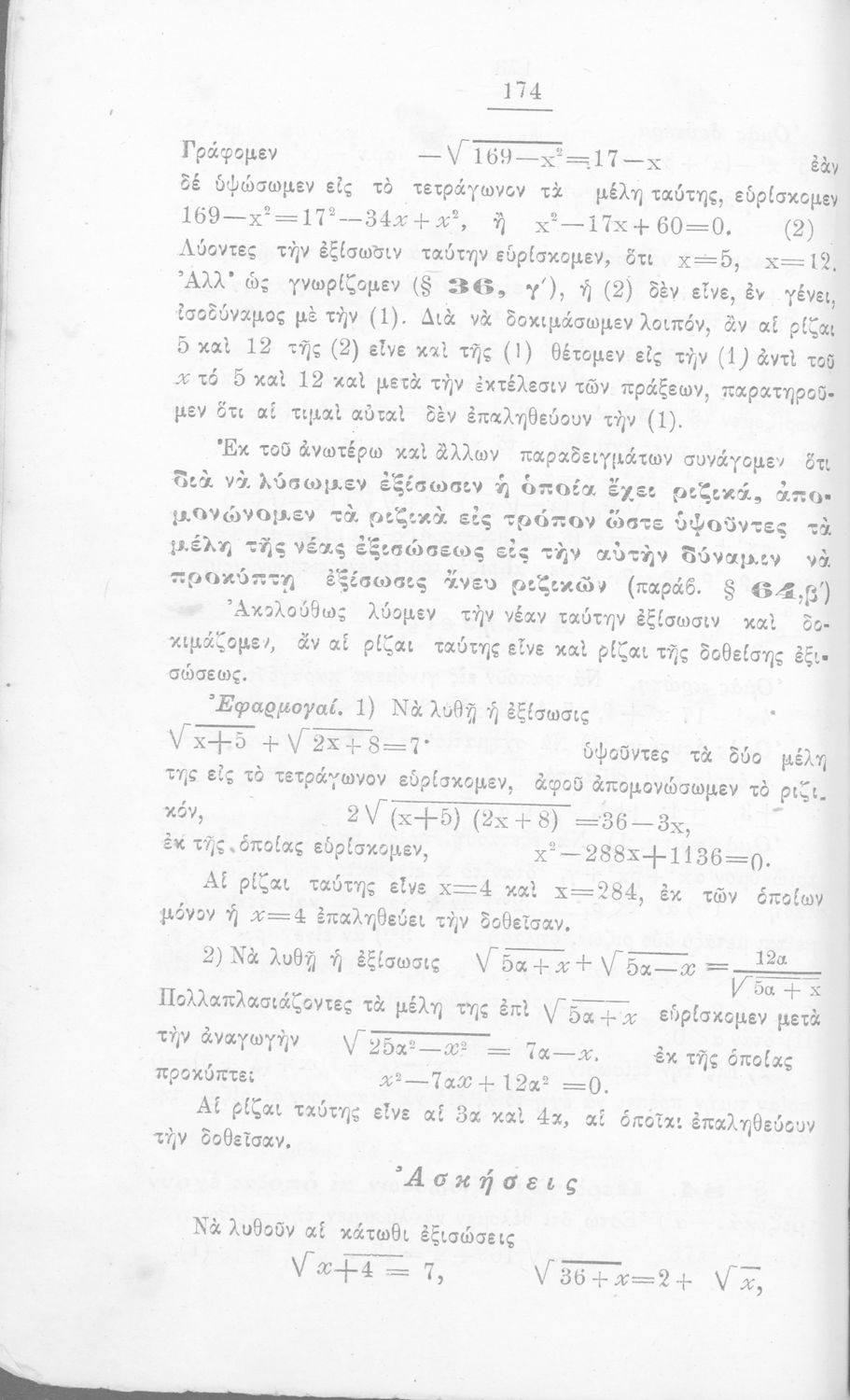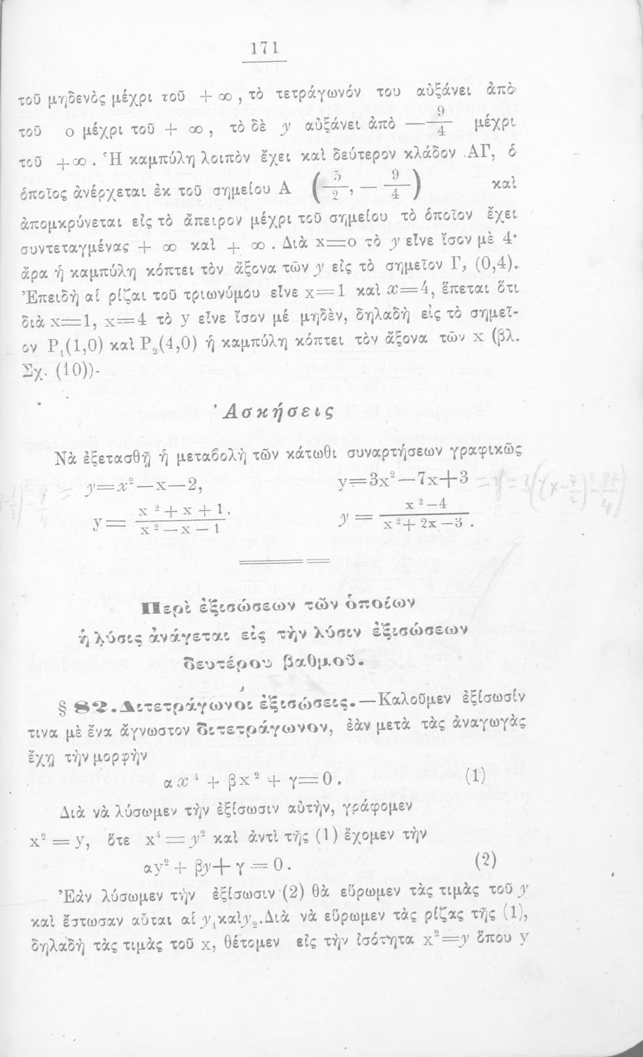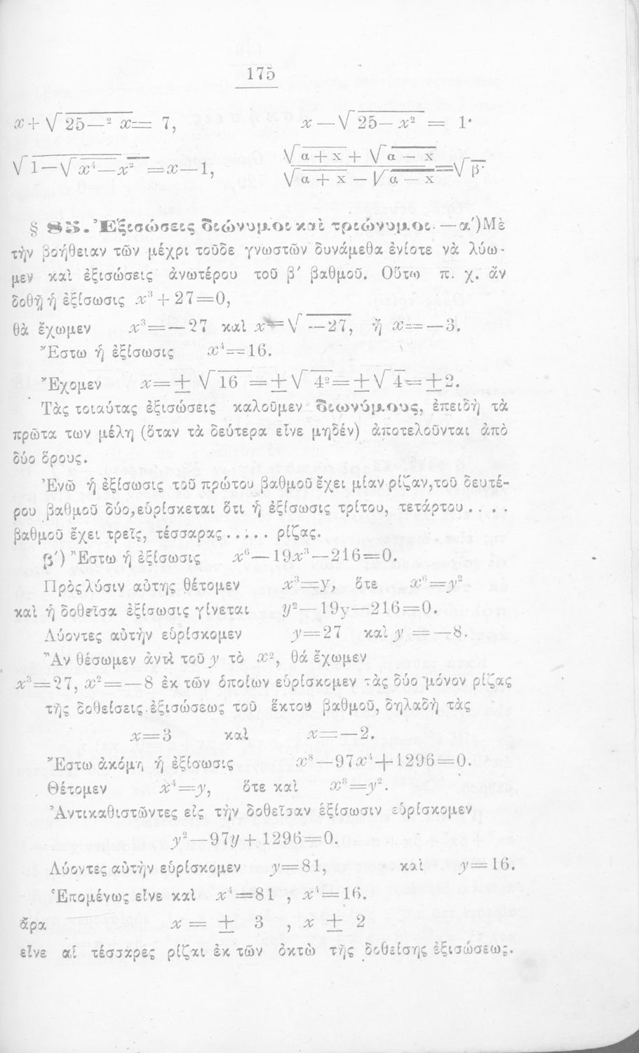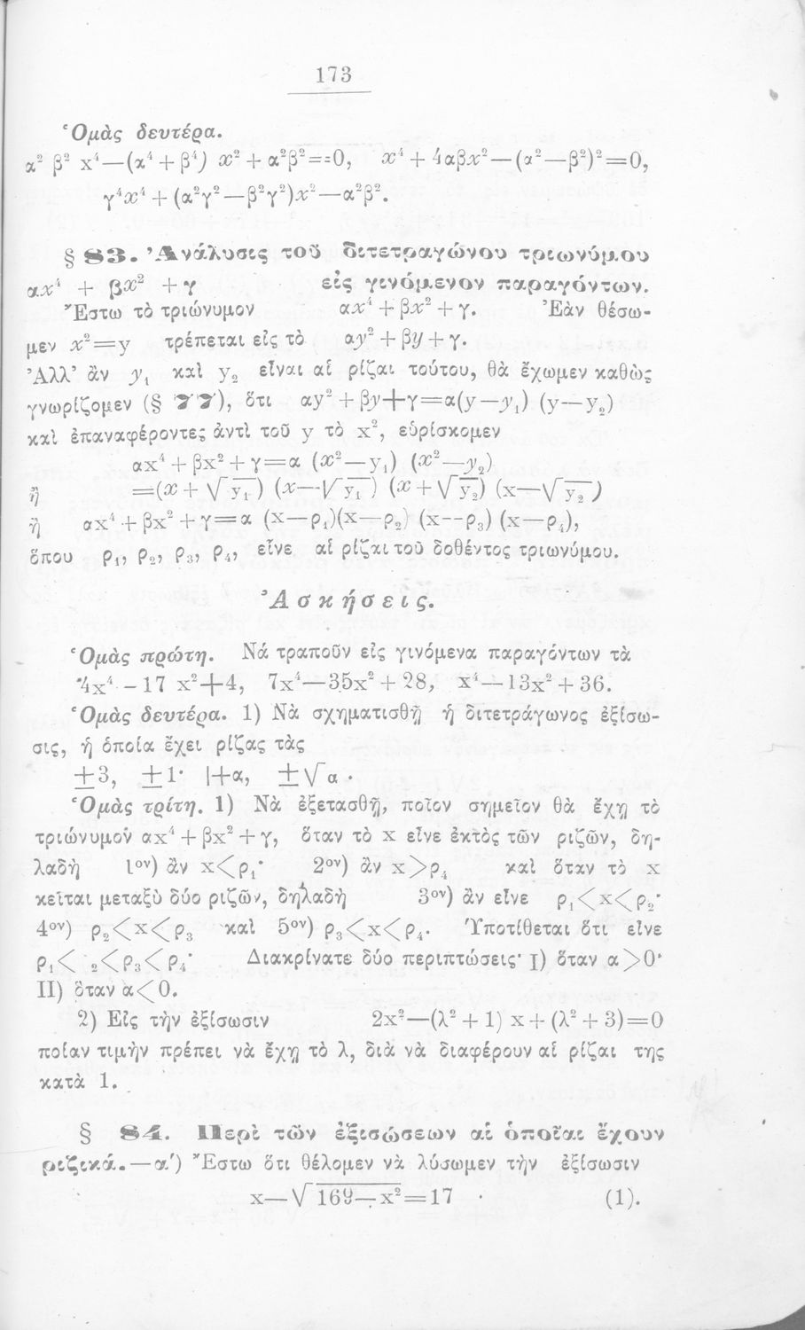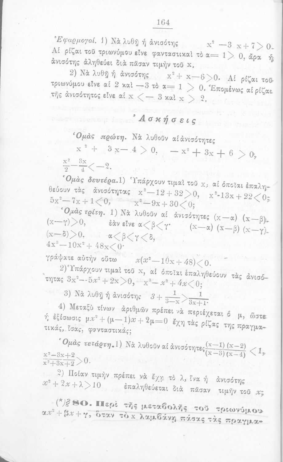 Σχολικό εγχειρίδιο Άλγεβρας για τα Γυμνάσια χωρισμένο σε θεωρία και ασκήσεις. Ο συγγραφέας ήταν καθηγητής στο Πανεπιστήμιο Αθηνών.