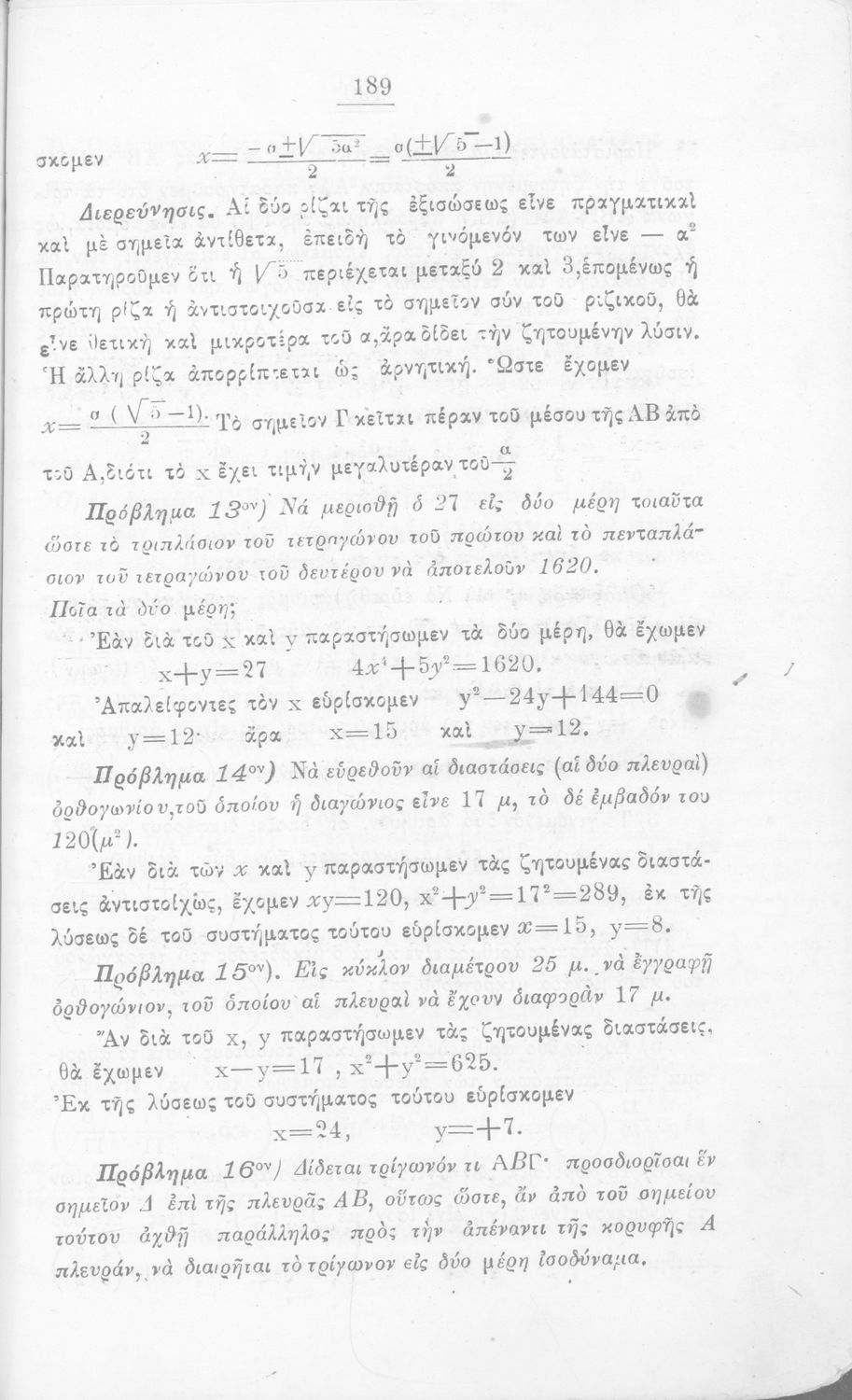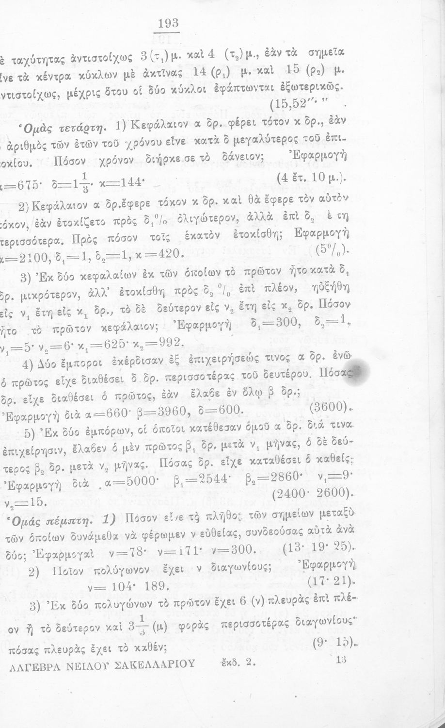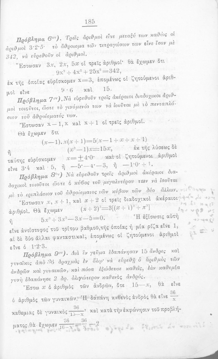 Σχολικό εγχειρίδιο Άλγεβρας για τα Γυμνάσια χωρισμένο σε θεωρία και ασκήσεις. Ο συγγραφέας ήταν καθηγητής στο Πανεπιστήμιο Αθηνών.