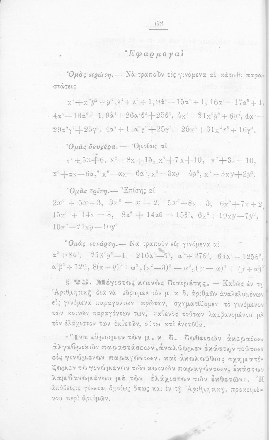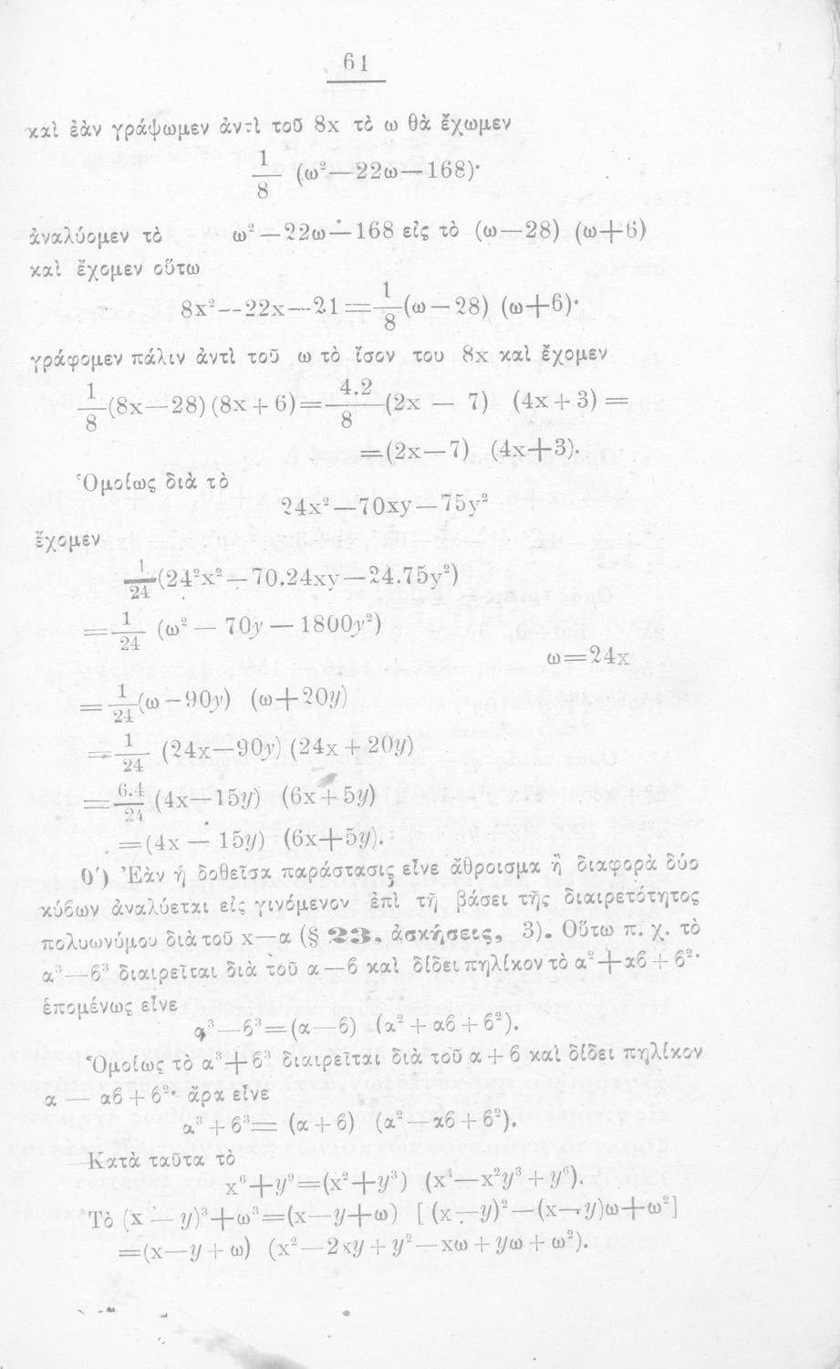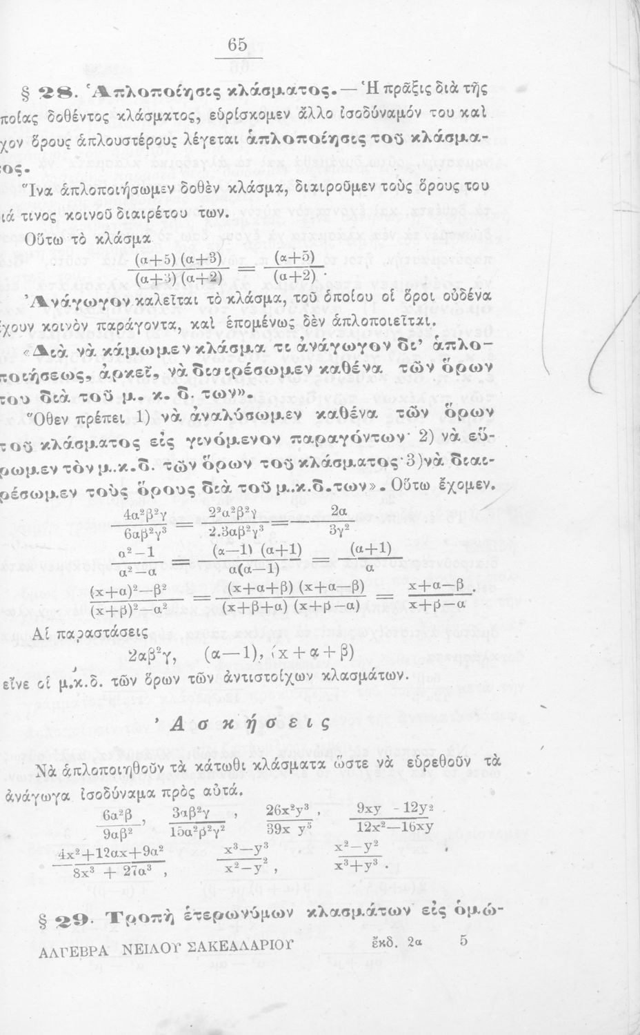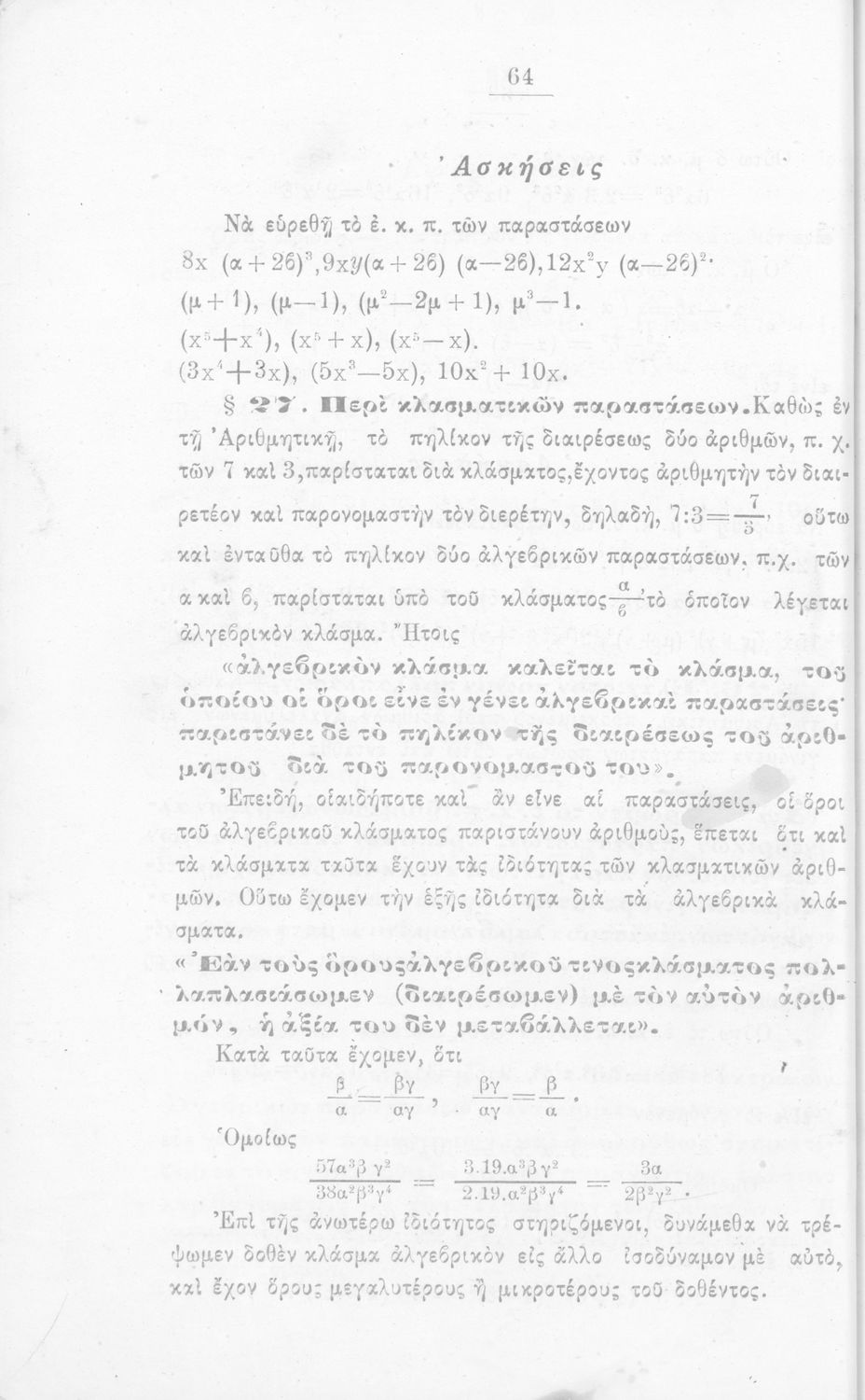 Σχολικό εγχειρίδιο Άλγεβρας για τα Γυμνάσια χωρισμένο σε θεωρία και ασκήσεις. Ο συγγραφέας ήταν καθηγητής στο Πανεπιστήμιο Αθηνών.