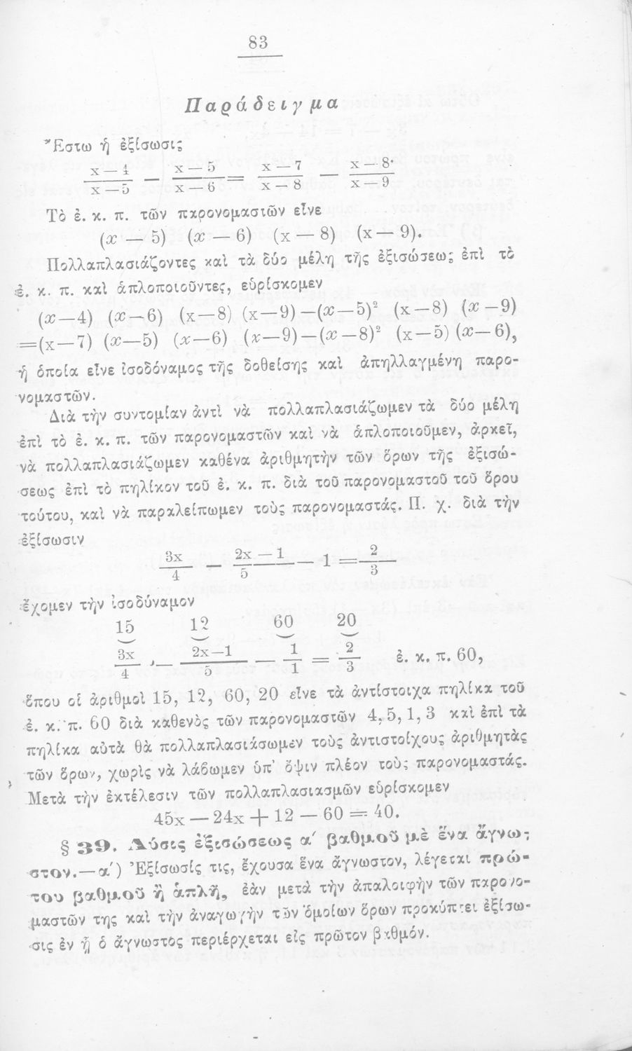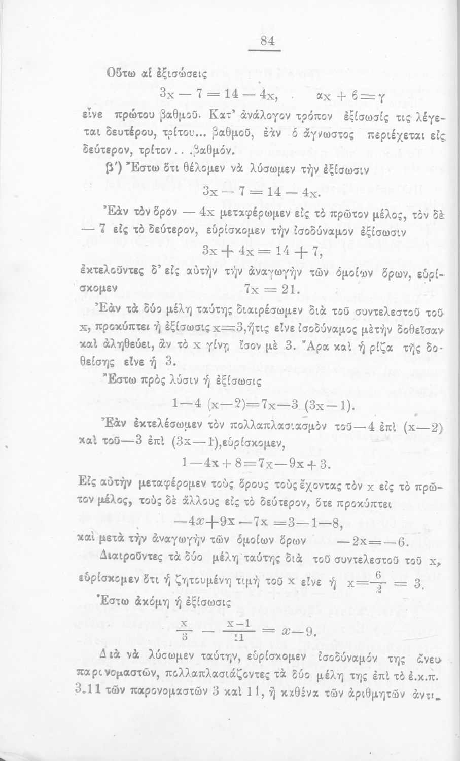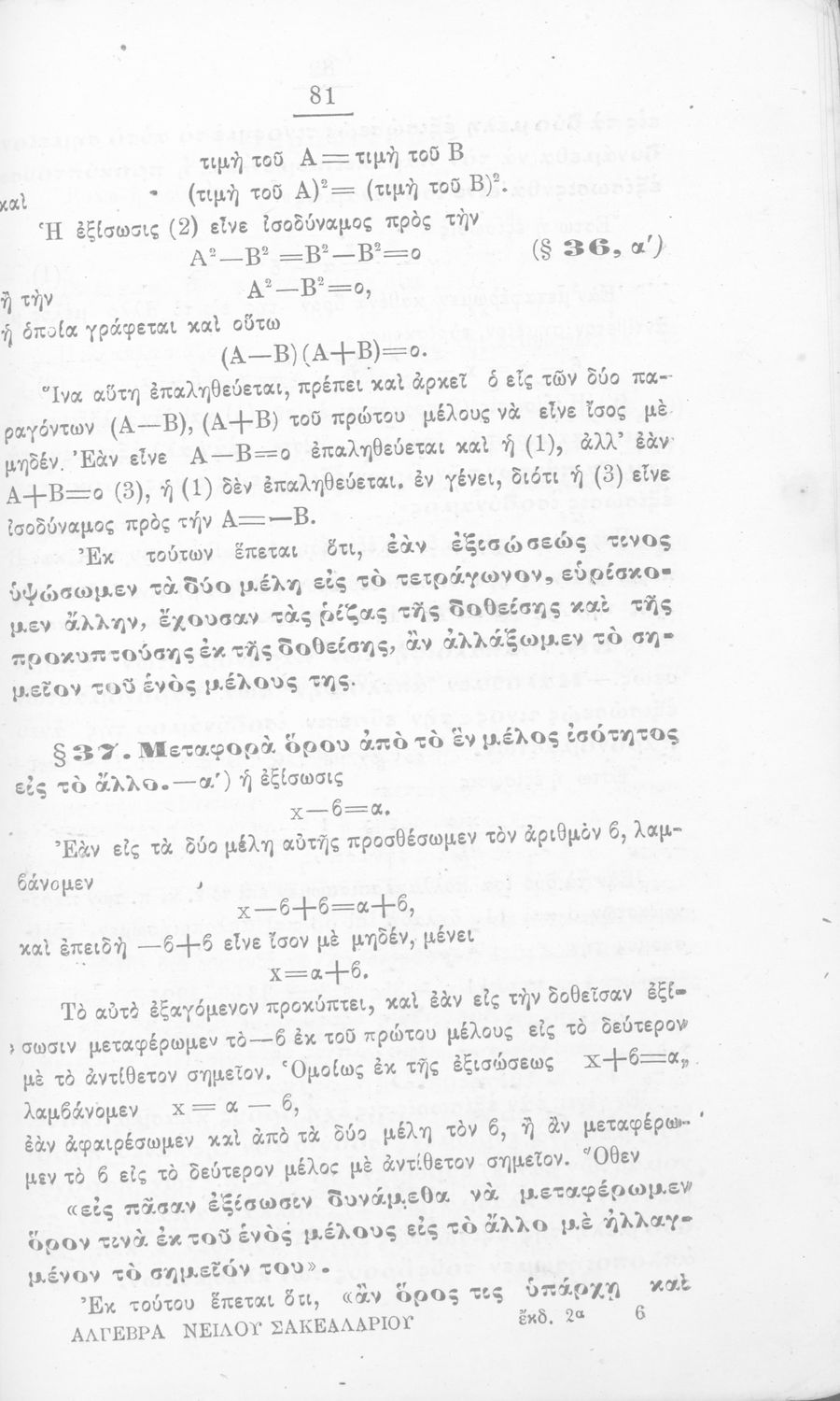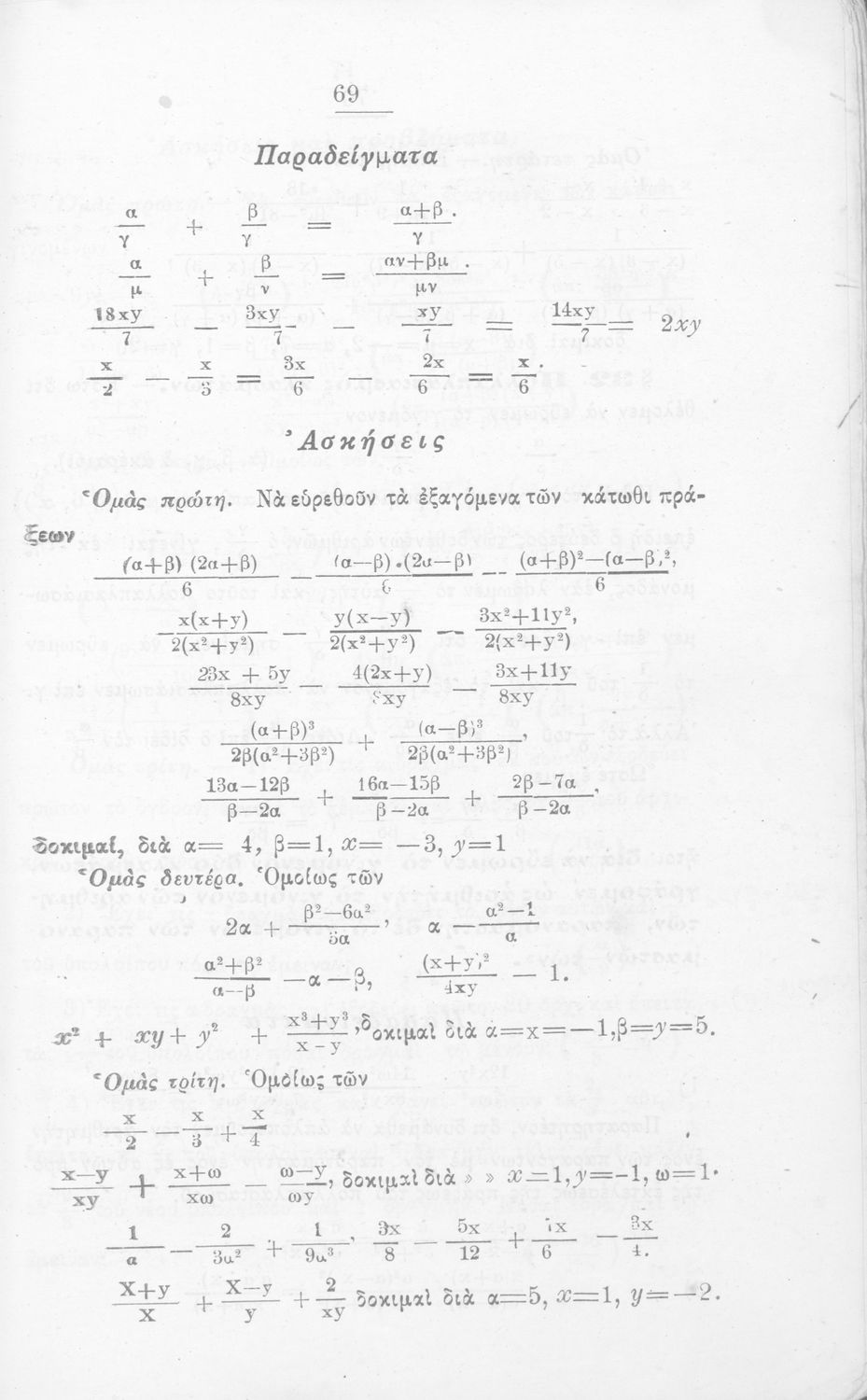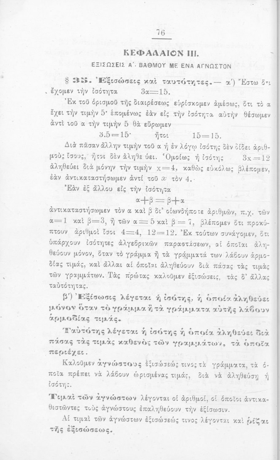 Σχολικό εγχειρίδιο Άλγεβρας για τα Γυμνάσια χωρισμένο σε θεωρία και ασκήσεις. Ο συγγραφέας ήταν καθηγητής στο Πανεπιστήμιο Αθηνών.