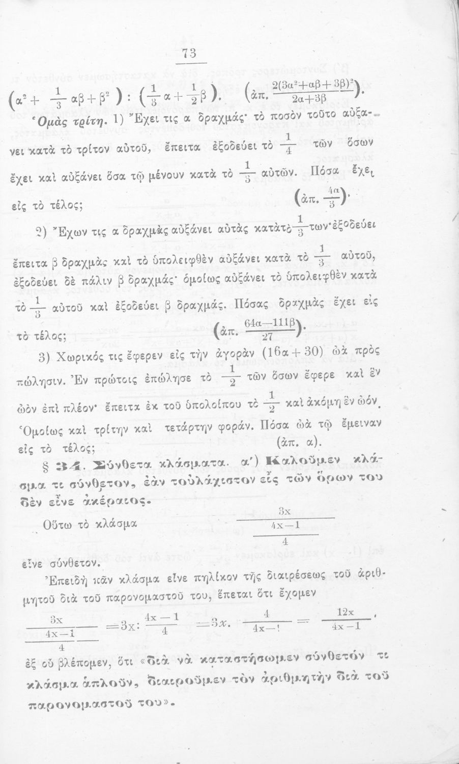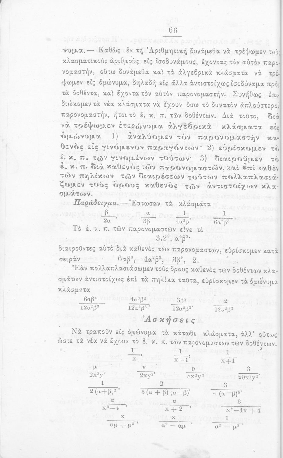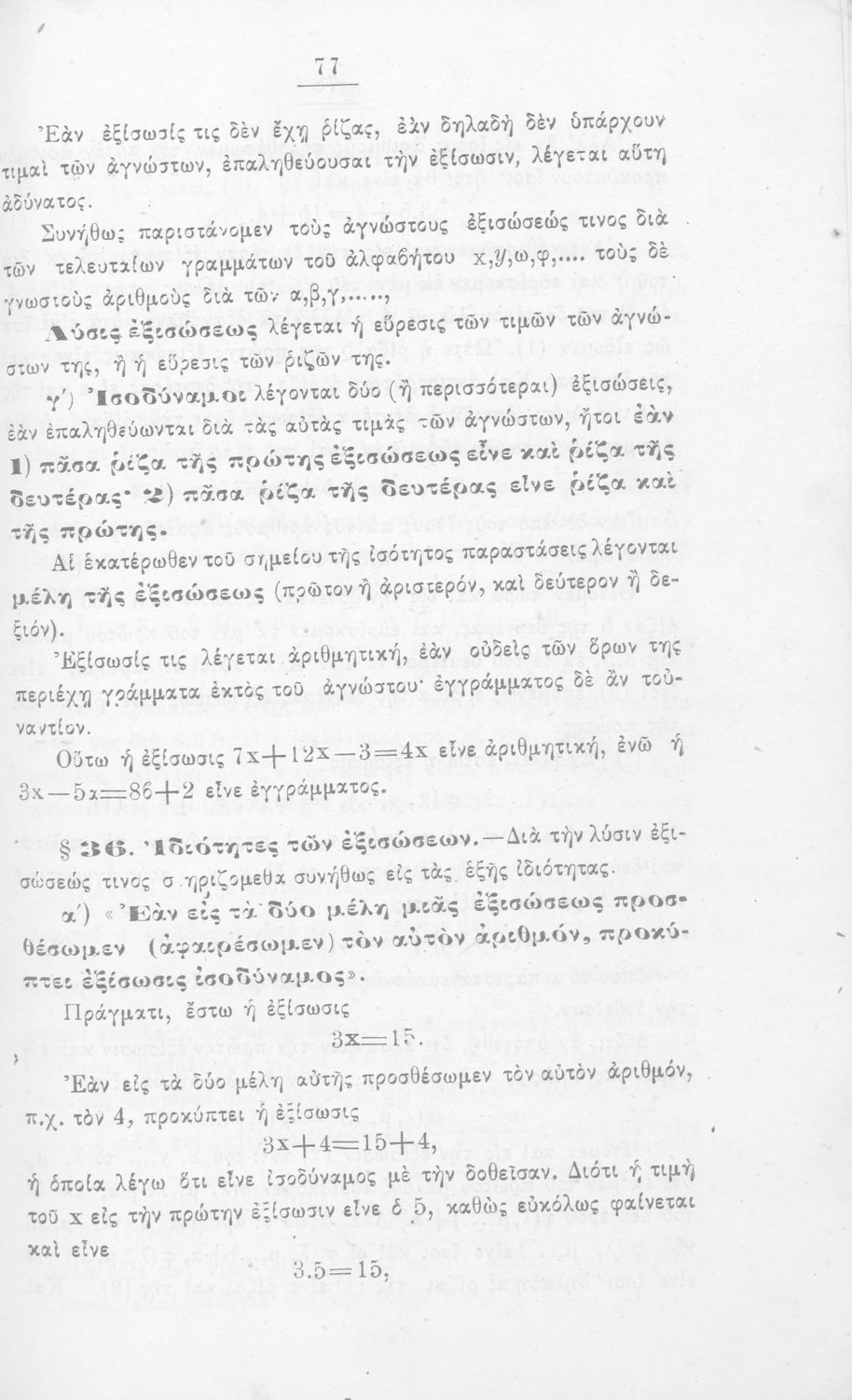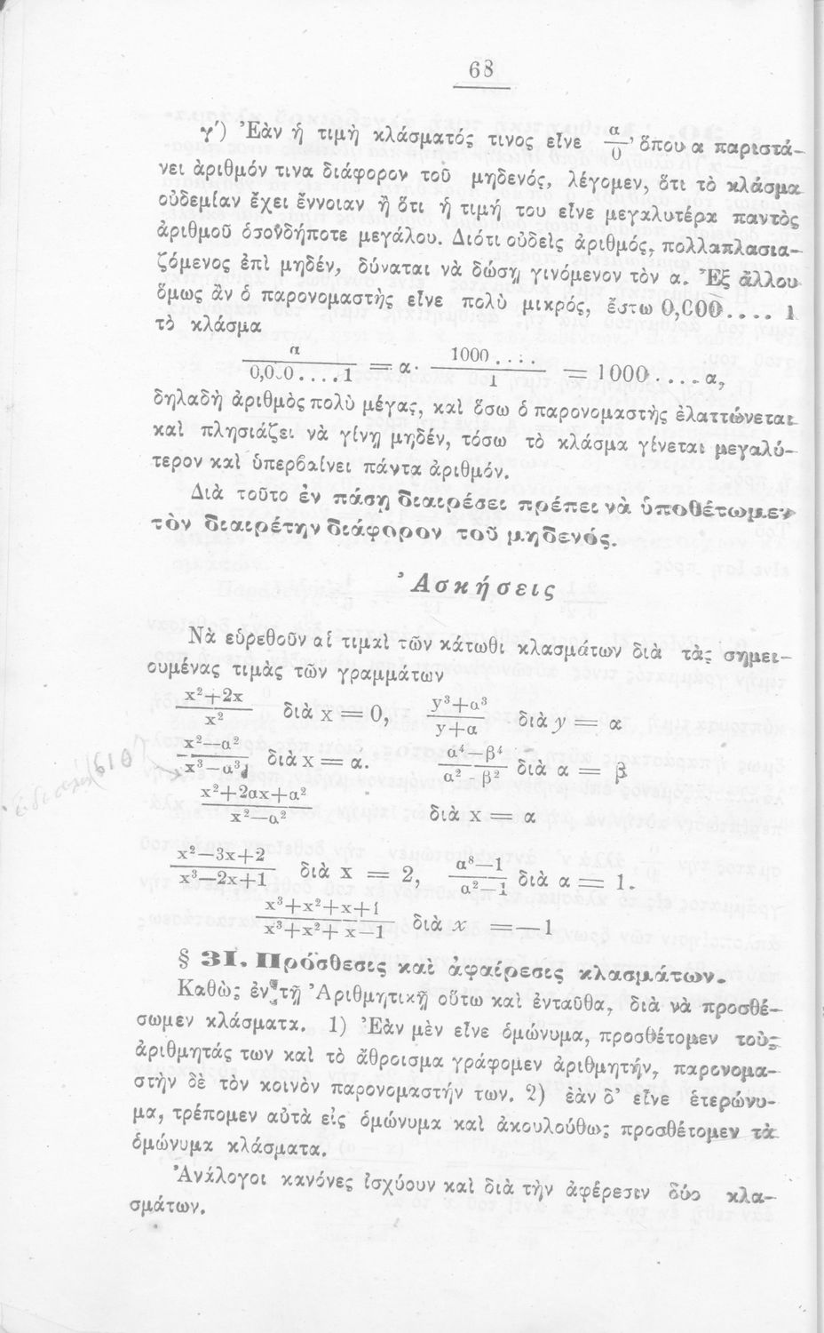 Σχολικό εγχειρίδιο Άλγεβρας για τα Γυμνάσια χωρισμένο σε θεωρία και ασκήσεις. Ο συγγραφέας ήταν καθηγητής στο Πανεπιστήμιο Αθηνών.