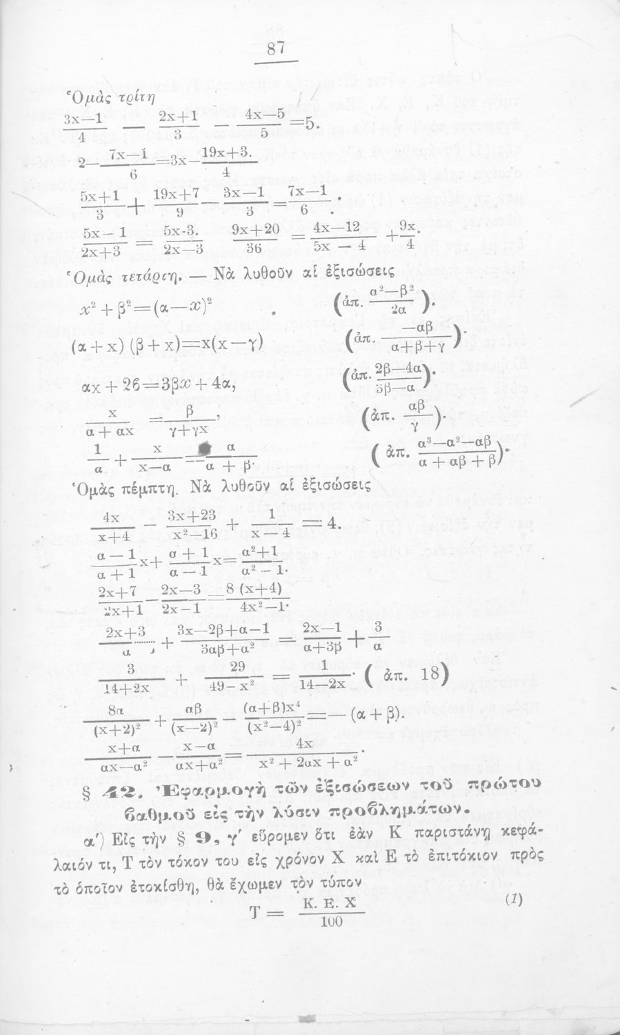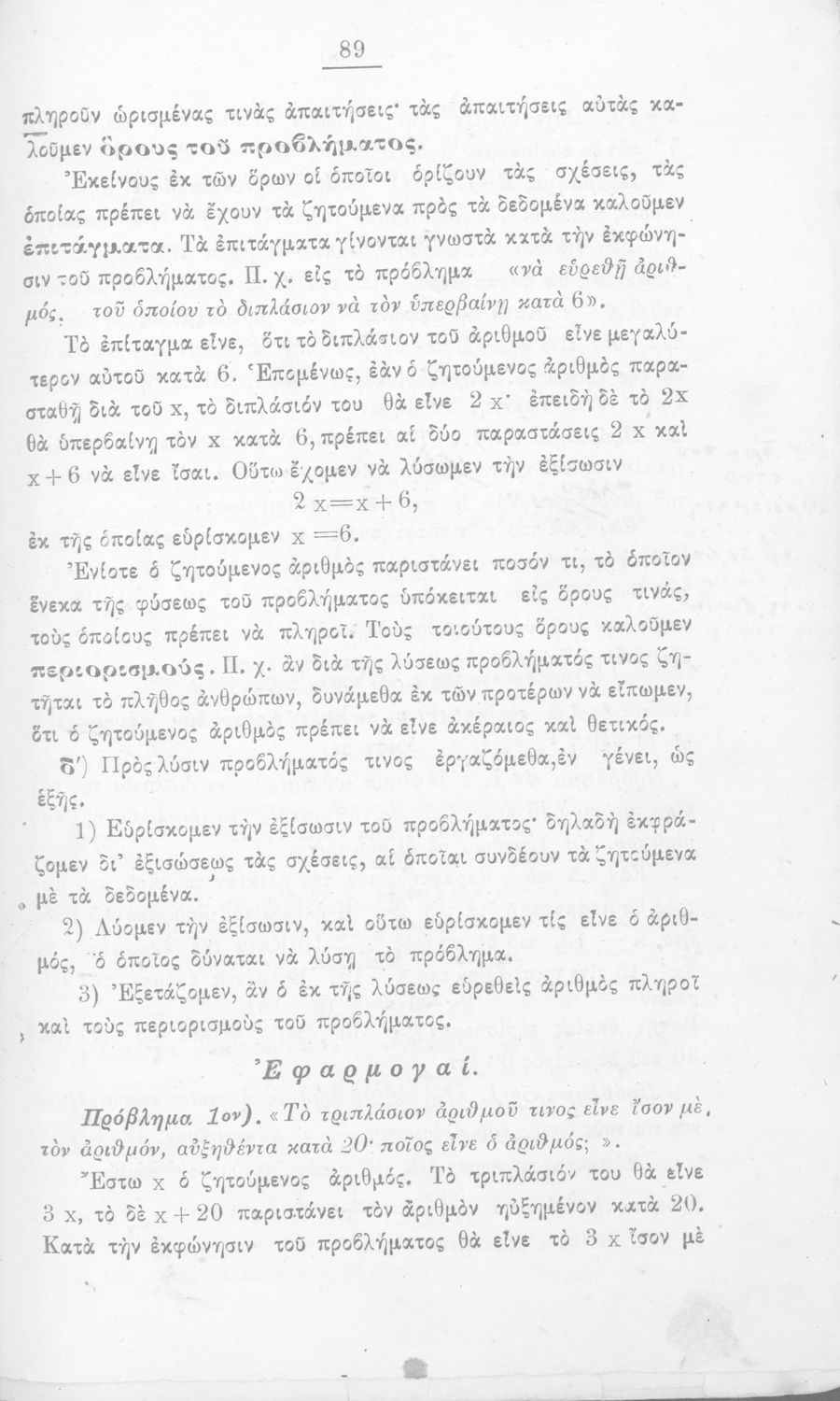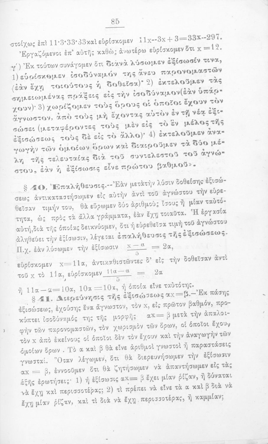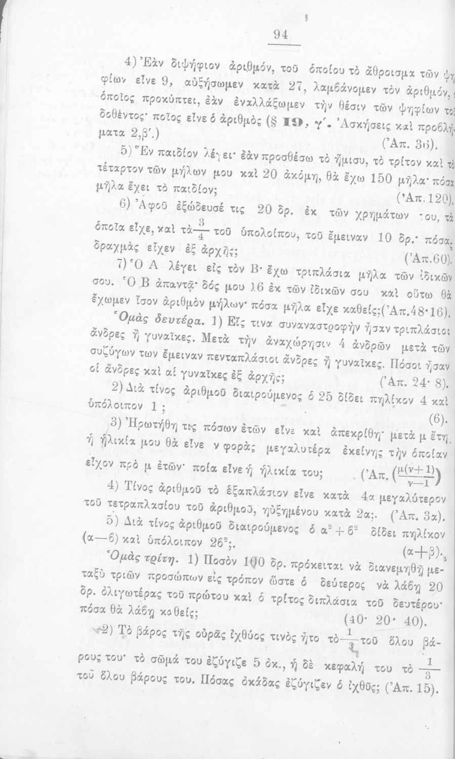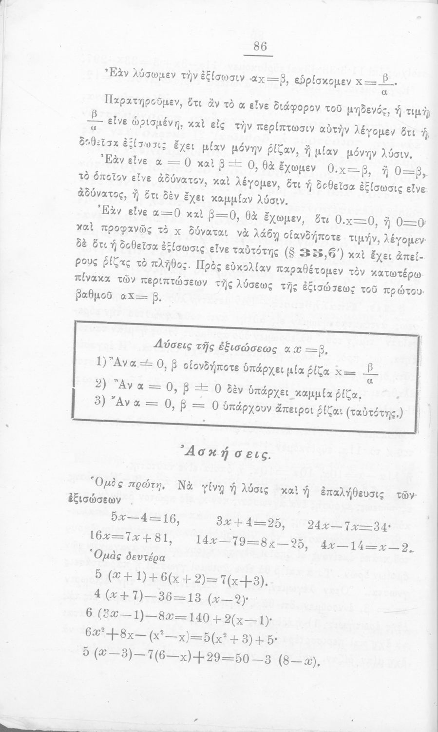 Σχολικό εγχειρίδιο Άλγεβρας για τα Γυμνάσια χωρισμένο σε θεωρία και ασκήσεις. Ο συγγραφέας ήταν καθηγητής στο Πανεπιστήμιο Αθηνών.