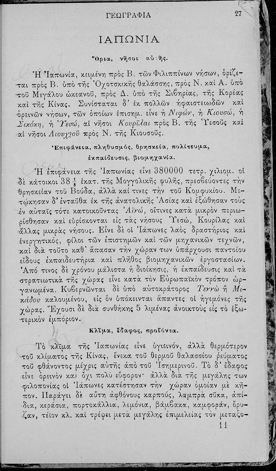 Τίτλος: Στοιχειώδης Γεωγραφία Πολιτική και Φυσική προς χρήσιν της εν τοις Ελληνικοίς σχολείοις σπουδαζούσης νεολαίας