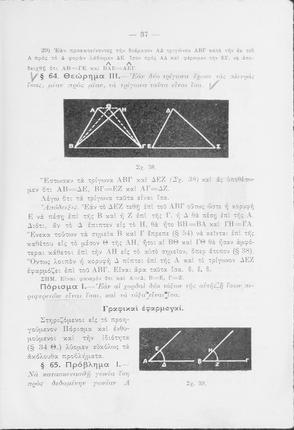 Παρουσίαση περιεχομένου: Σχολικό εγχειρίδιο Γεωμετρίας για τα Γυμνάσια και τα Λύκεια που είναι χωρισμένο σε Επιπεδομετρία και Στερεομετρία. Περιλαμβάνει θεωρήματα, πορίσματα και ασκήσεις. Περιέχει στοιχεία Αναλυτικής Γεωμετρίας και ακολουθεί τις επιταγές του Σχολείου Εργασίας.