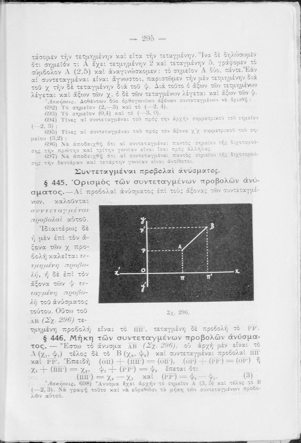 Παρουσίαση περιεχομένου: Σχολικό εγχειρίδιο Γεωμετρίας για τα Γυμνάσια και τα Λύκεια που είναι χωρισμένο σε Επιπεδομετρία και Στερεομετρία. Περιλαμβάνει θεωρήματα, πορίσματα και ασκήσεις. Περιέχει στοιχεία Αναλυτικής Γεωμετρίας και ακολουθεί τις επιταγές του Σχολείου Εργασίας.