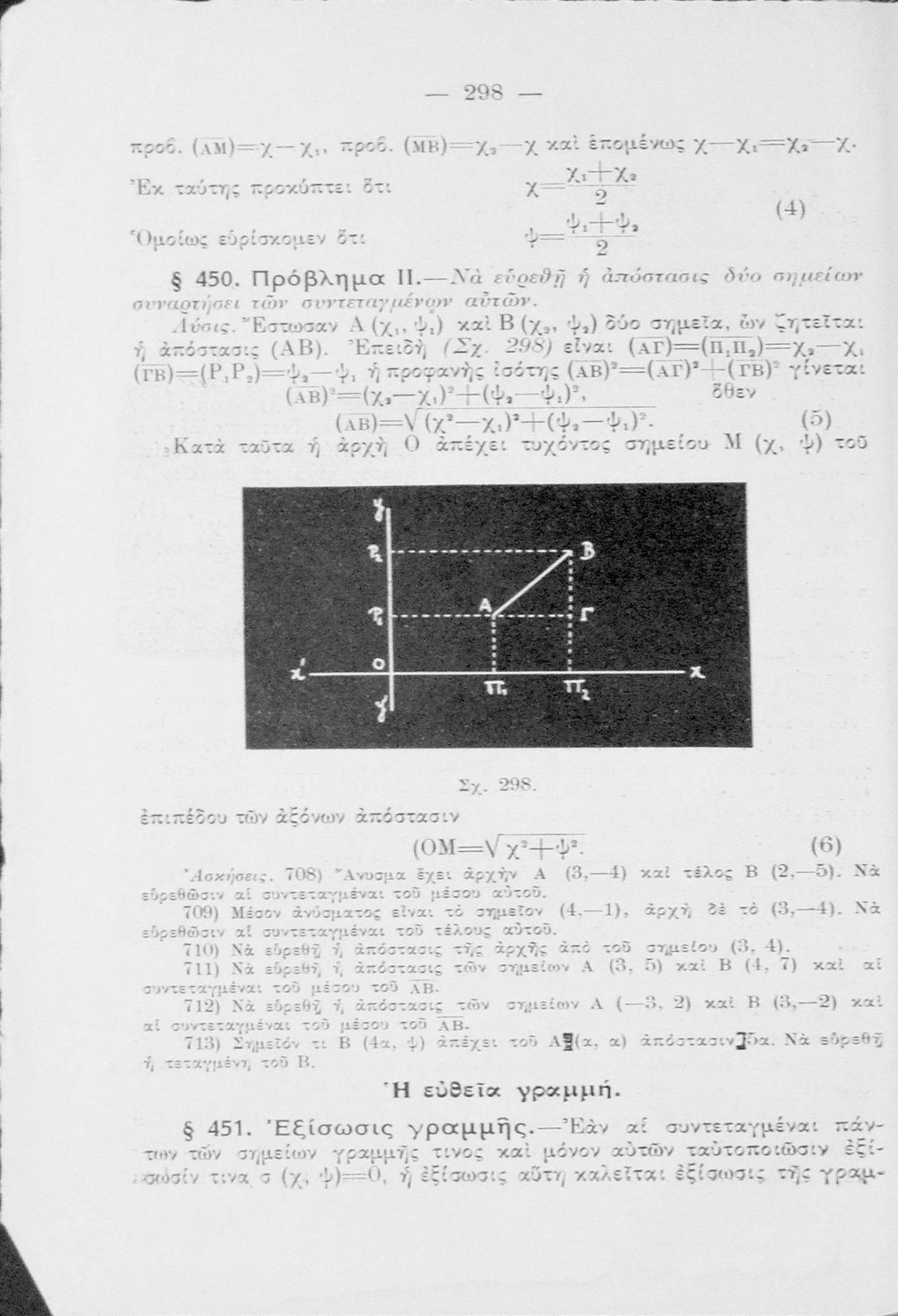 Σχολικό εγχειρίδιο Γεωμετρίας για τα Γυμνάσια και τα Λύκεια που είναι χωρισμένο σε Επιπεδομετρία και Στερεομετρία. Περιλαμβάνει θεωρήματα, πορίσματα και ασκήσεις. Περιέχει στοιχεία Αναλυτικής Γεωμετρίας και ακολουθεί τις επιταγές του Σχολείου Εργασίας.
