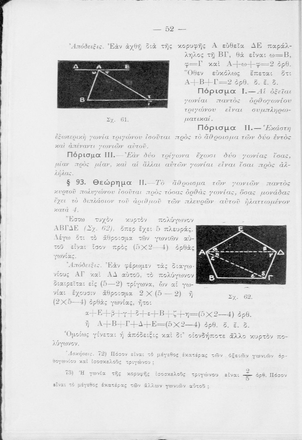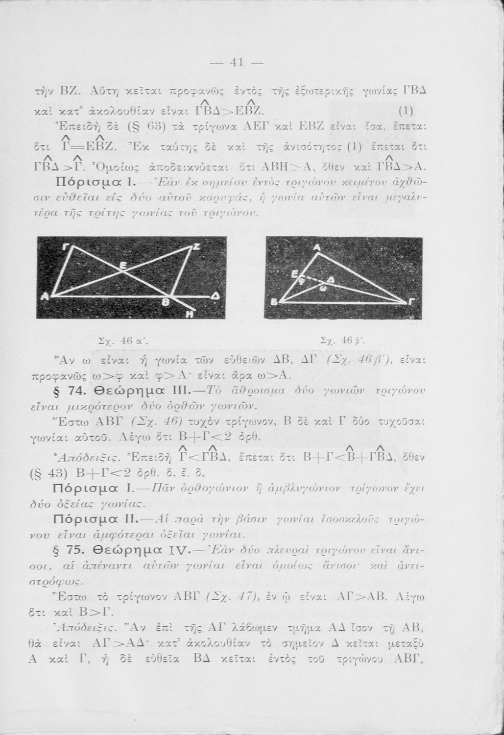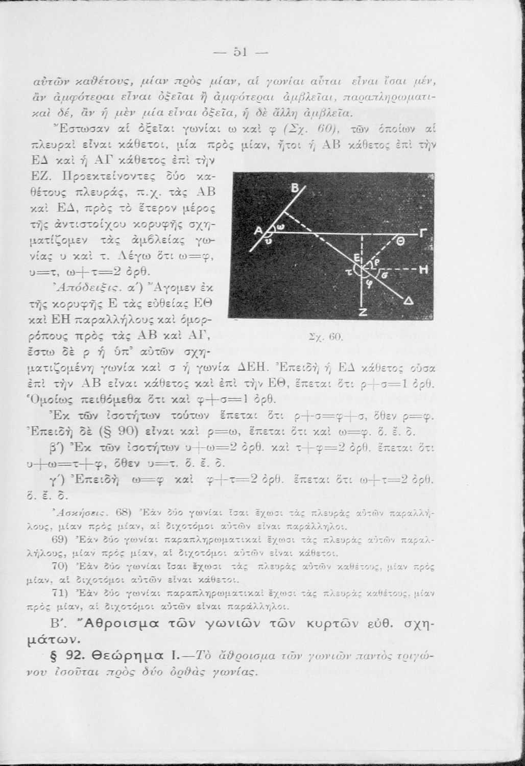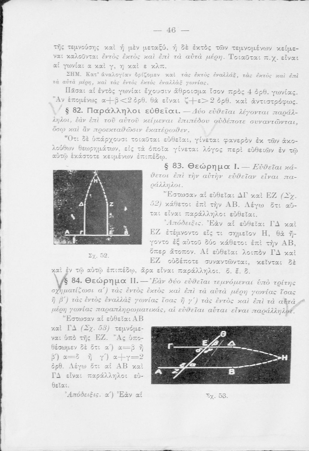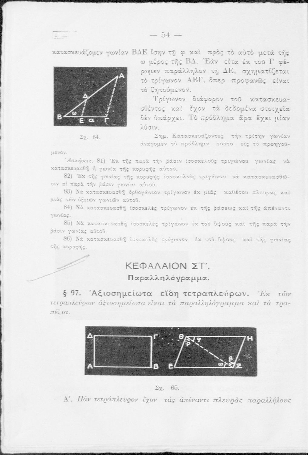 Σχολικό εγχειρίδιο Γεωμετρίας για τα Γυμνάσια και τα Λύκεια που είναι χωρισμένο σε Επιπεδομετρία και Στερεομετρία. Περιλαμβάνει θεωρήματα, πορίσματα και ασκήσεις. Περιέχει στοιχεία Αναλυτικής Γεωμετρίας και ακολουθεί τις επιταγές του Σχολείου Εργασίας.