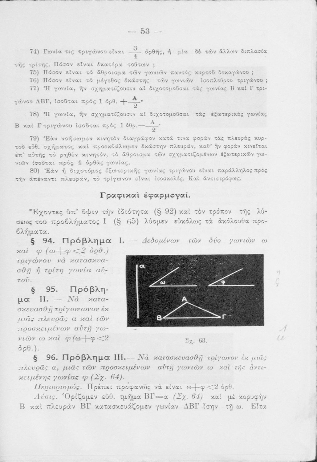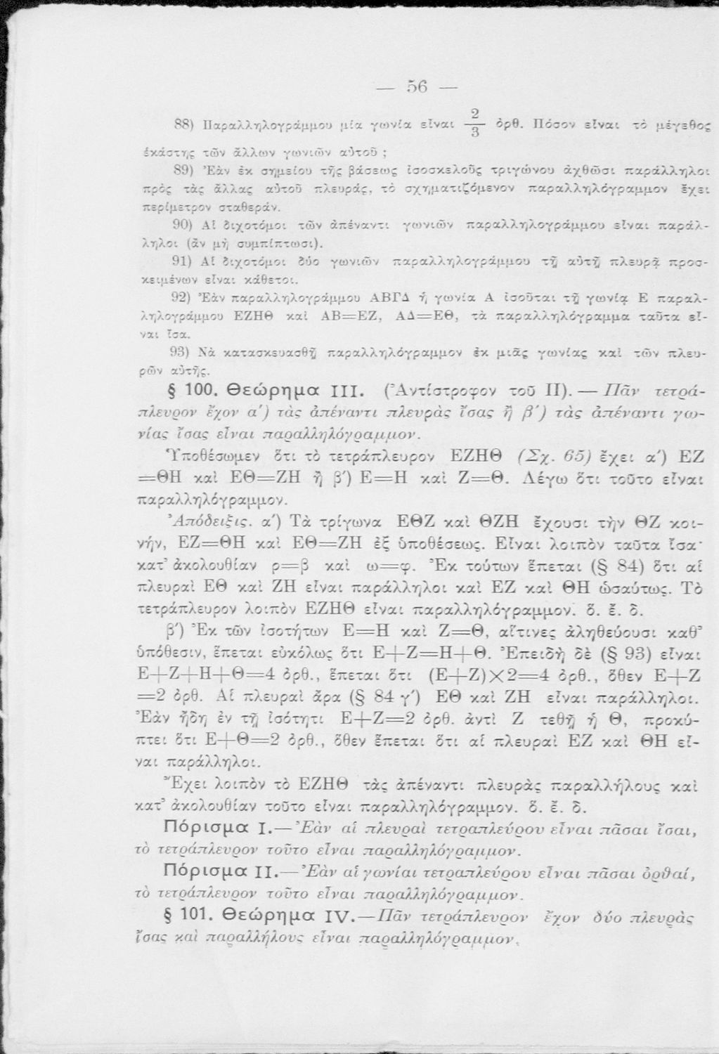 Παρουσίαση περιεχομένου: Σχολικό εγχειρίδιο Γεωμετρίας για τα Γυμνάσια και τα Λύκεια που είναι χωρισμένο σε Επιπεδομετρία και Στερεομετρία. Περιλαμβάνει θεωρήματα, πορίσματα και ασκήσεις. Περιέχει στοιχεία Αναλυτικής Γεωμετρίας και ακολουθεί τις επιταγές του Σχολείου Εργασίας.
