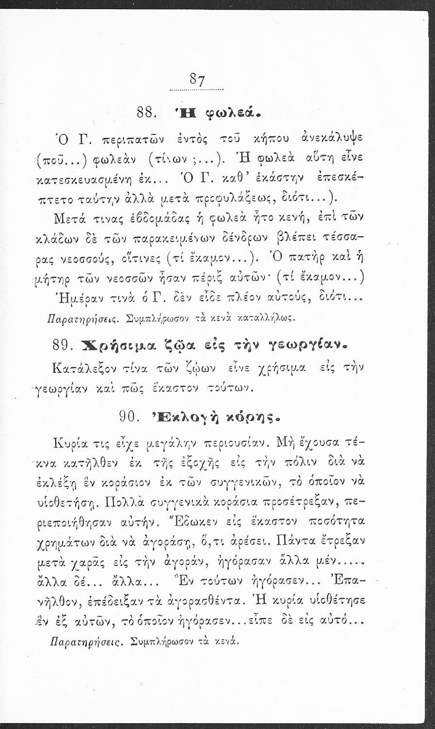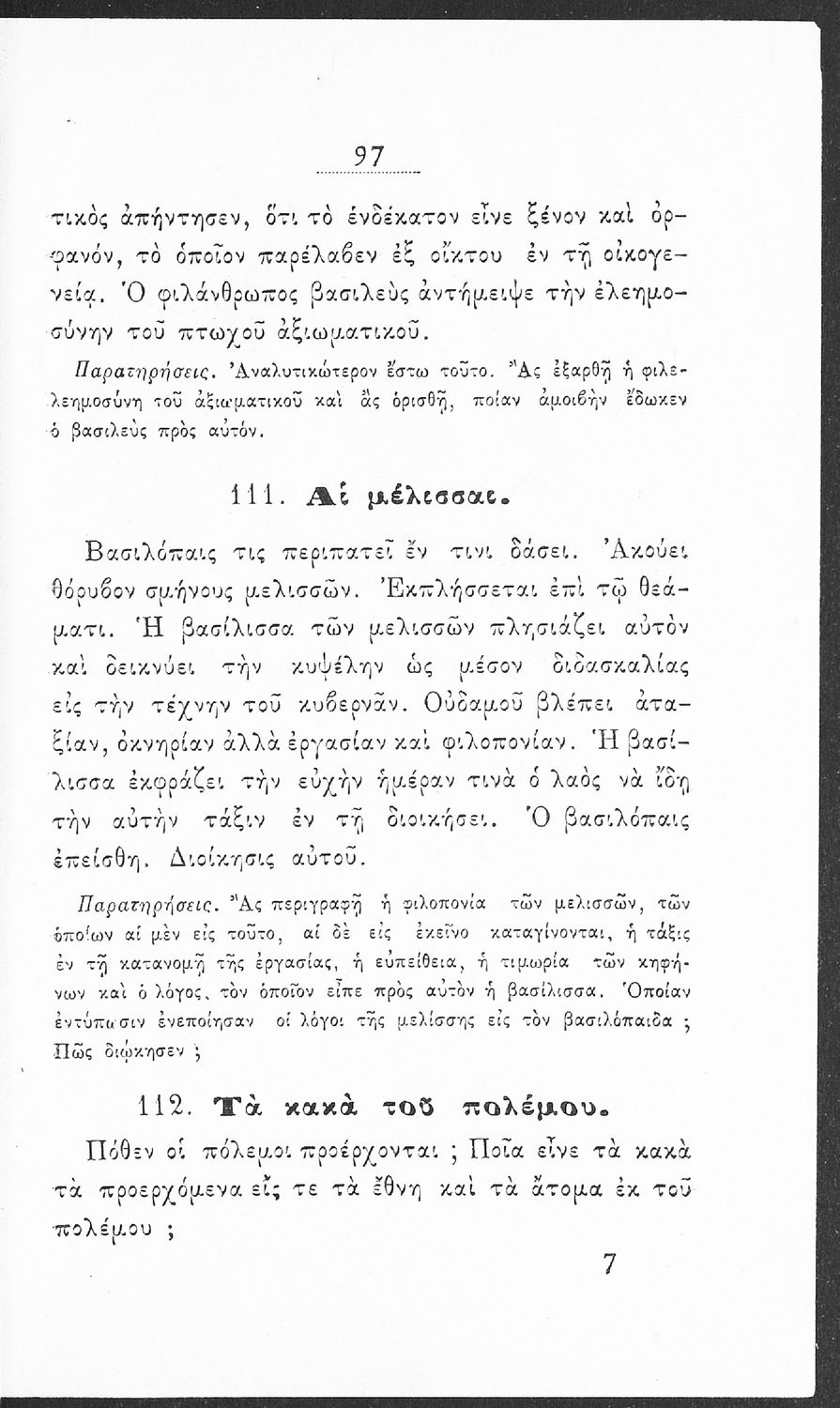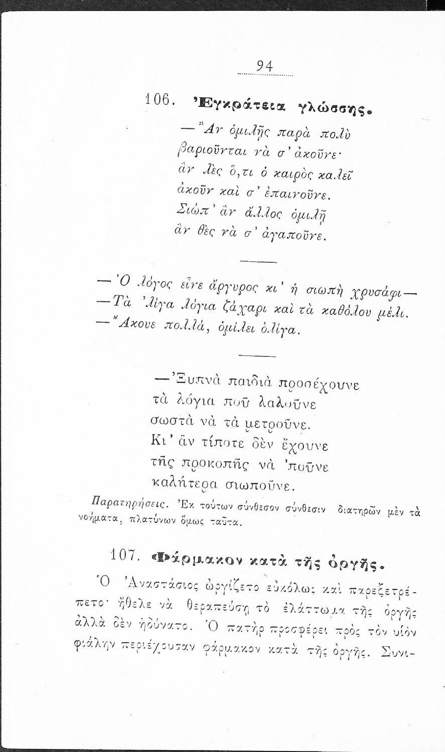 Σχολικό εγχειρίδιο για την Ελληνική Γλώσσα. Αποτελεί συλλογή συνθετικών ασκήσεων που περιέχουν μύθους, περιγραφές, επιστολές, γνωμικά και αποφθέγματα.