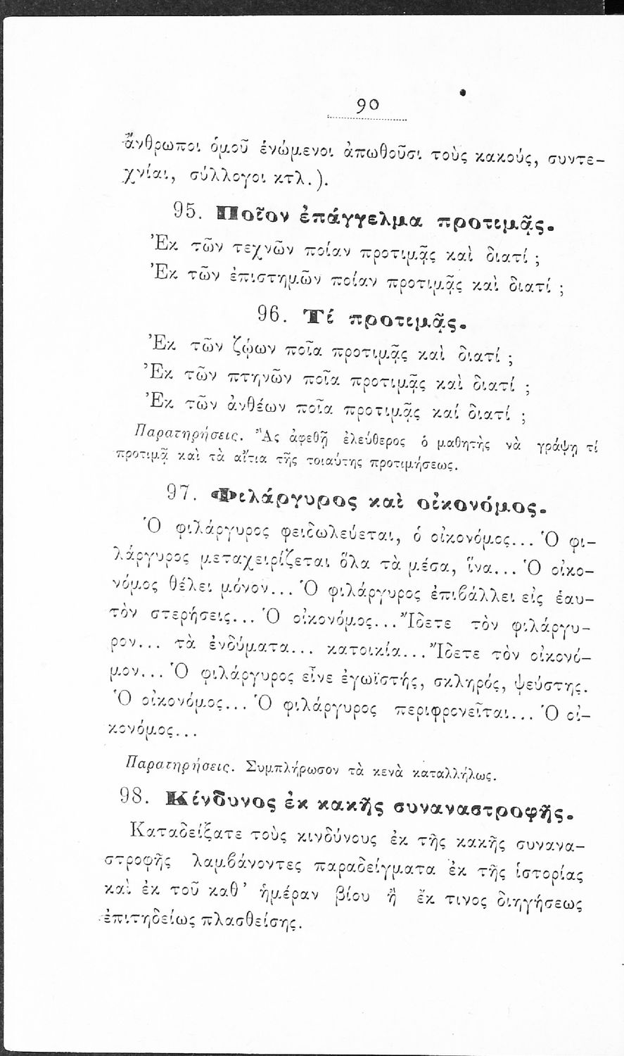Τάξη:  Γυμνάσιο / Παρθεναγωγείο / Διδασκαλείο