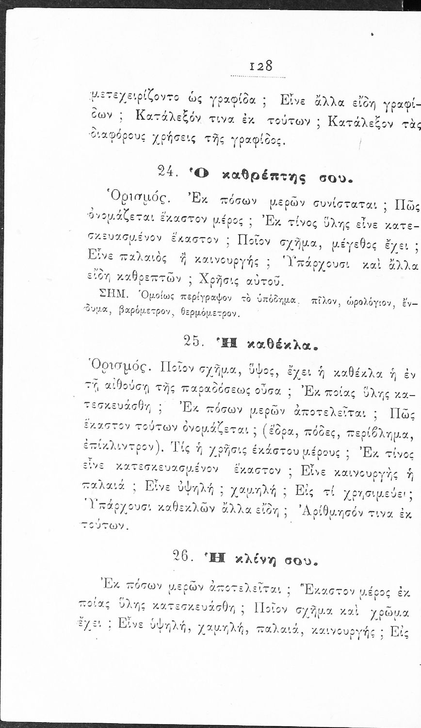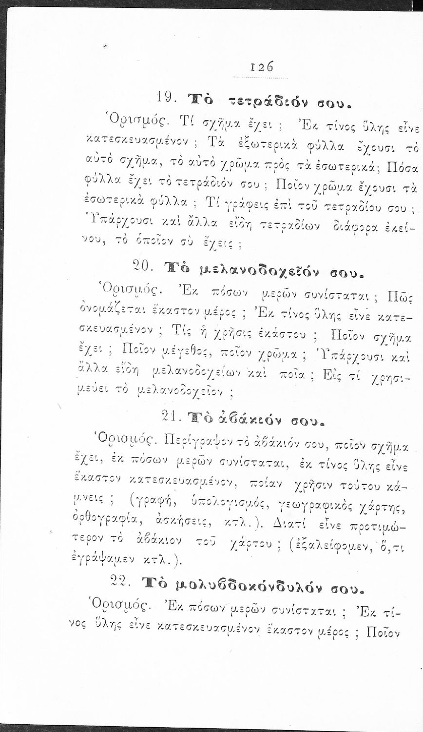 Σχολικό εγχειρίδιο για την Ελληνική Γλώσσα. Αποτελεί συλλογή συνθετικών ασκήσεων που περιέχουν μύθους, περιγραφές, επιστολές, γνωμικά και αποφθέγματα.