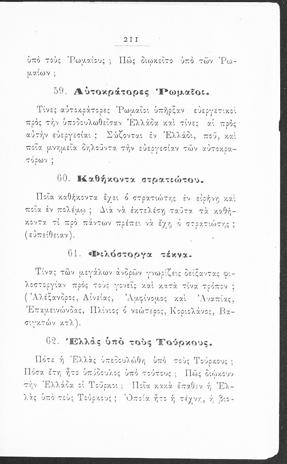 Τάξη:  Γυμνάσιο / Παρθεναγωγείο / Διδασκαλείο