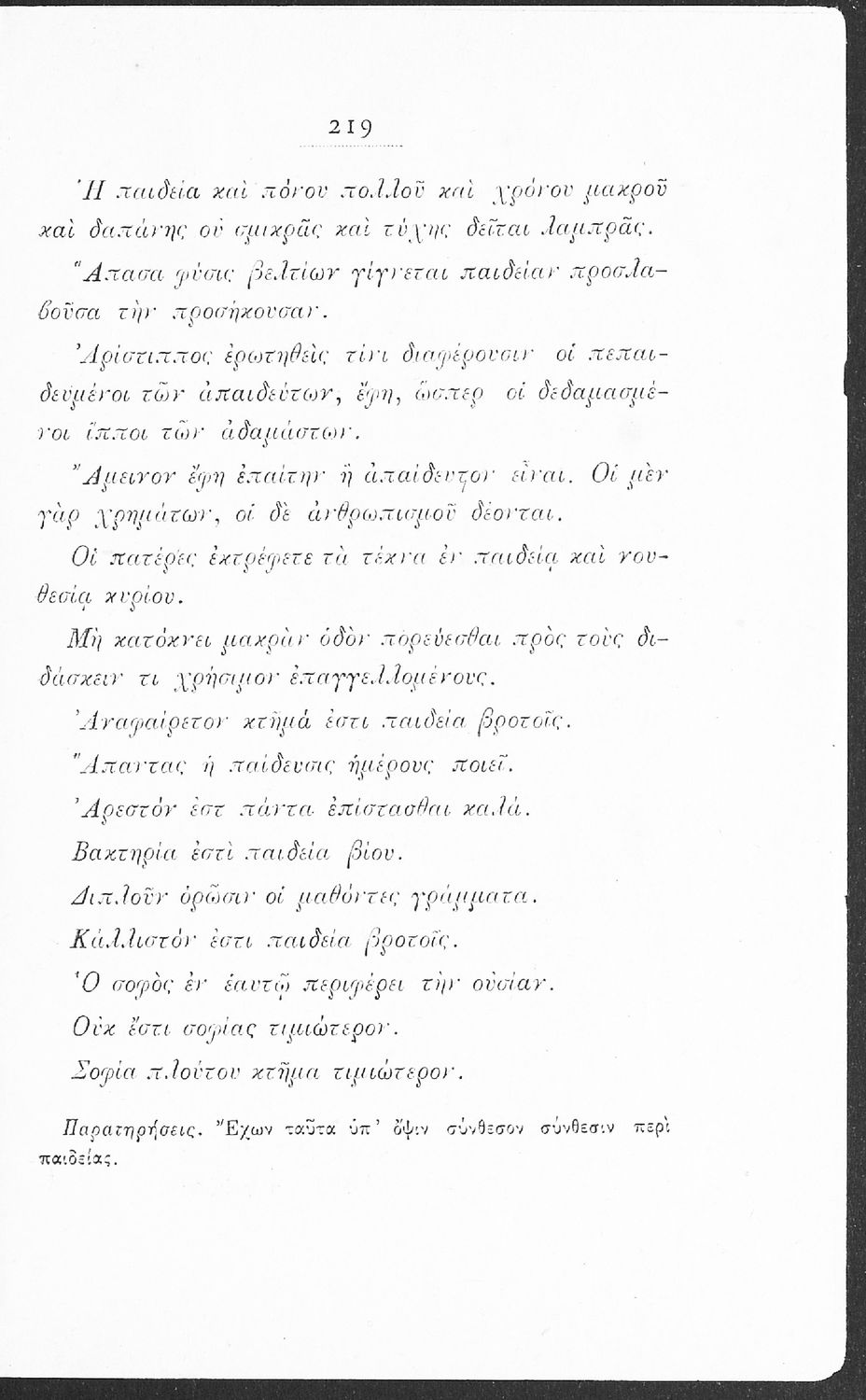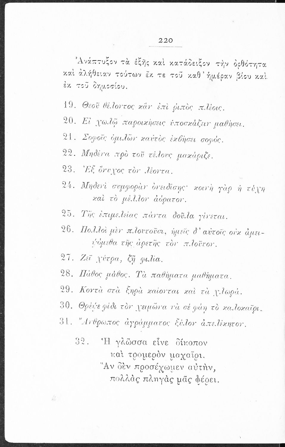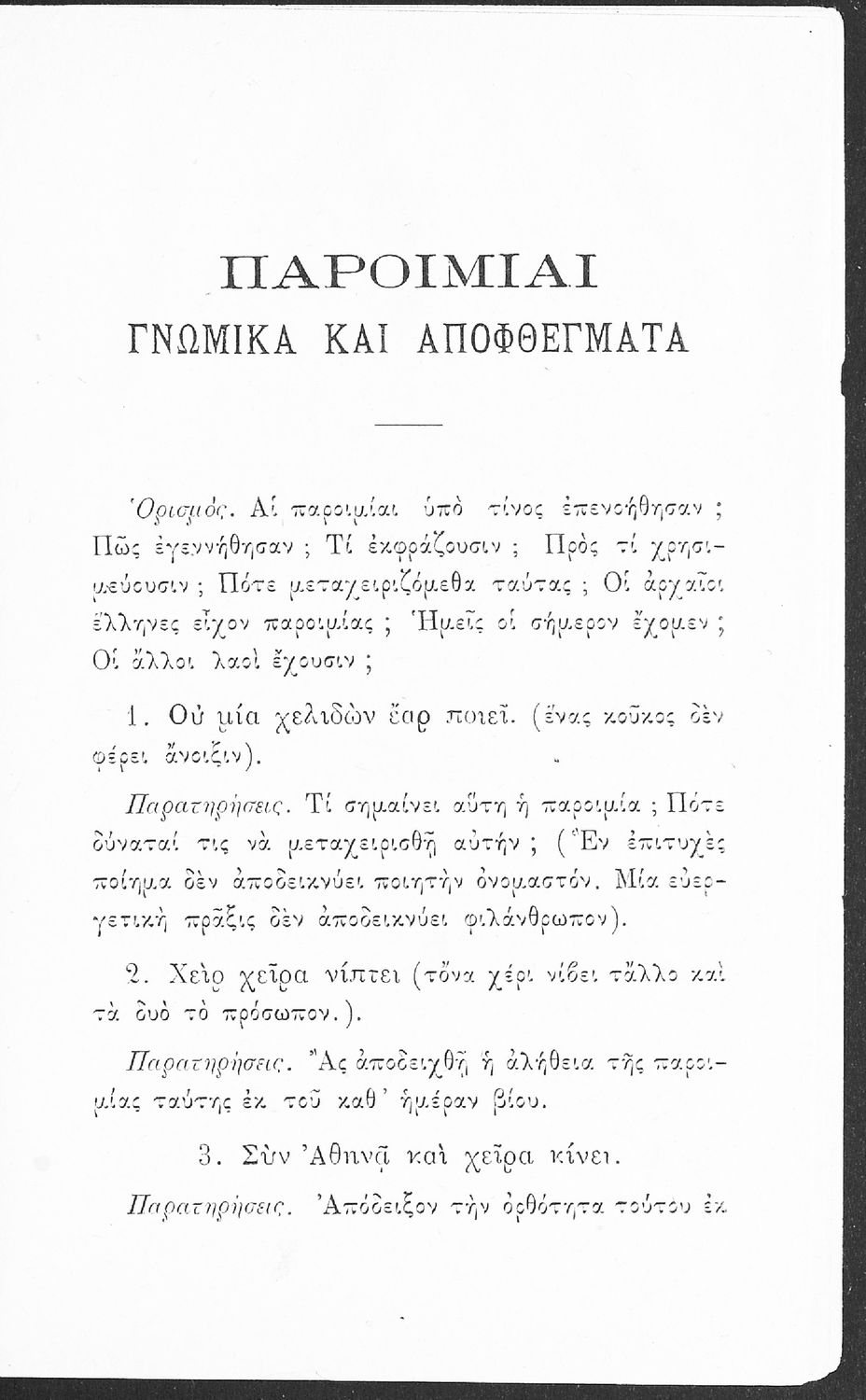 Σχολικό εγχειρίδιο για την Ελληνική Γλώσσα. Αποτελεί συλλογή συνθετικών ασκήσεων που περιέχουν μύθους, περιγραφές, επιστολές, γνωμικά και αποφθέγματα.