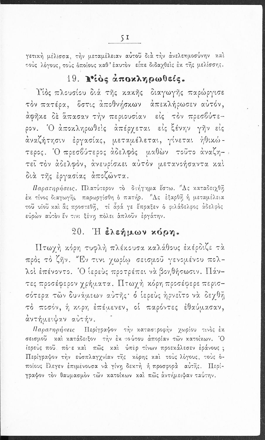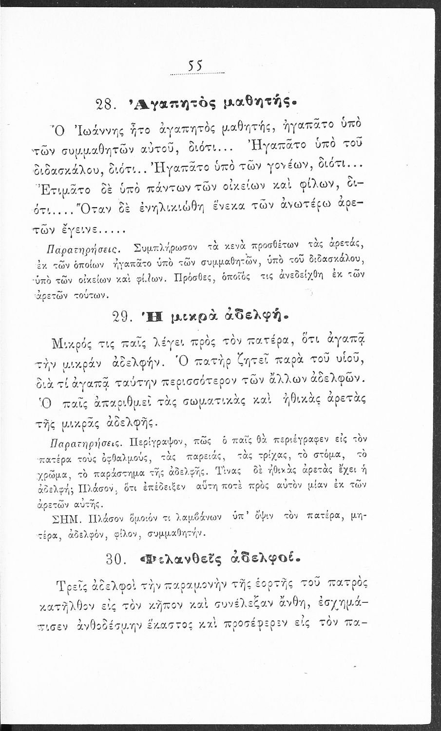 Σχολικό εγχειρίδιο για την Ελληνική Γλώσσα. Αποτελεί συλλογή συνθετικών ασκήσεων που περιέχουν μύθους, περιγραφές, επιστολές, γνωμικά και αποφθέγματα.