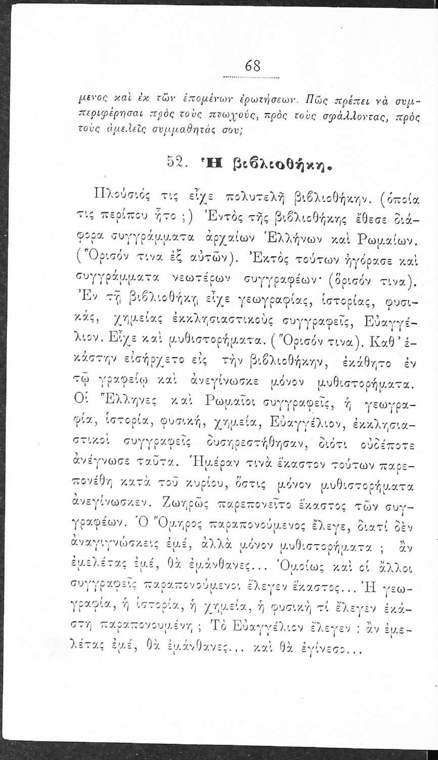 Σχολικό εγχειρίδιο για την Ελληνική Γλώσσα. Αποτελεί συλλογή συνθετικών ασκήσεων που περιέχουν μύθους, περιγραφές, επιστολές, γνωμικά και αποφθέγματα.