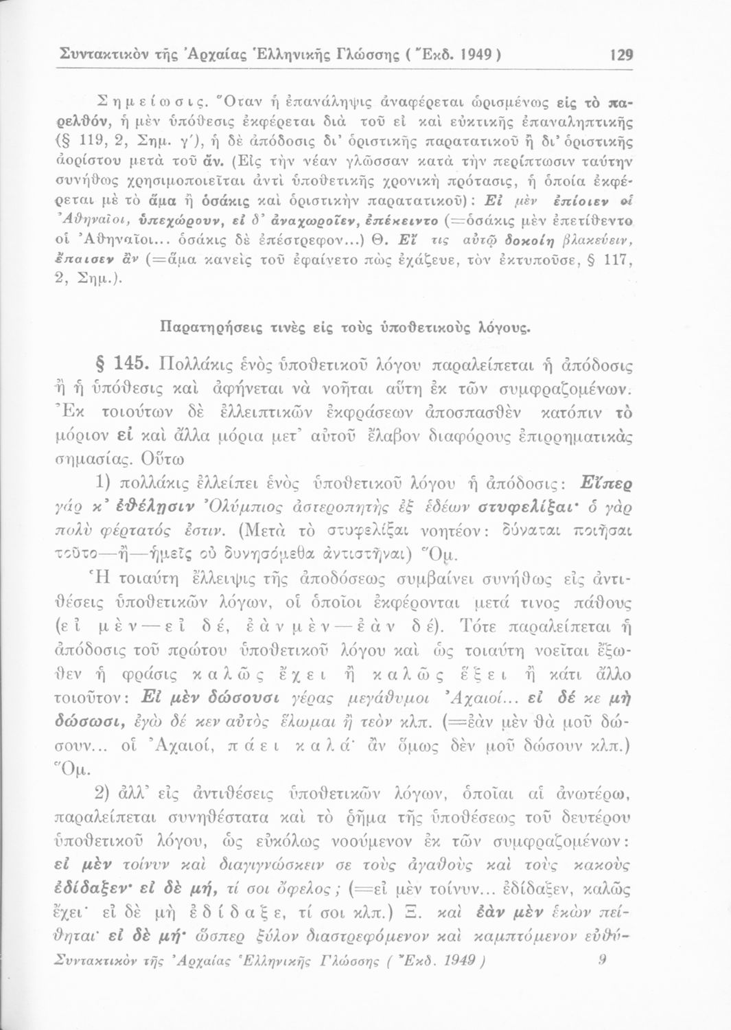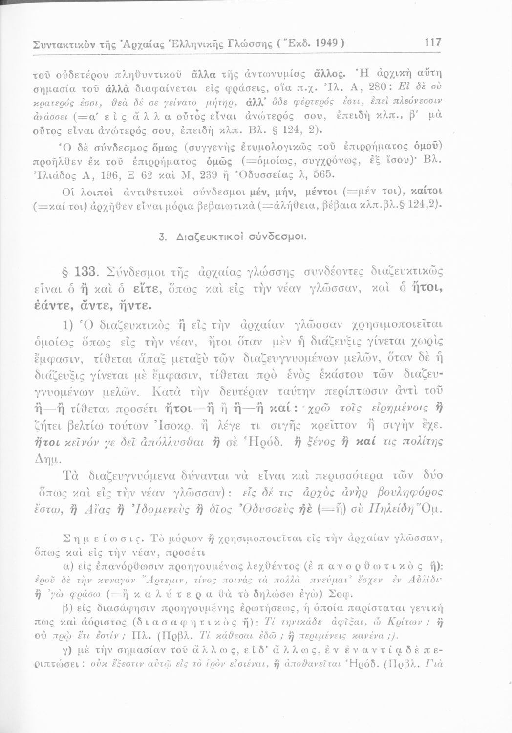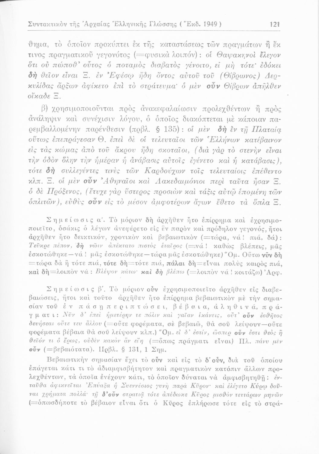 Σχολικό εγχειρίδιο Αρχαίων Ελληνικών Γυμνασίου που εξετάζει τα μέρη του λόγου και την σύνταξή τους.