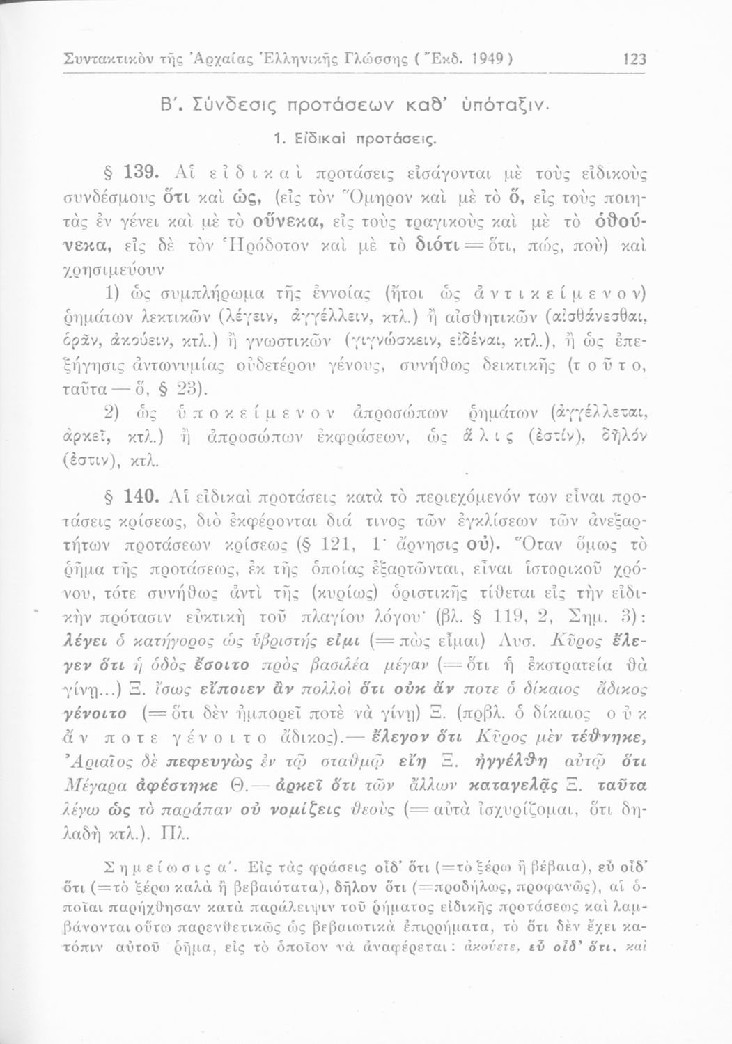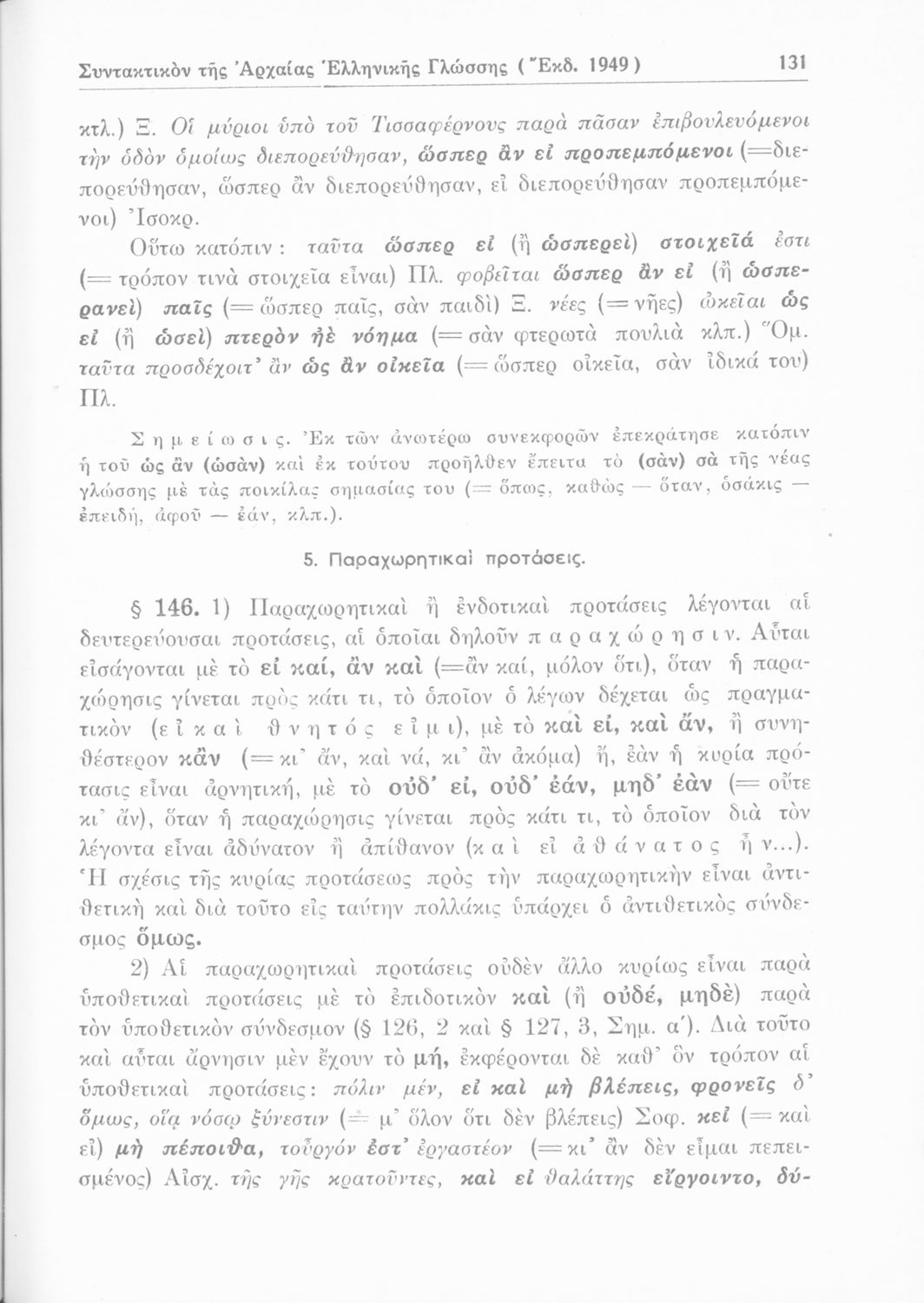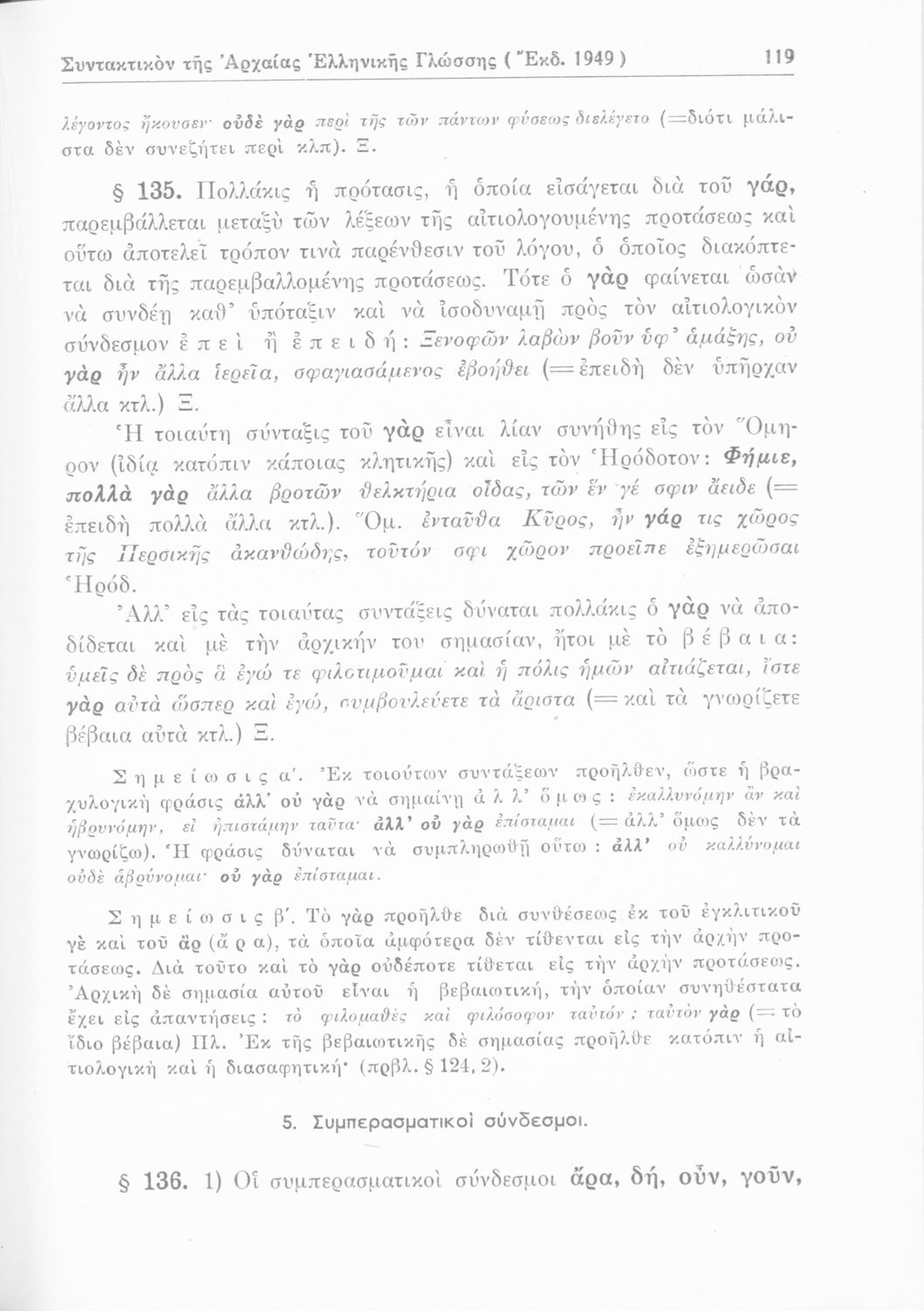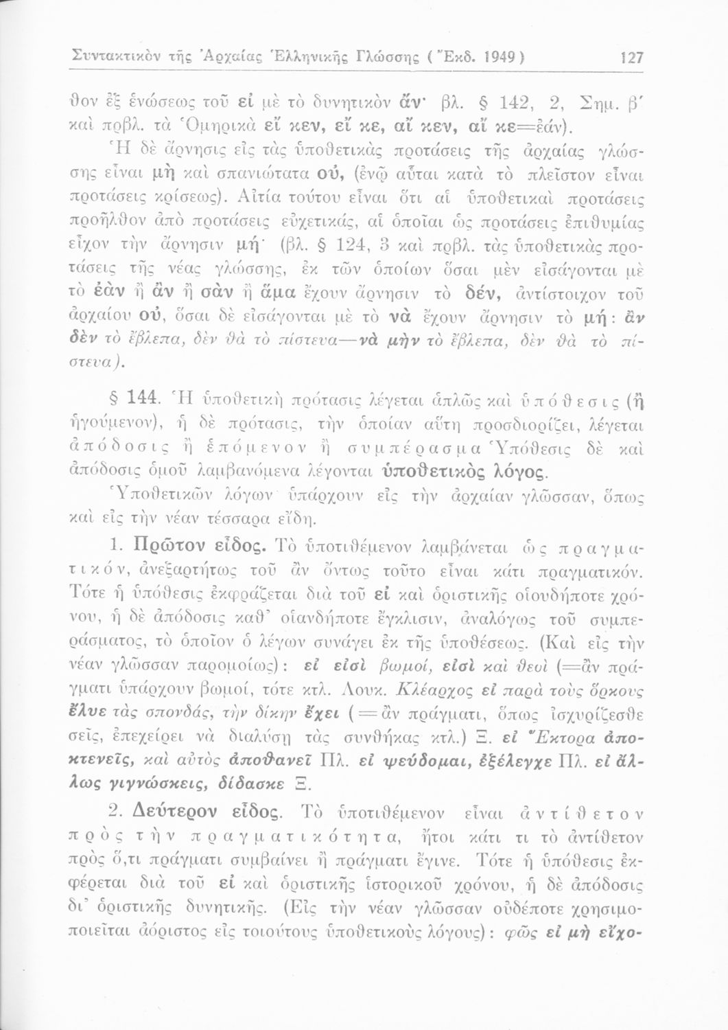 Σχολικό εγχειρίδιο Αρχαίων Ελληνικών Γυμνασίου που εξετάζει τα μέρη του λόγου και την σύνταξή τους.
