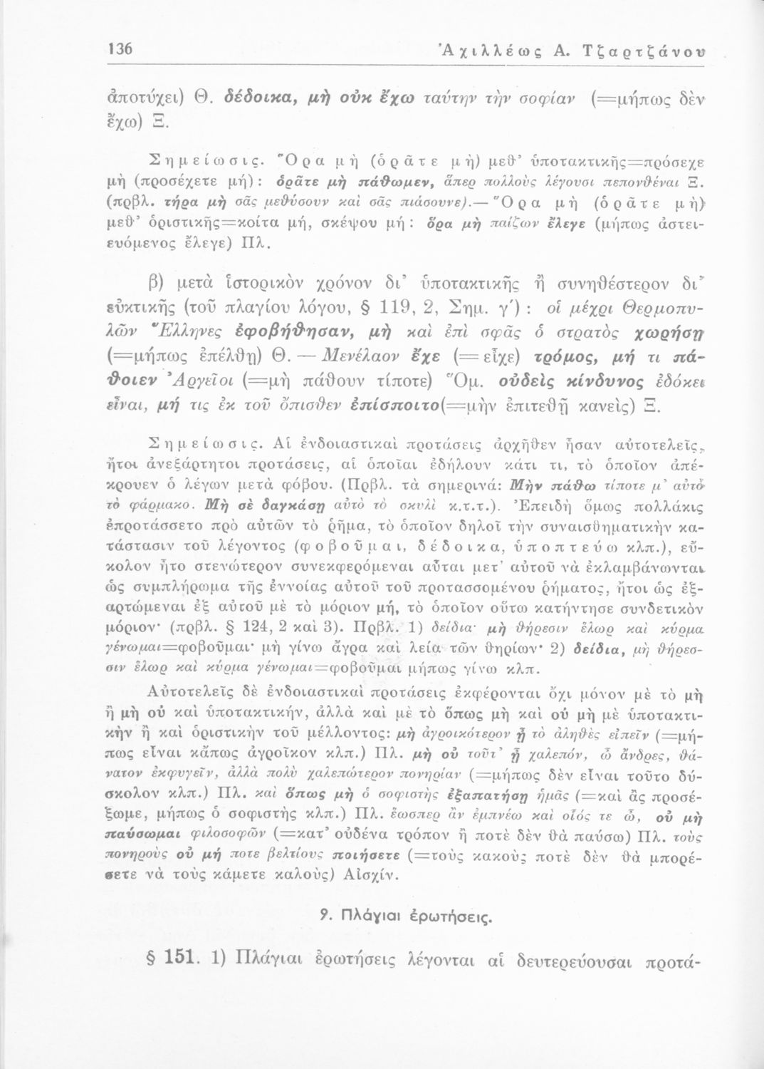 Κωδικός αναγνώρισης: 01-17298 Τίτλος: Συντακτικό της αρχαίας ελληνικής γλώσσης Συγγραφέας: Αχ. Τζάρτζανος, Κ. Α. Παπαχρίστος (επιμέλεια) Μέγεθος και υπόστρωμα: Σχολικό εγχειρίδιο, σκληρό εξώφυλλο, 184 σελίδες. |