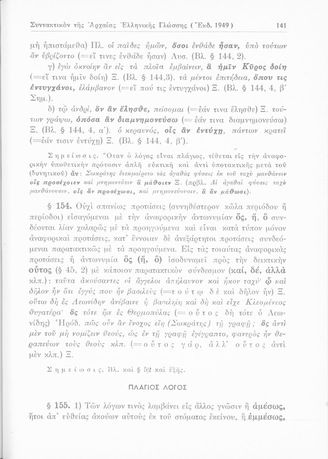Σχολικό εγχειρίδιο Αρχαίων Ελληνικών Γυμνασίου που εξετάζει τα μέρη του λόγου και την σύνταξή τους.