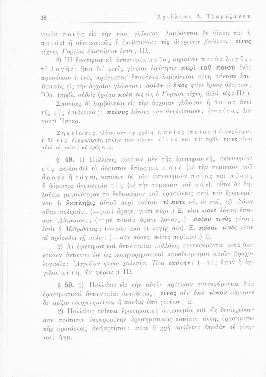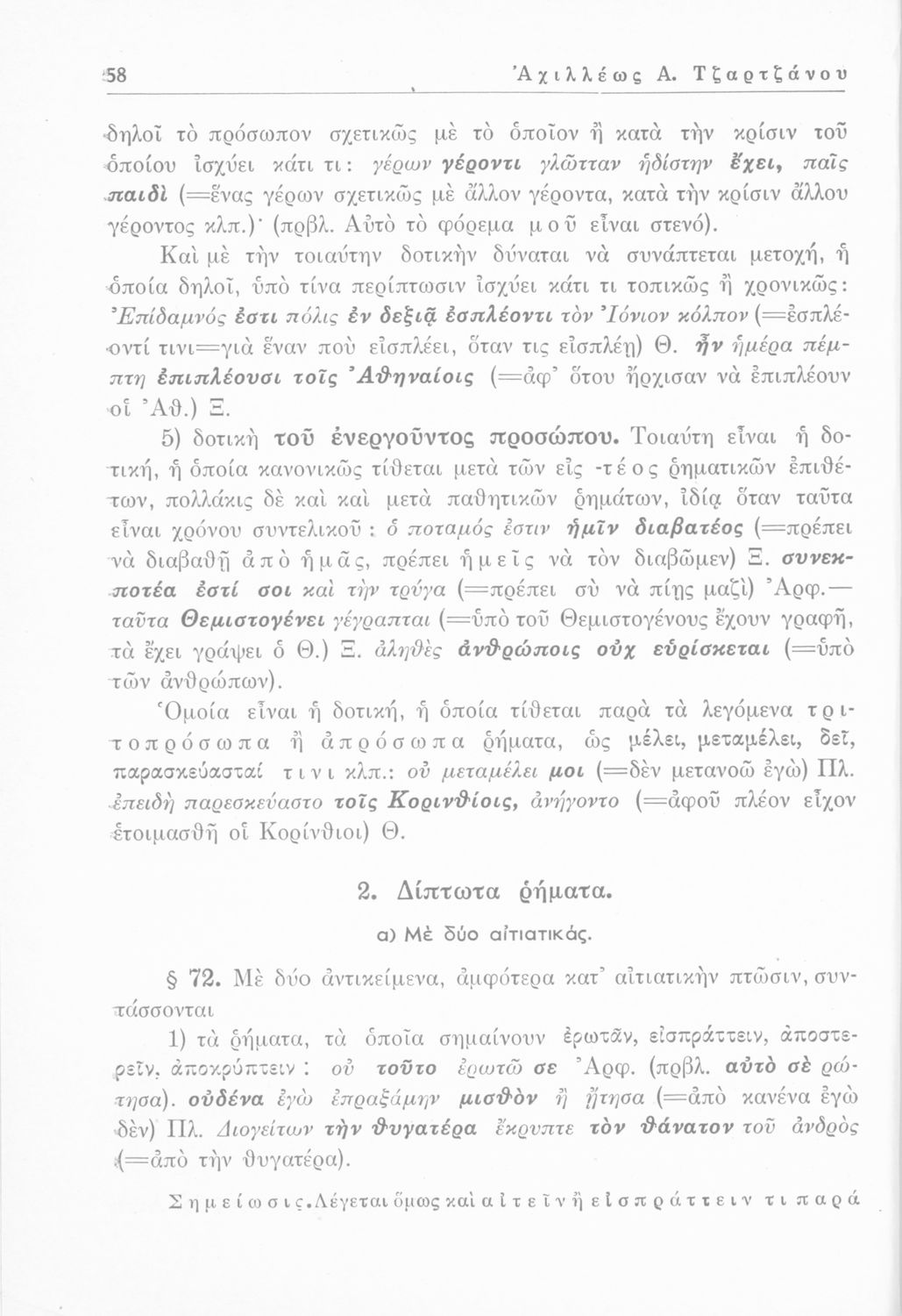Κωδικός αναγνώρισης: 01-17298 Τίτλος: Συντακτικό της αρχαίας ελληνικής γλώσσης Συγγραφέας: Αχ. Τζάρτζανος, Κ. Α. Παπαχρίστος (επιμέλεια) Μέγεθος και υπόστρωμα: Σχολικό εγχειρίδιο, σκληρό εξώφυλλο, 184 σελίδες. |
