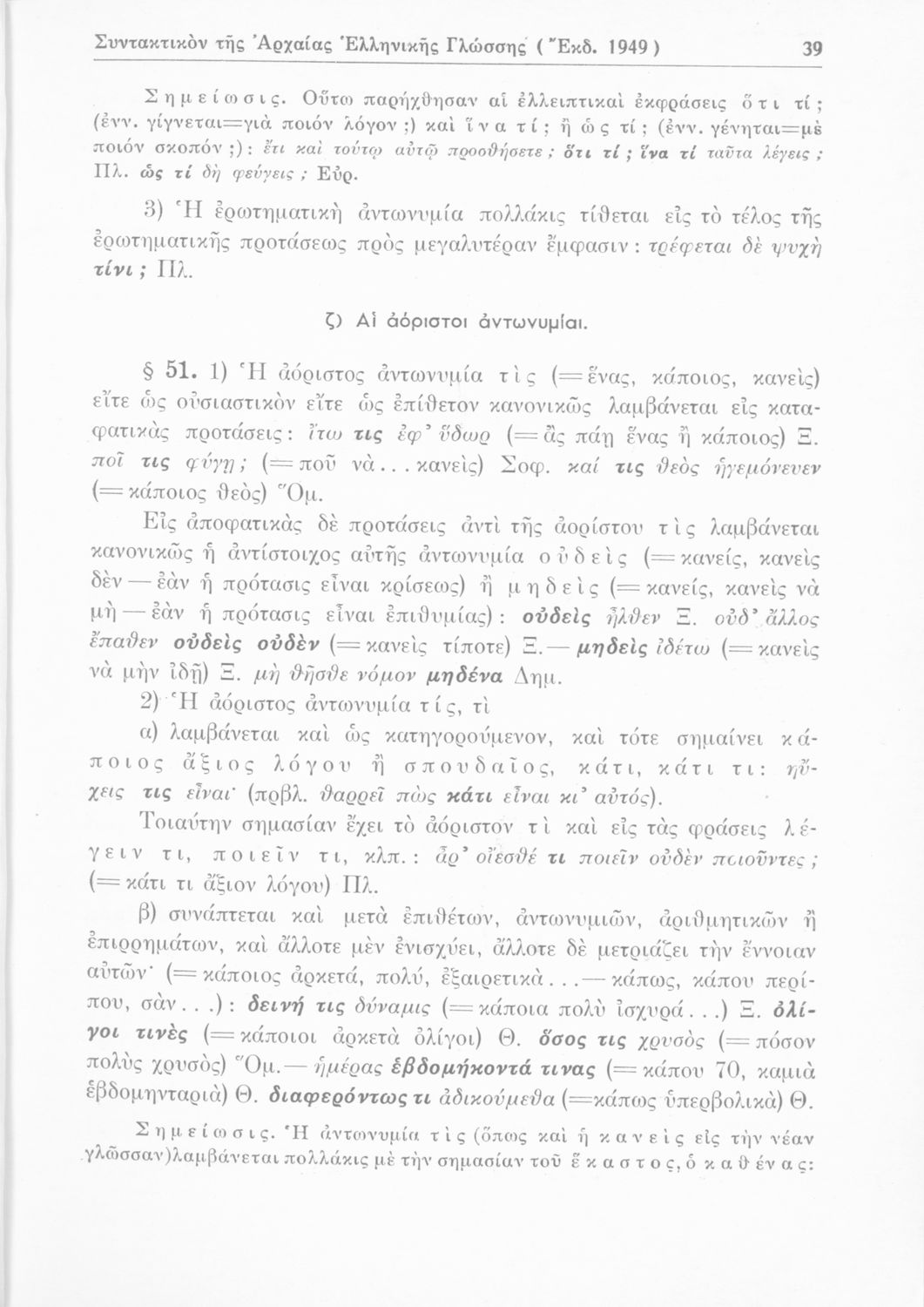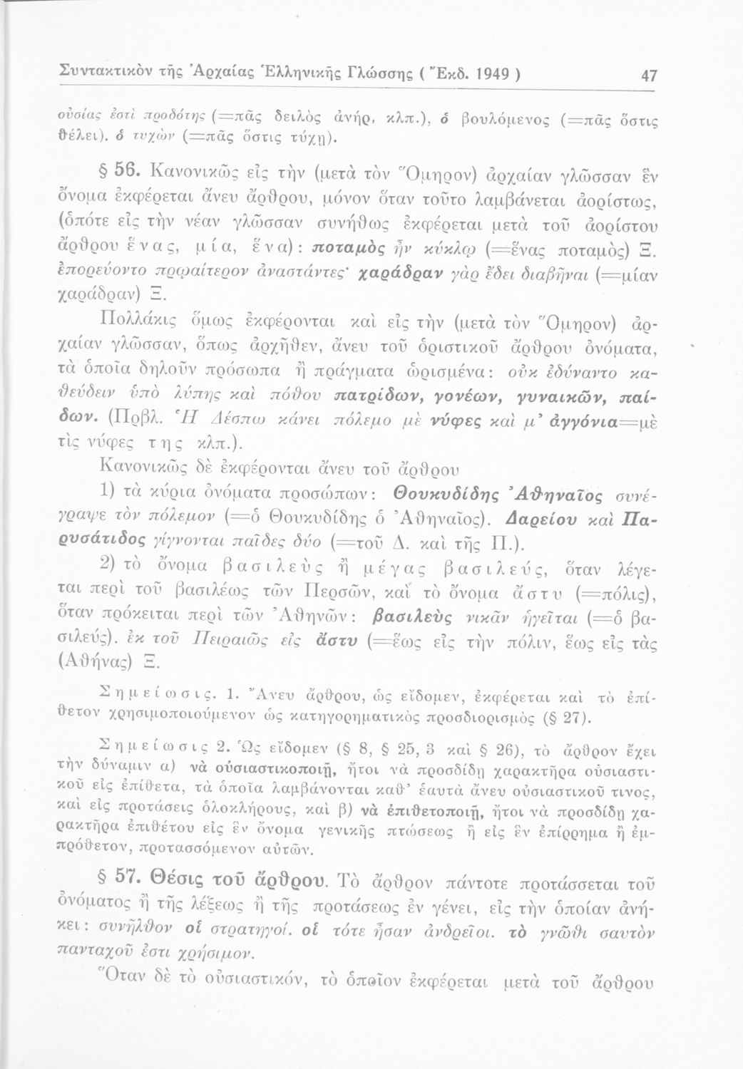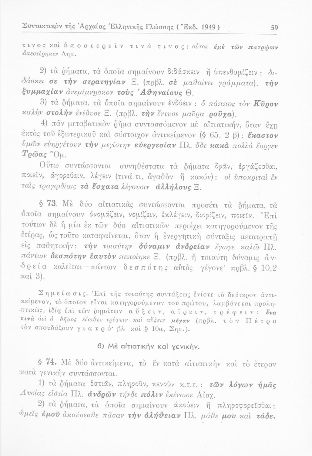 Σχολικό εγχειρίδιο Αρχαίων Ελληνικών Γυμνασίου που εξετάζει τα μέρη του λόγου και την σύνταξή τους.