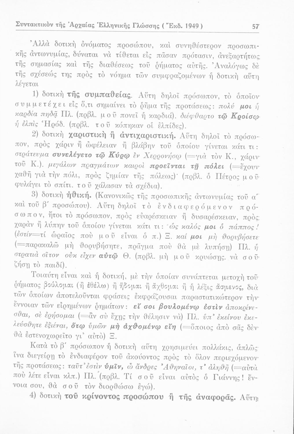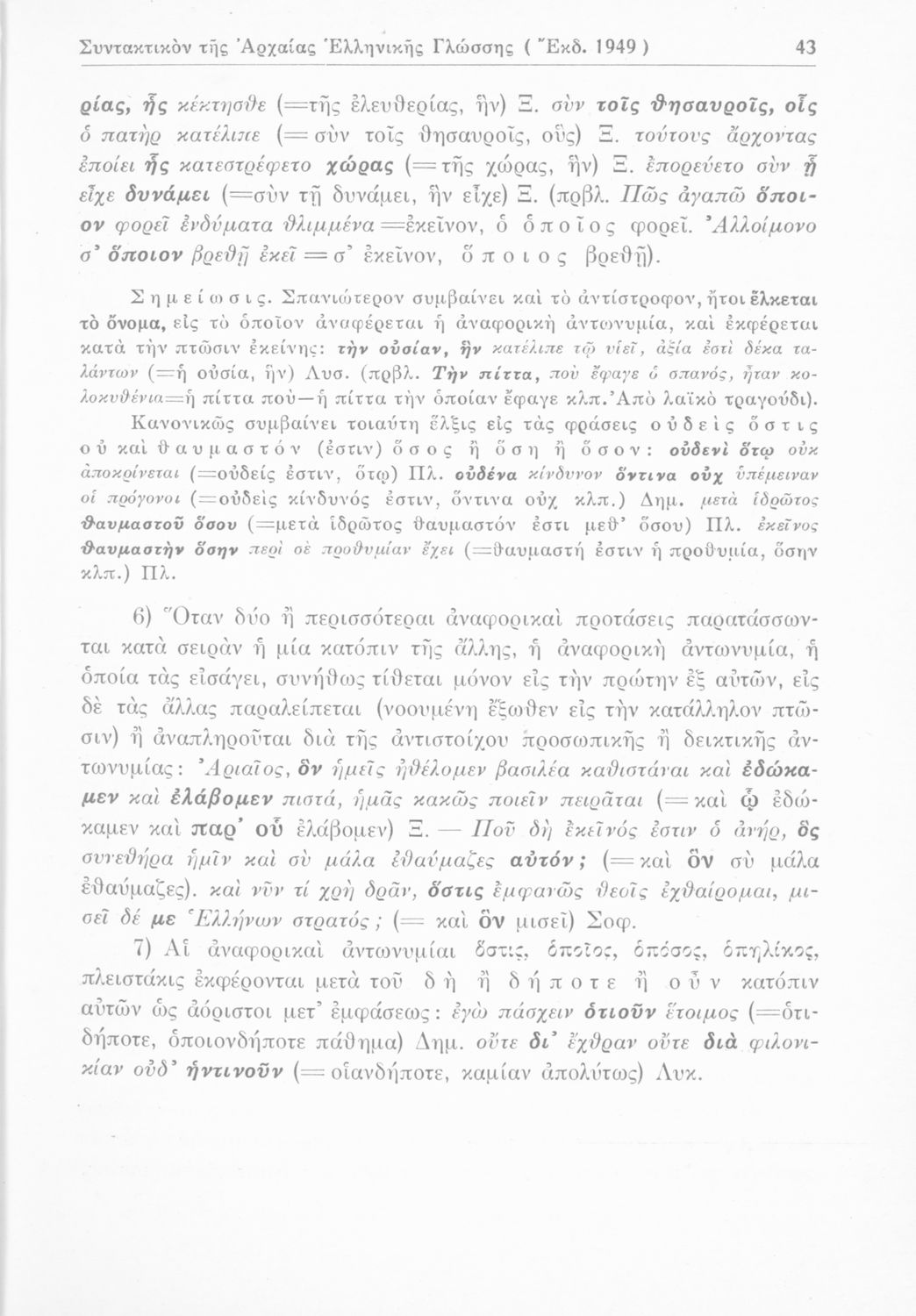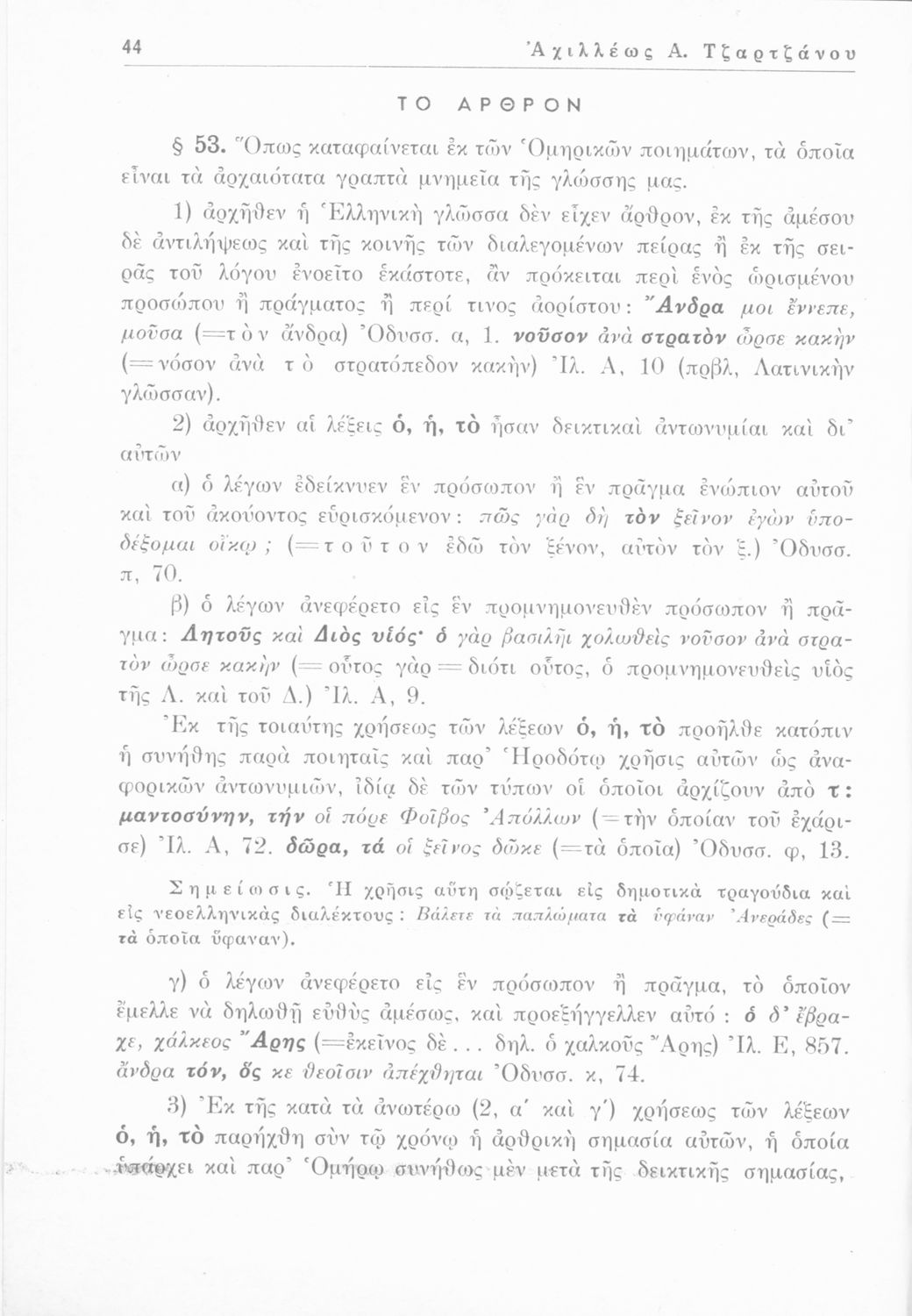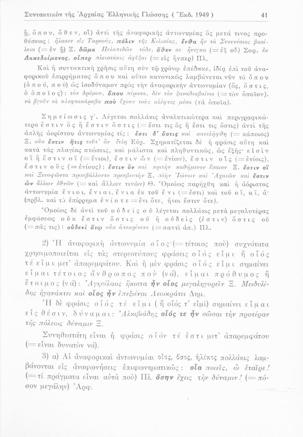 Σχολικό εγχειρίδιο Αρχαίων Ελληνικών Γυμνασίου που εξετάζει τα μέρη του λόγου και την σύνταξή τους.