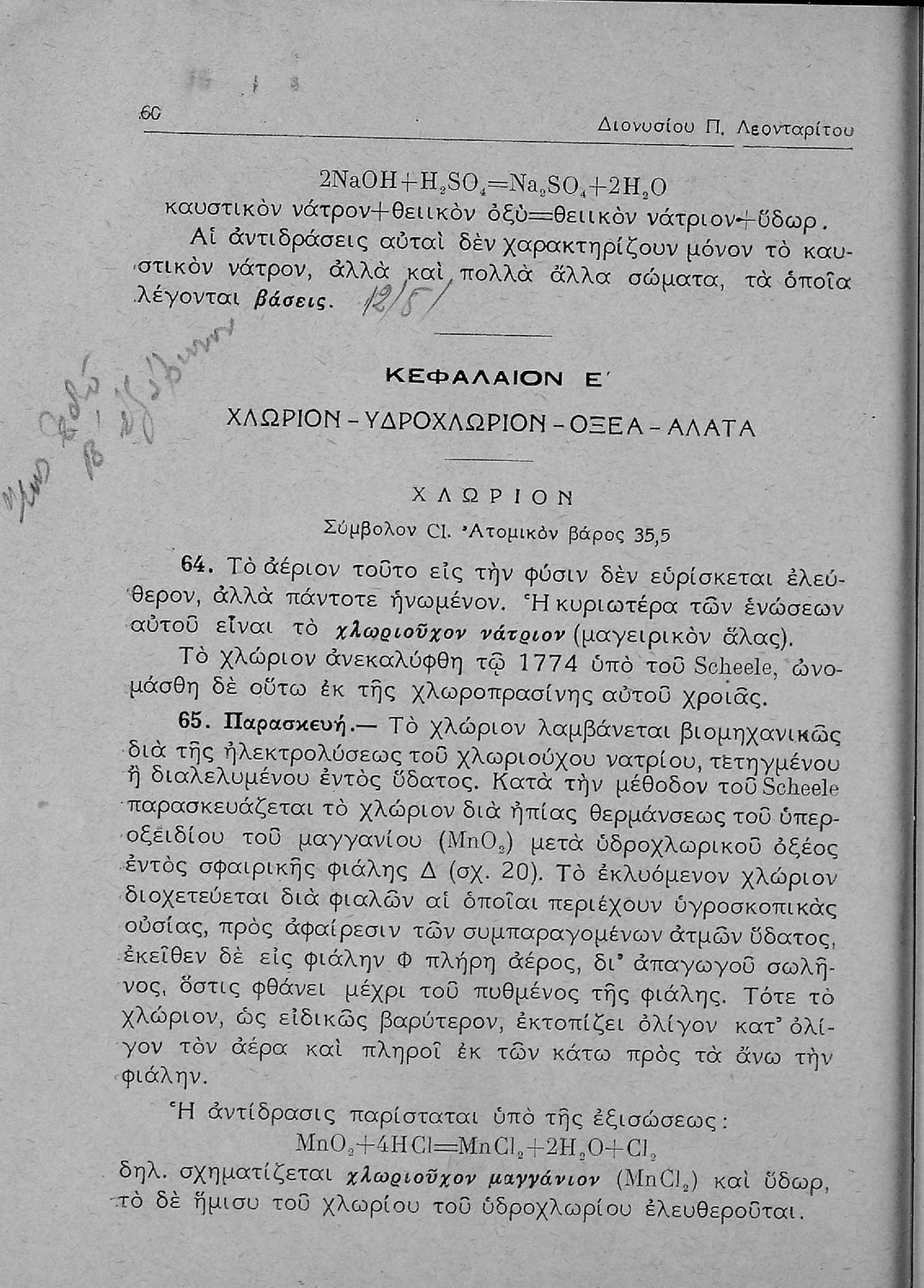 Τίτλος: Χημεία δια την Ε΄ τάξιν των Γυμνασίων