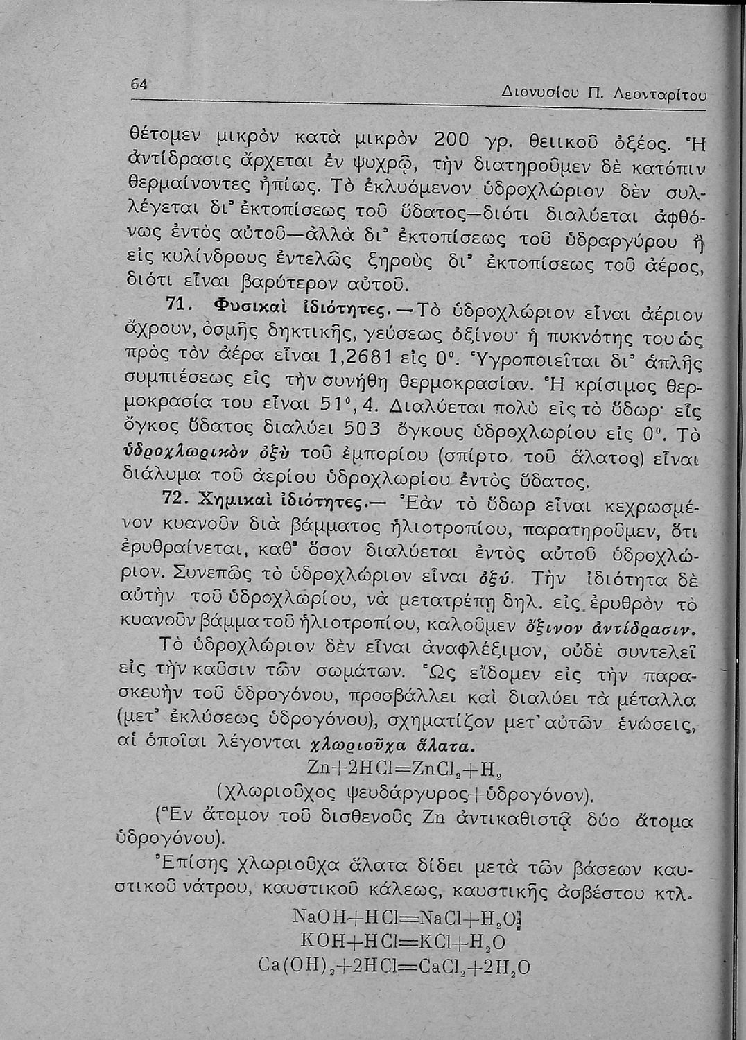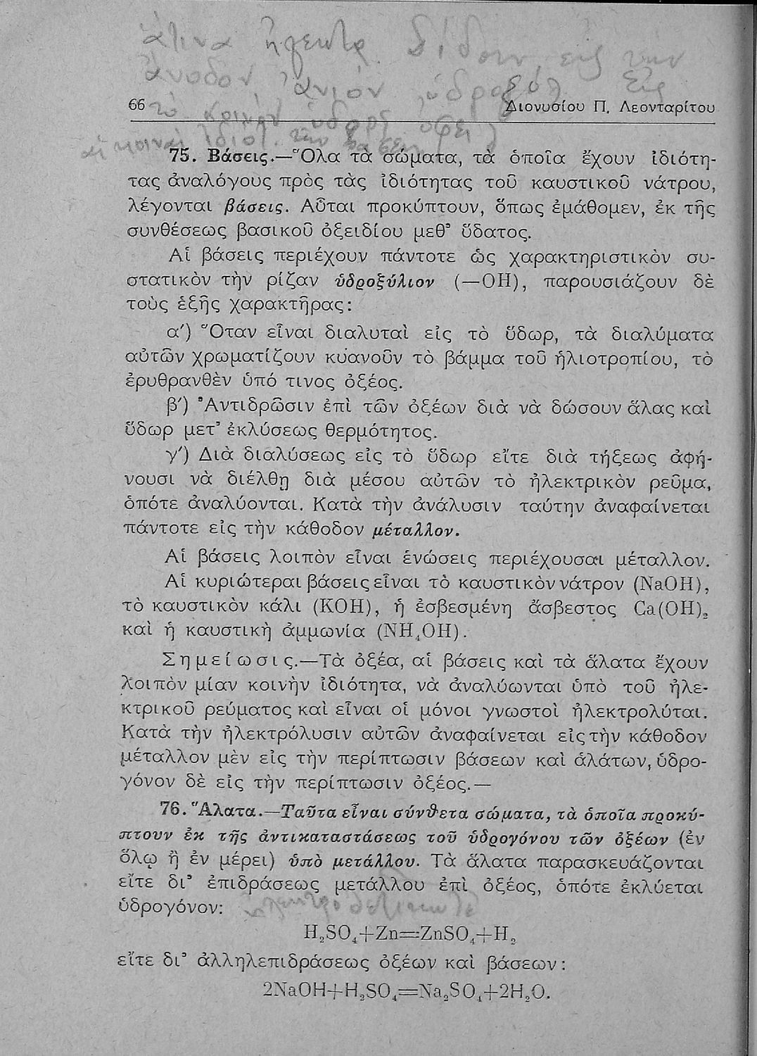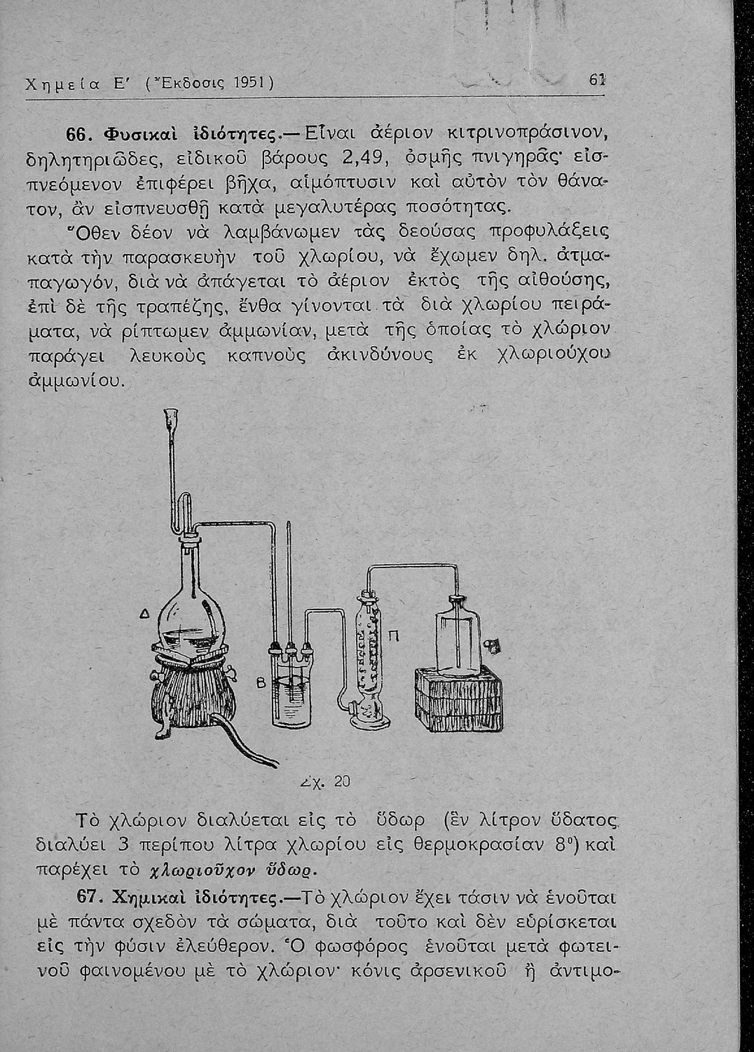 Σχολικό εγχειρίδιο Χημείας για τους μαθητές της Ε' Γυμνασίου. Χωρίζεται σε τρία μέρη. Στο πρώτο μέρος είναι μια γενική εισαγωγή στους θεμελιώδεις νόμους της Χημείας, τις χημικές αντιδράσεις, τα χημικά σύμβολα.