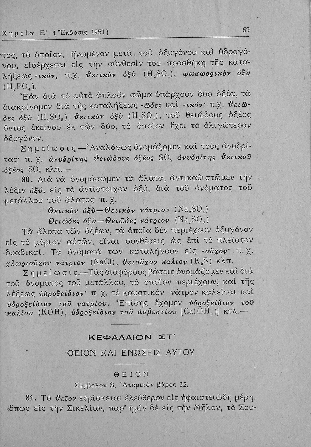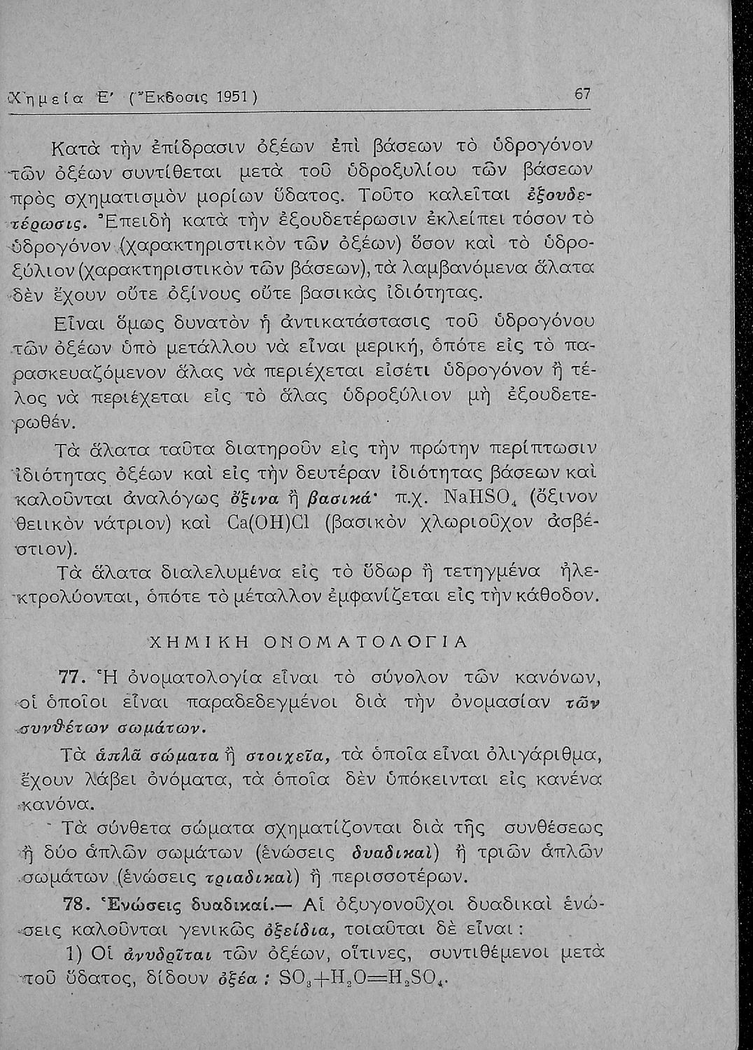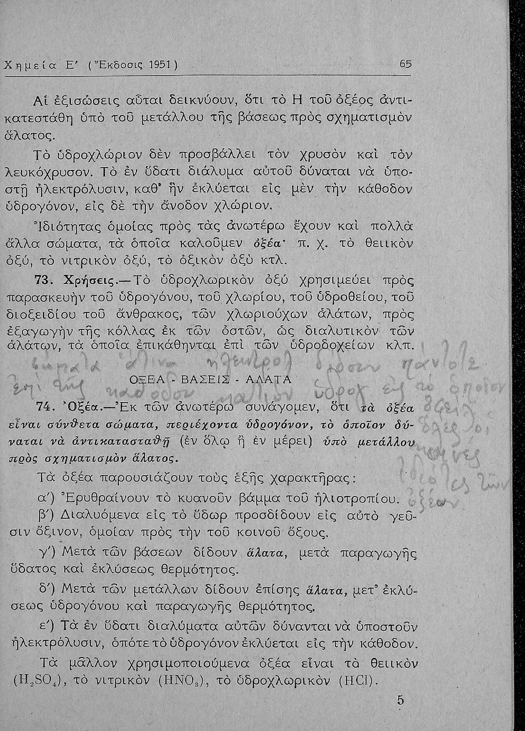 Χημεία δια την Ε΄ τάξιν των Γυμνασίων