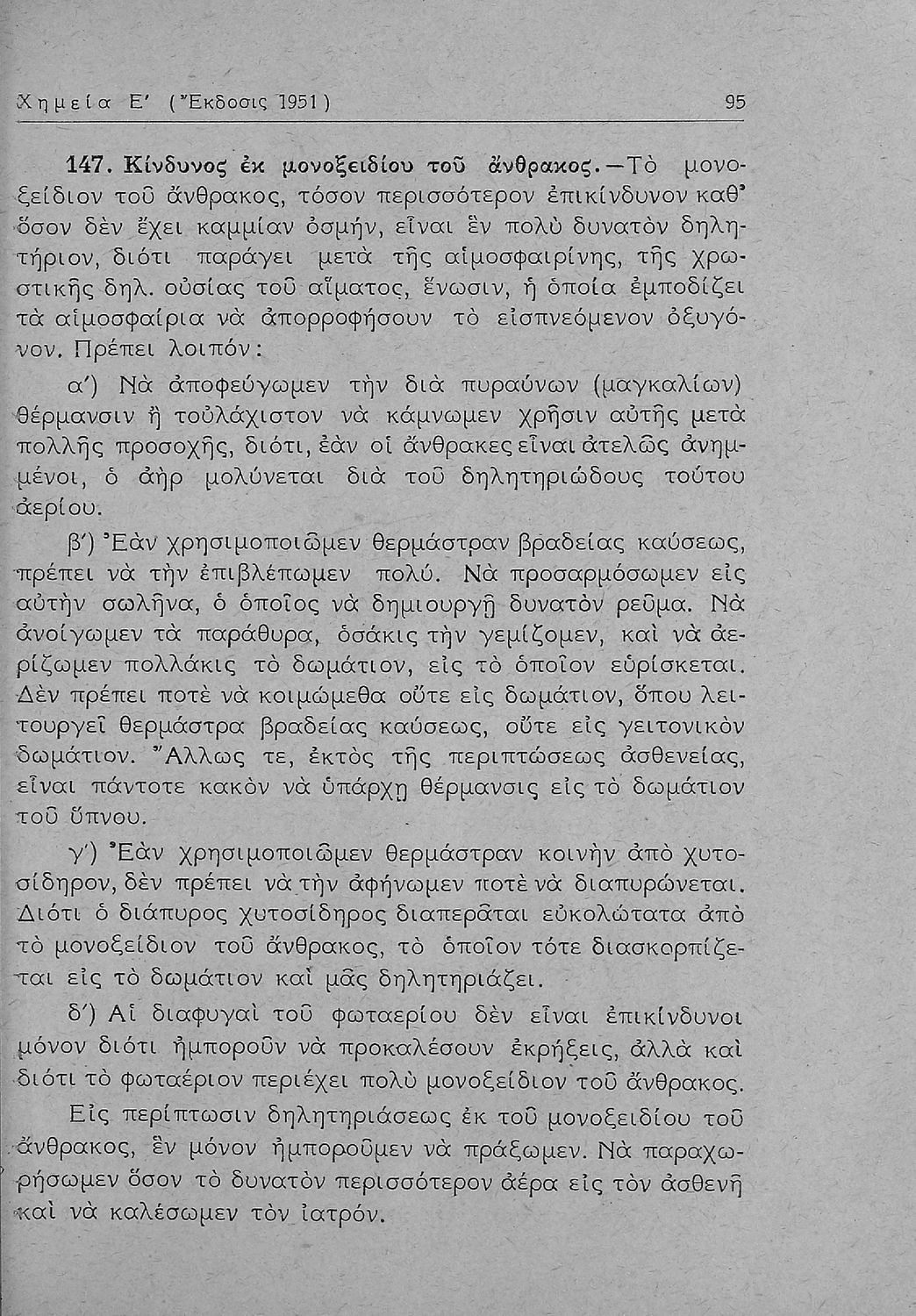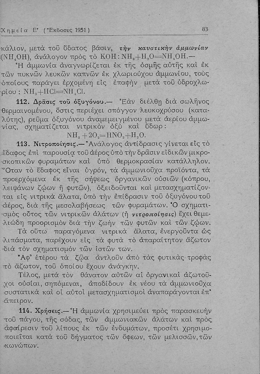 Σχολικό εγχειρίδιο Χημείας για τους μαθητές της Ε' Γυμνασίου. Χωρίζεται σε τρία μέρη. Στο πρώτο μέρος είναι μια γενική εισαγωγή στους θεμελιώδεις νόμους της Χημείας, τις χημικές αντιδράσεις, τα χημικά σύμβολα.