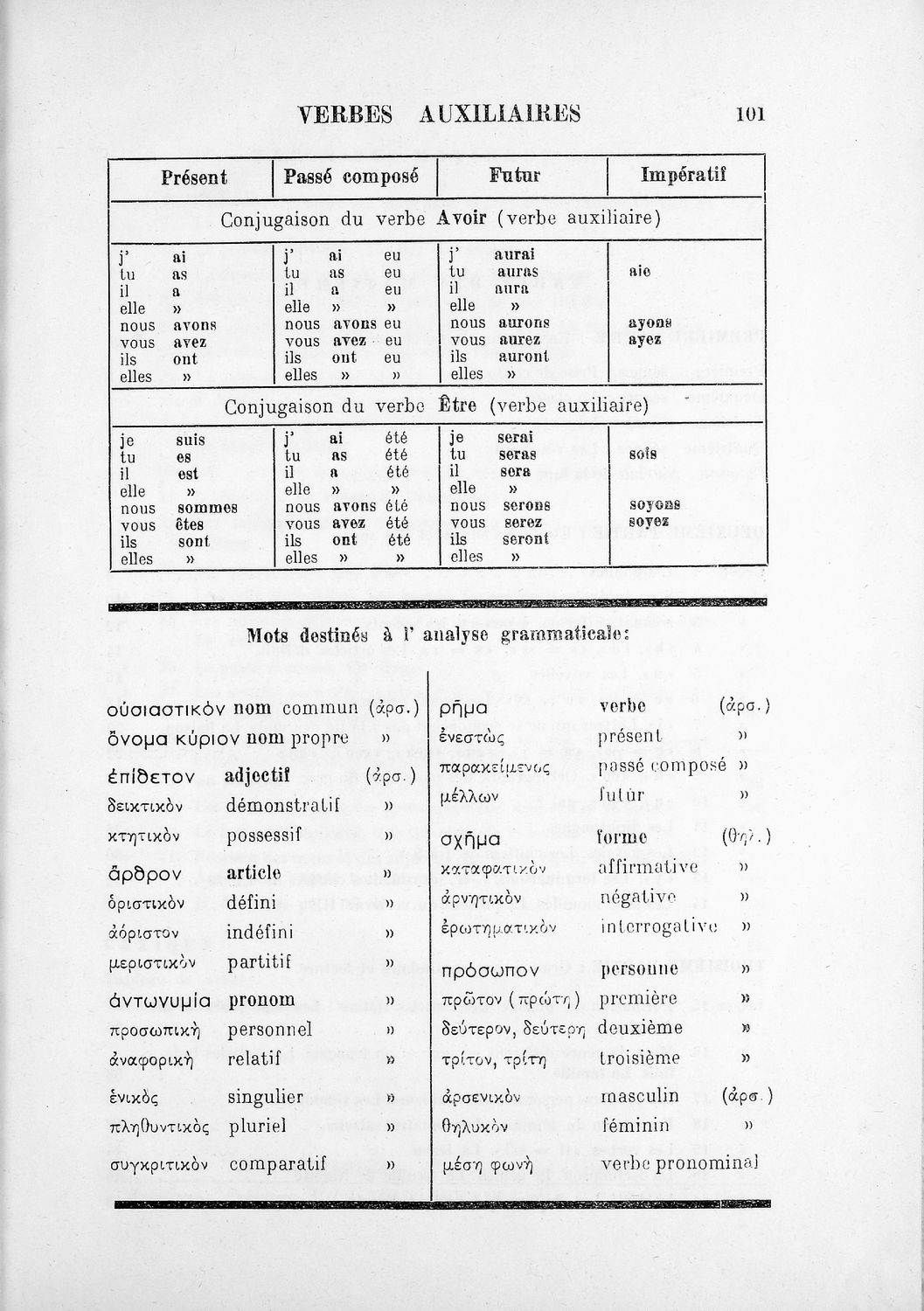 Μαθητικό βοήθημα Γαλλικών των Ελληνικών Σχολείων και Γυμνασίων που περιέχει τους γραμματικούς κανόνες της Γαλλικής γλώσσας.