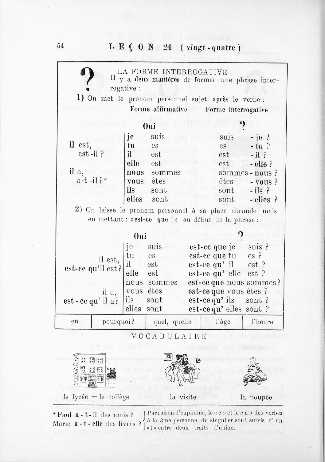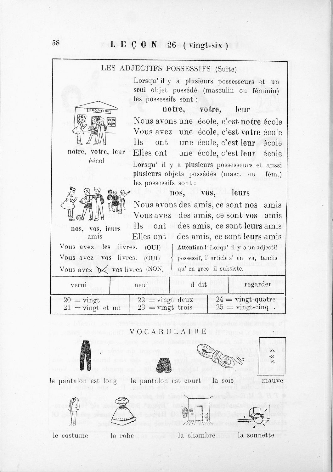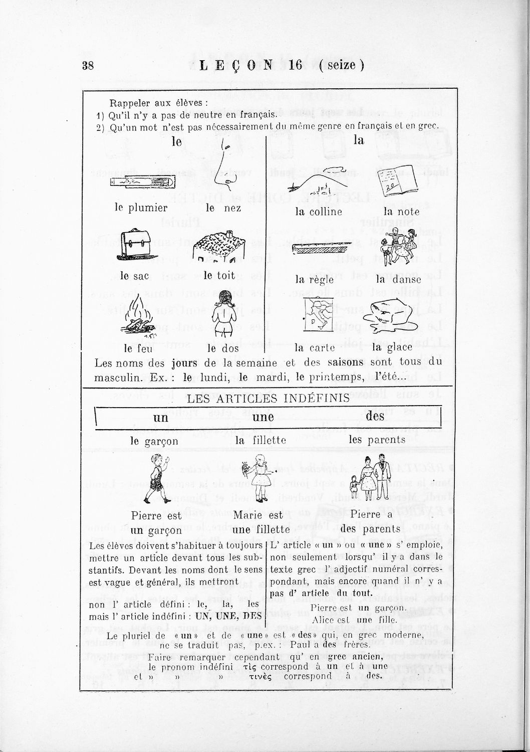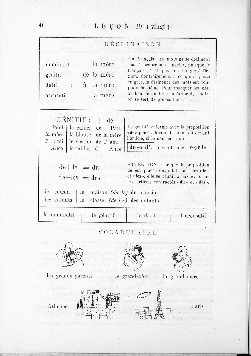 Σχολικό εγχειρίδιο Γαλλικών για τα Ελληνικά Σχολεία που περιέχει τους βασικούς κανόνες γραμματικής της γαλλικής γλώσσας καθώς και σειρά ασκήσεων για πρακτική εξάσκηση των μαθητών. Περιλαμβάνεται και λεξιλόγιο.