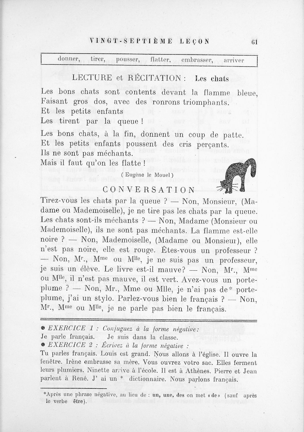 Σχολικό εγχειρίδιο Γαλλικών για τους μαθητές των Ελληνικών Σχολείων που περιλαμβάνει τους κανόνες γραμματικής και προφοράς, σύντομα κείμενα για τη διδασκαλία της ανάγνωσης και αποσπάσματα κειμένων κλασσικών ...