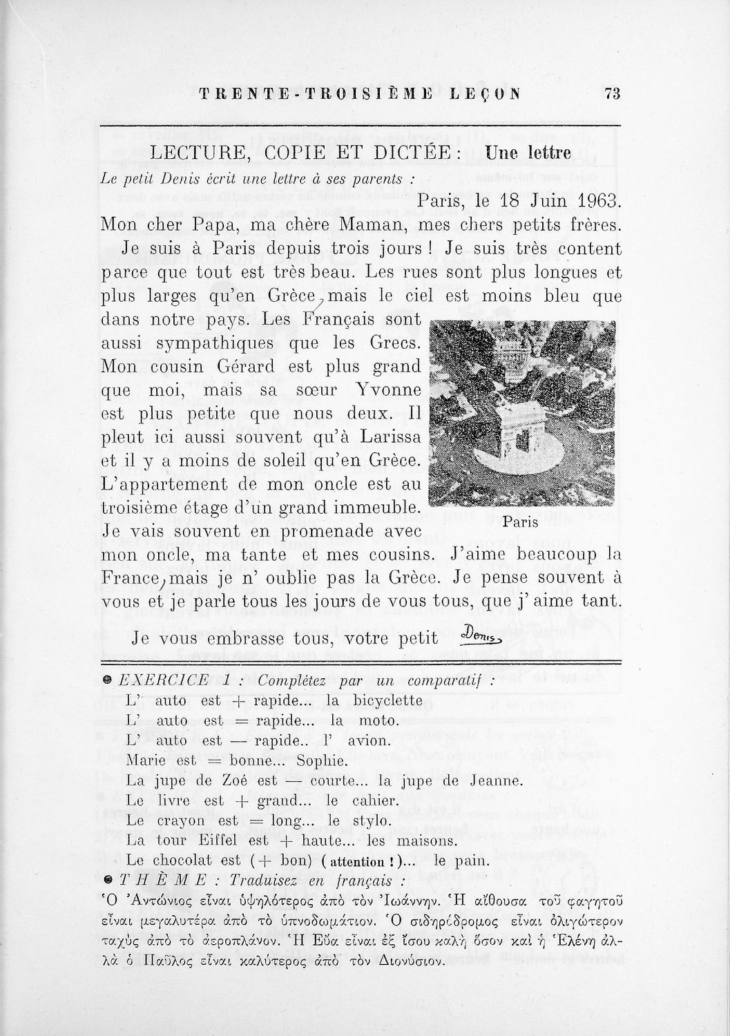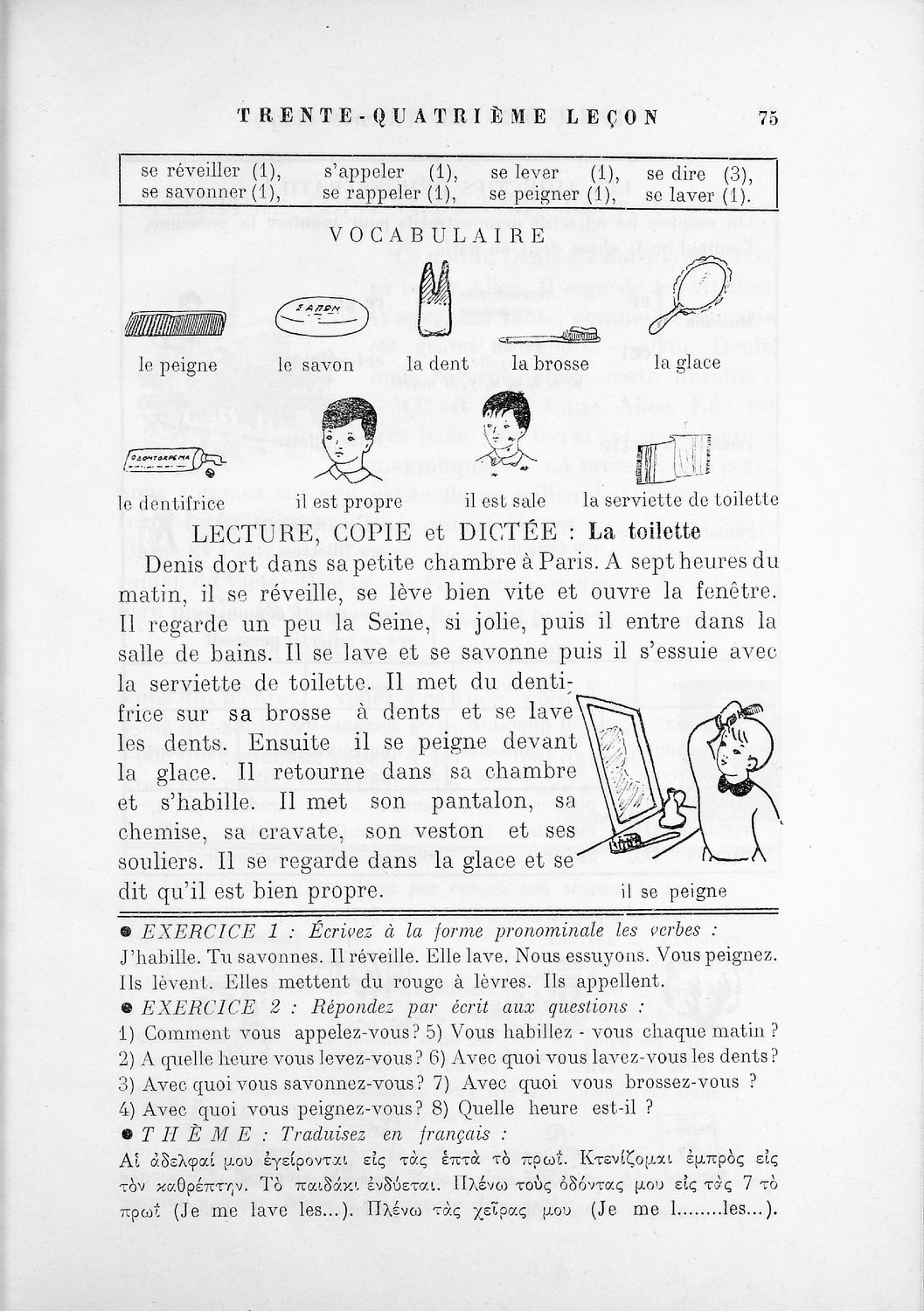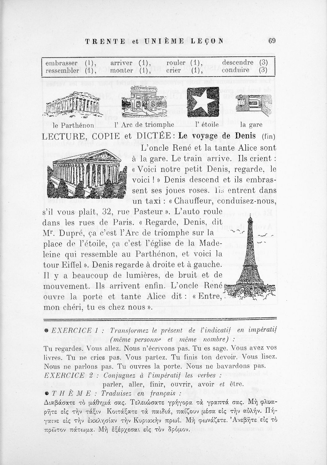 Σχολικό εγχειρίδιο Γαλλικών για τα Ελληνικά Σχολεία που περιέχει τους βασικούς κανόνες γραμματικής της γαλλικής γλώσσας καθώς και σειρά ασκήσεων για πρακτική εξάσκηση των μαθητών. Περιλαμβάνεται και λεξιλόγιο.