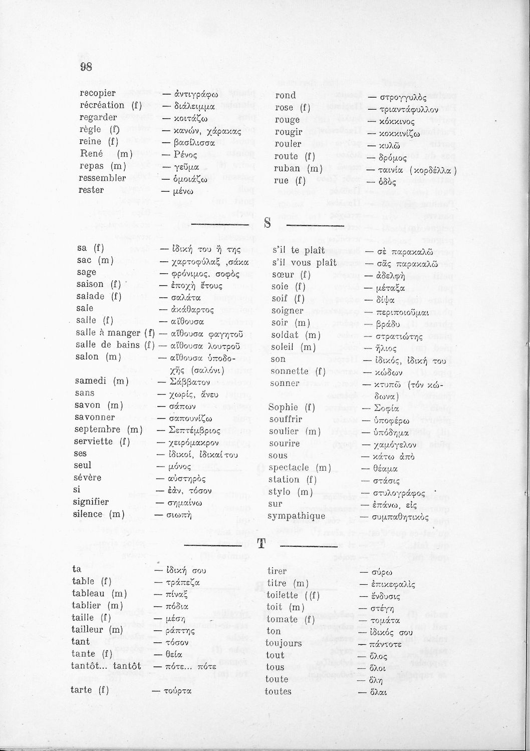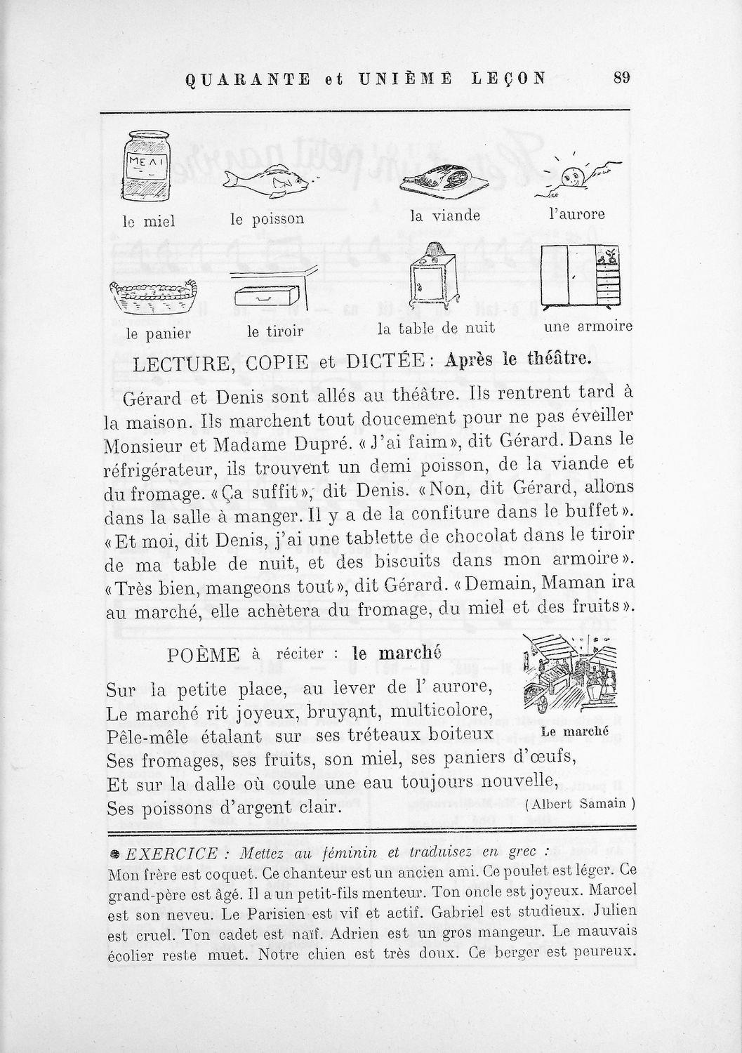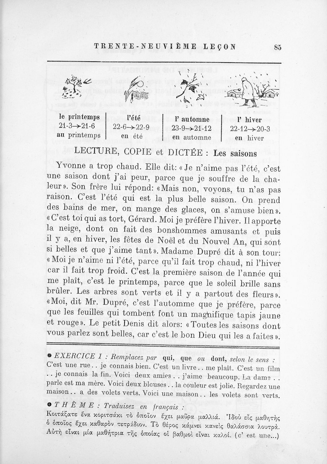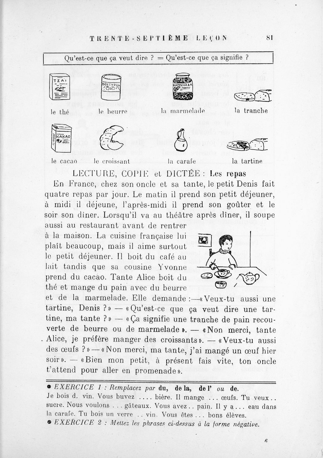 Κωδικός αναγνώρισης: 01-17302 Τίτλος: Cours de langue francaise Συγγραφέας: Gisele Vivier, Paul Scarpetis, Δώρα Χιωτοπούλου (επιμέλεια) Εικονογράφος: Αγλαΐα Ζαχαράκη Μέγεθος και υπόστρωμα: Σχολικό εγχειρίδιο, 24εκ., σκληρό εξώφυλλο, 103 σελίδες. Σκίτσα (ασπρόμαυρα). |
