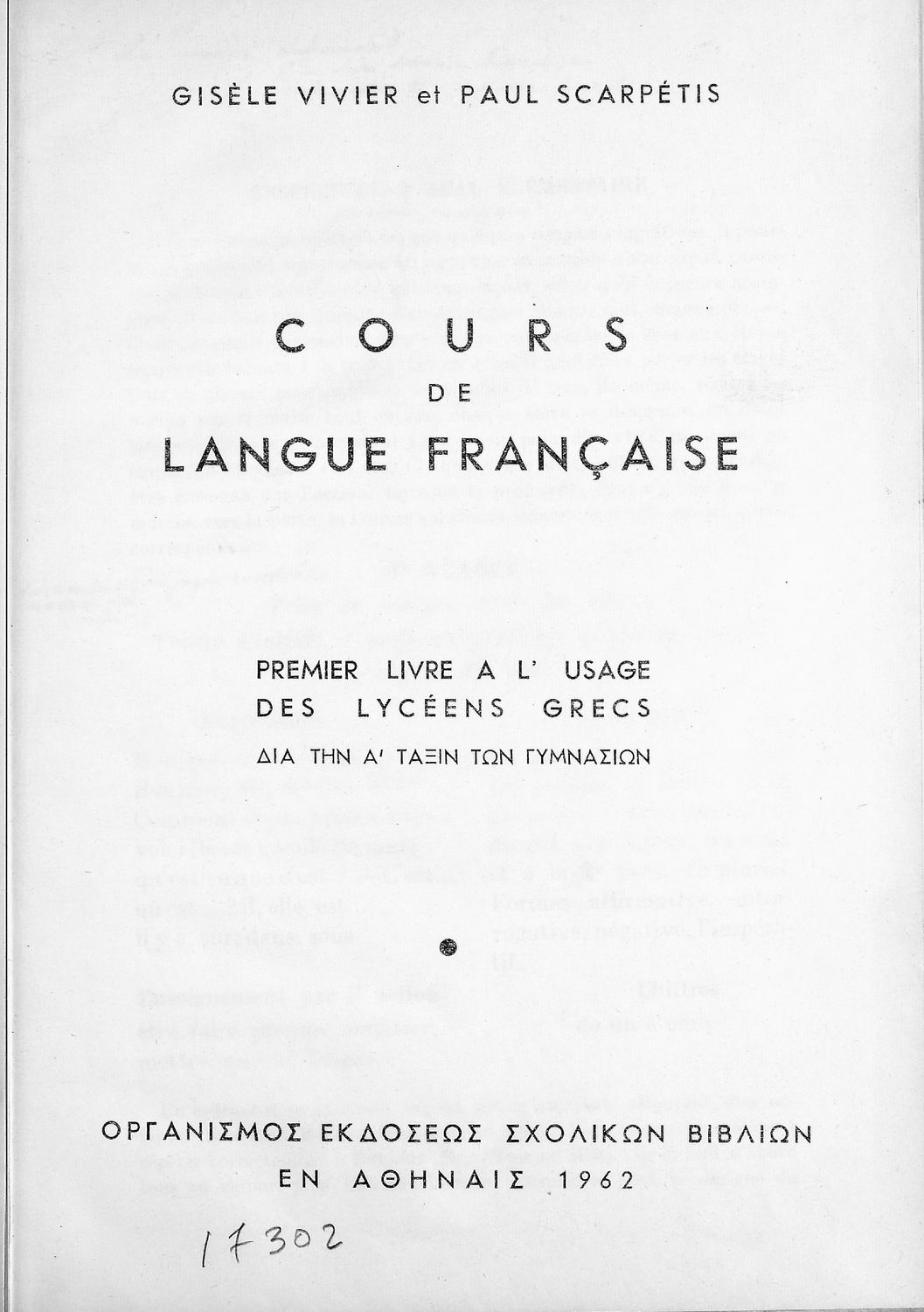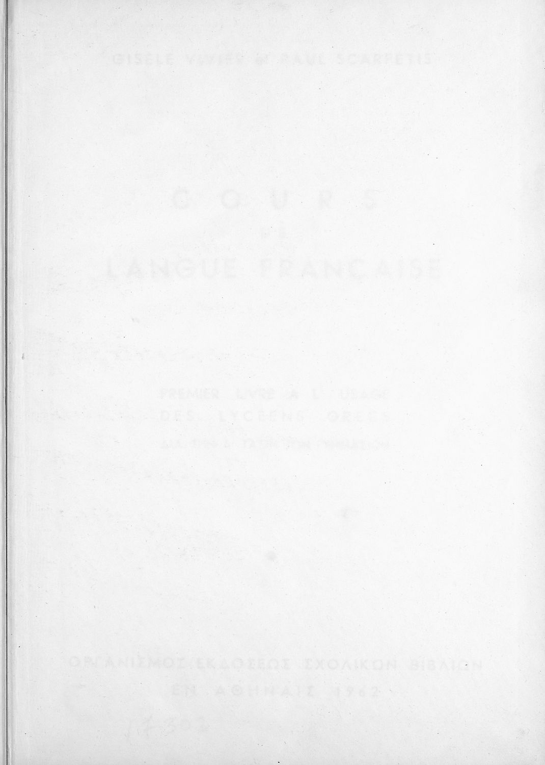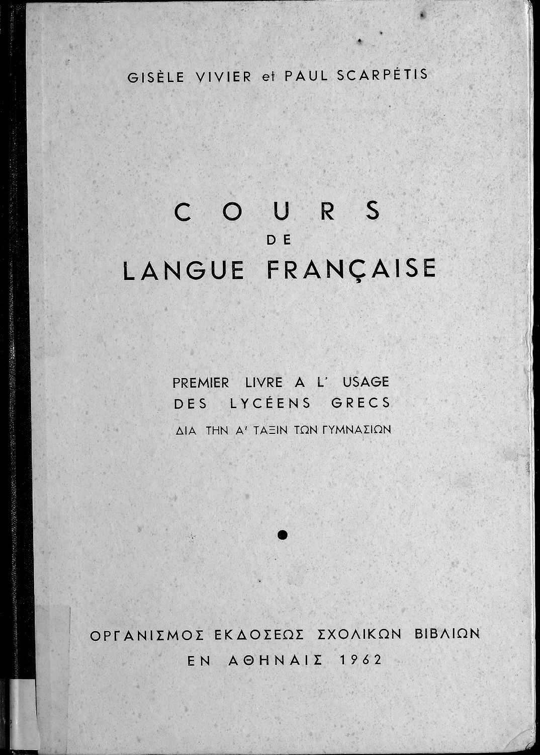 Σχολικό εγχειρίδιο Γαλλικών για τα Ελληνικά Σχολεία που περιέχει τους βασικούς κανόνες γραμματικής της γαλλικής γλώσσας καθώς και σειρά ασκήσεων για πρακτική εξάσκηση των μαθητών. Περιλαμβάνεται και λεξιλόγιο.