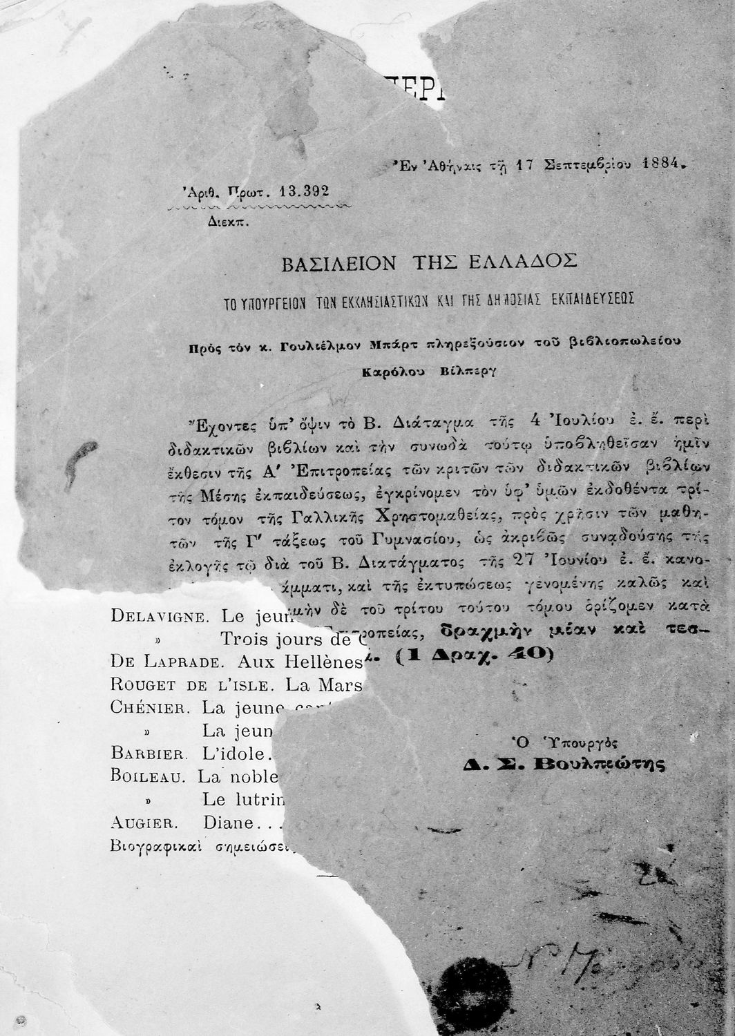 Υπουργική απόφαση / Σύμβαση: 13392/17-9-1884