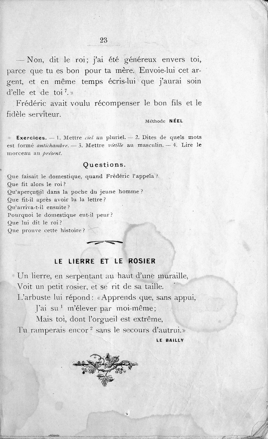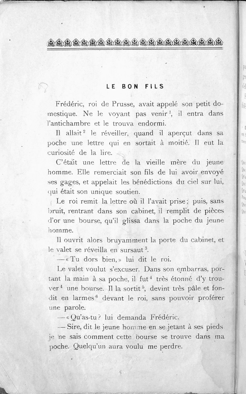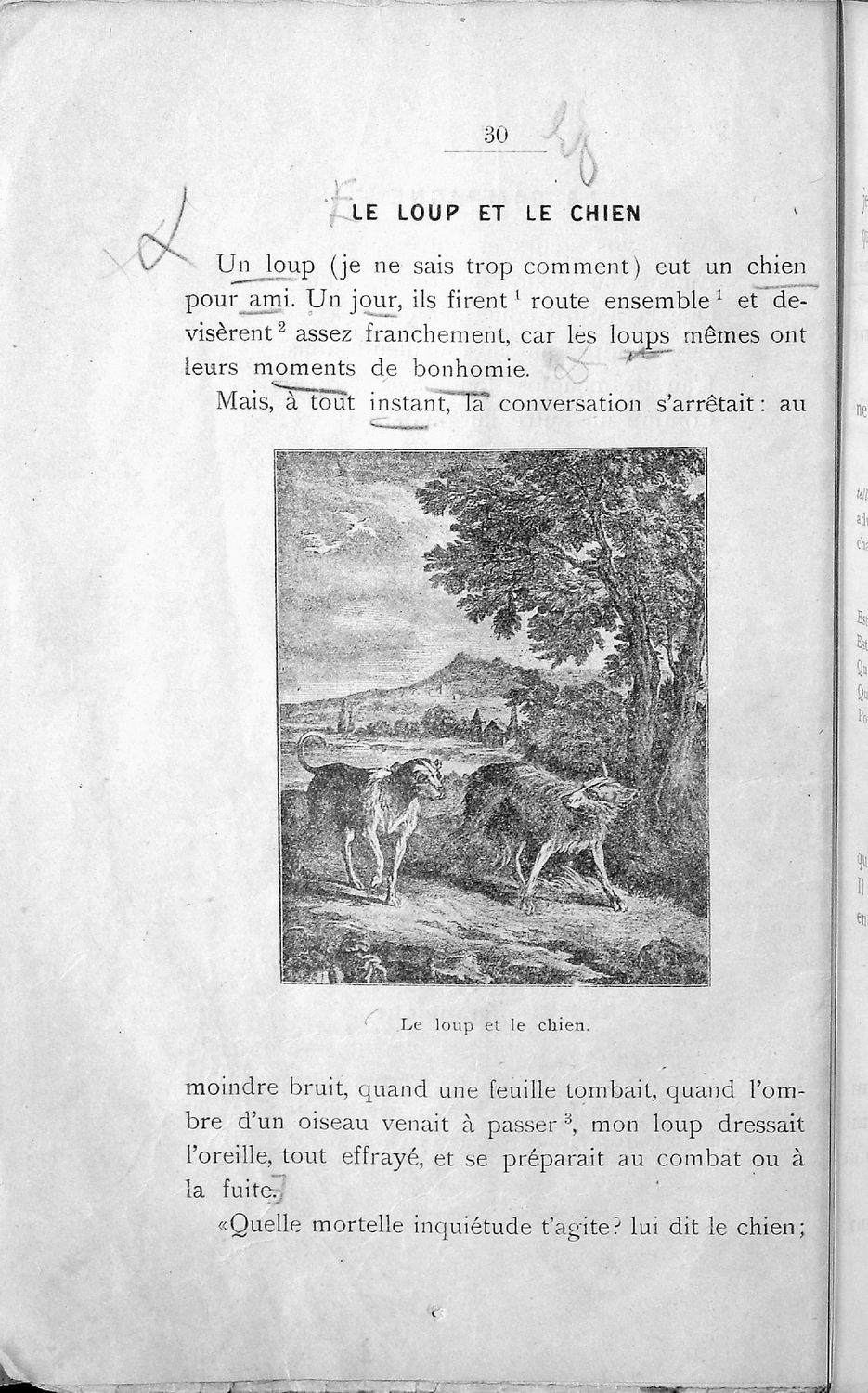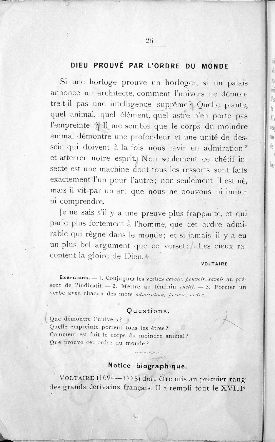 Σχολικό εγχειρίδιο Γαλλικών για τις Γ΄ Γυμνάσιου, Β΄ Διδασκαλείου Θηλέων και Α' Διδασκαλείου Αρρένων που περιέχει αποσπάσματα έργων Γάλλων συγγραφέων, και γλωσσικά και ερμηνευτικά σχόλια.