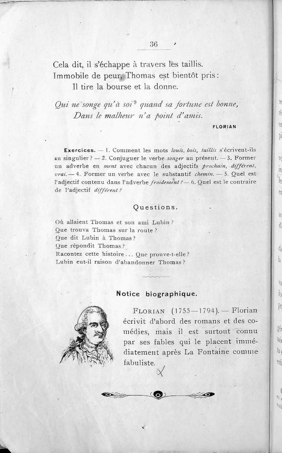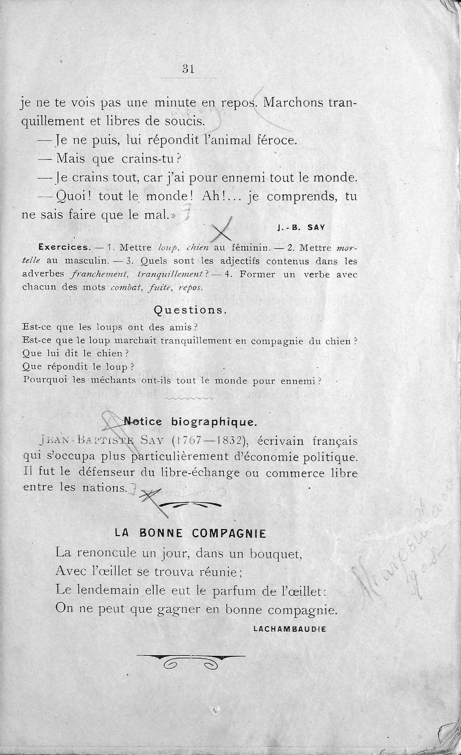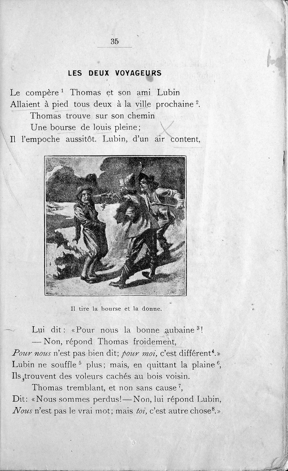 Σχολικό εγχειρίδιο Γαλλικών για την Α΄ Γυμνασίου και τις Β΄ και Γ τάξεις των Αστικών Σχολείων που περιλαμβάνει πεζά, ποιήματα, λεξιλόγιο, βιογραφικά σημειώματα των συγγραφέων και επεξηγηματικές σημειώσεις.
