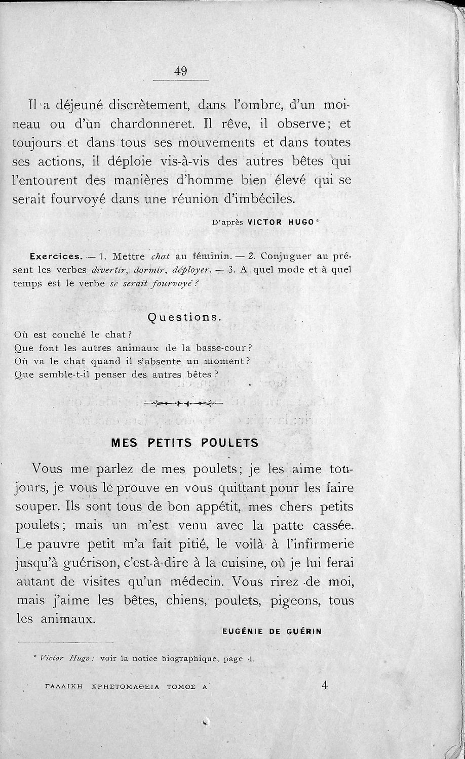 Γαλλική Χρηστομάθεια δια την Α΄ τάξιν του Γυμνασίου, δια την Β’ και Γ’ τάξιν των Αστικών Σχολείων θηλέων, τόμος Α
