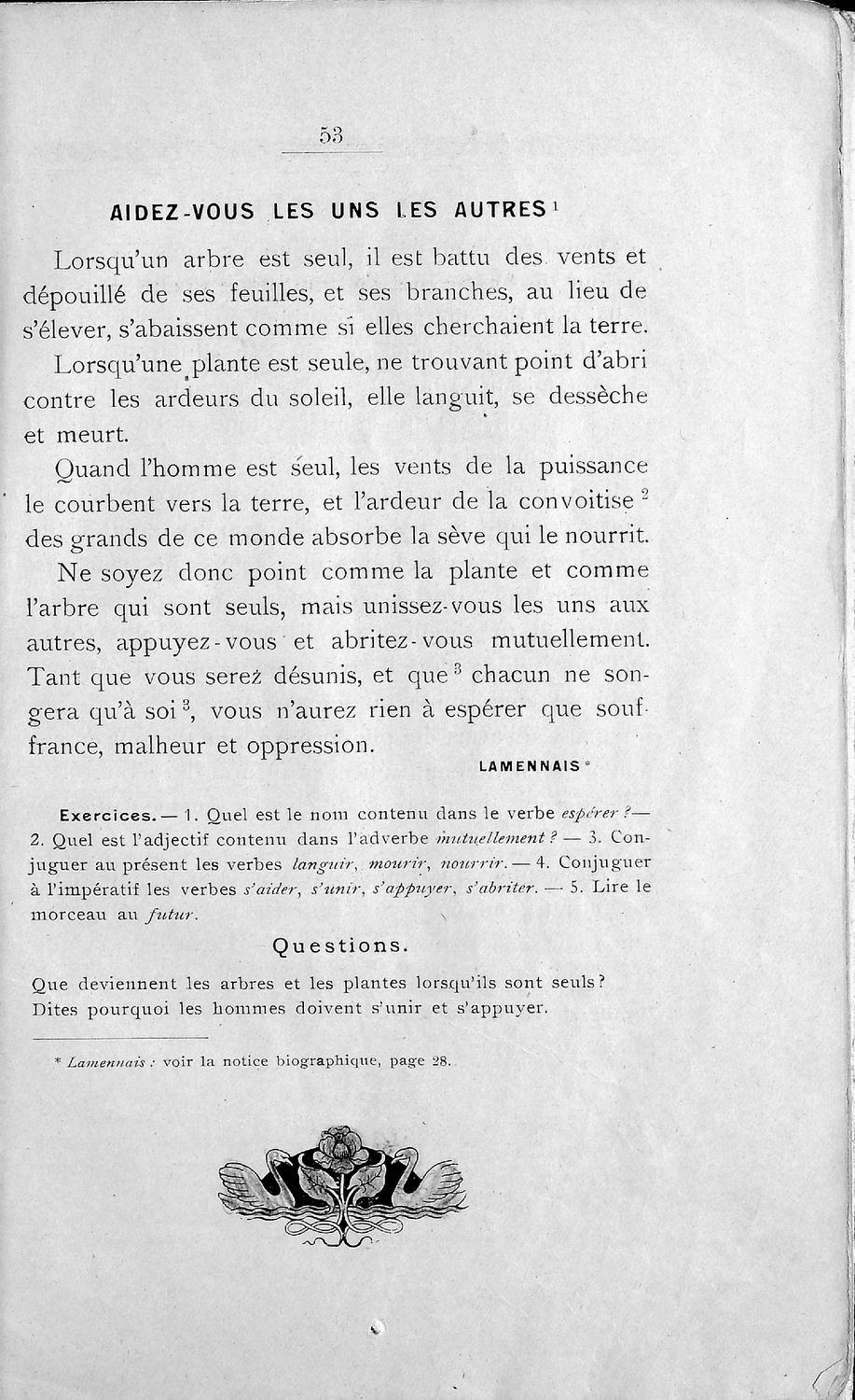 Σχολικό εγχειρίδιο Γαλλικών για την Α΄ Γυμνασίου και τις Β΄ και Γ τάξεις των Αστικών Σχολείων που περιλαμβάνει πεζά, ποιήματα, λεξιλόγιο, βιογραφικά σημειώματα των συγγραφέων και επεξηγηματικές σημειώσεις.