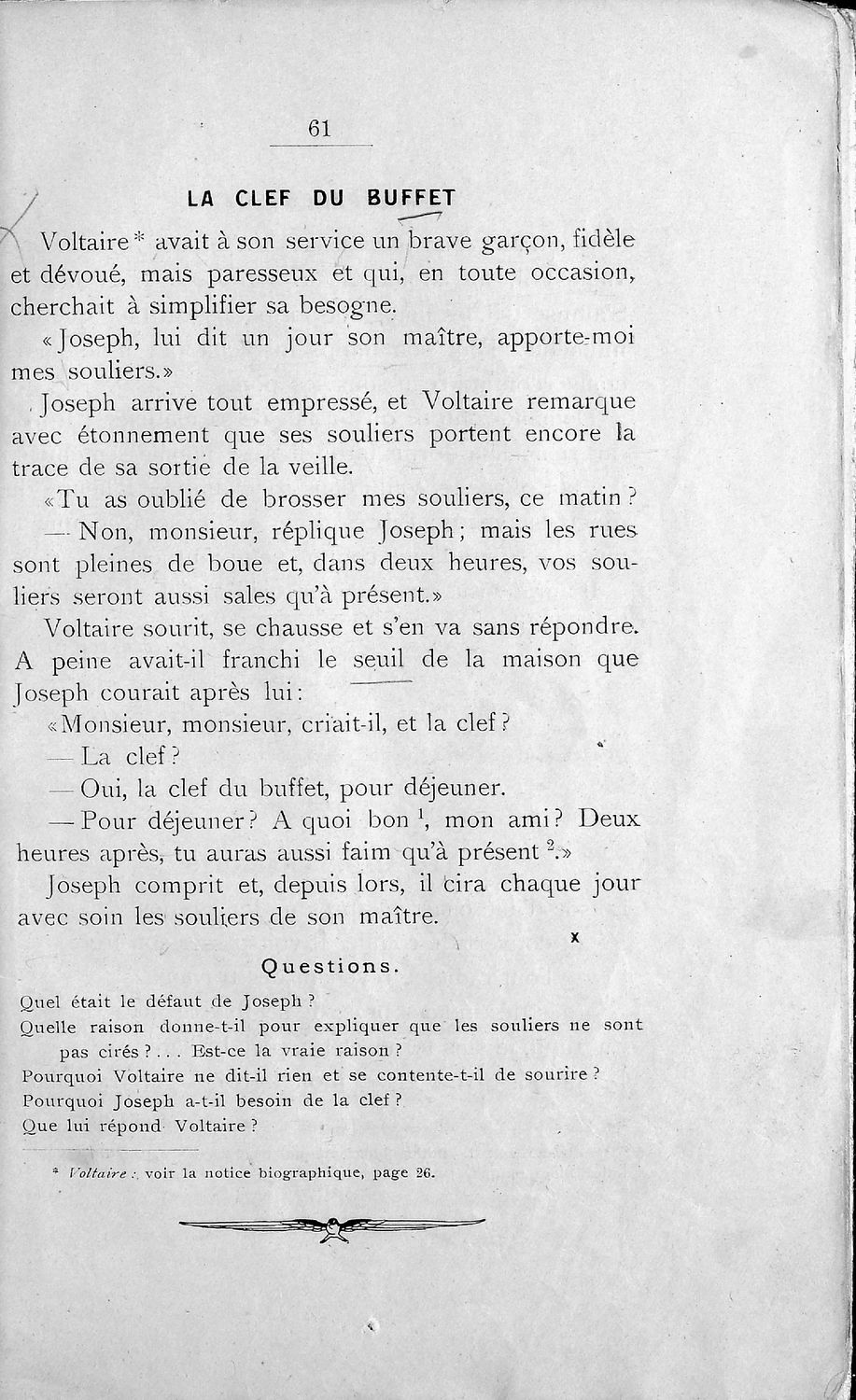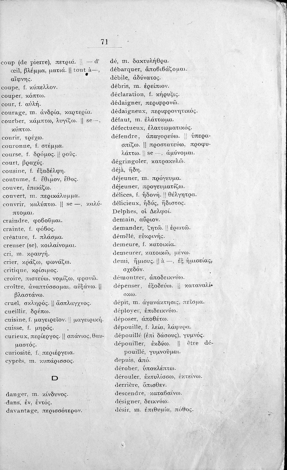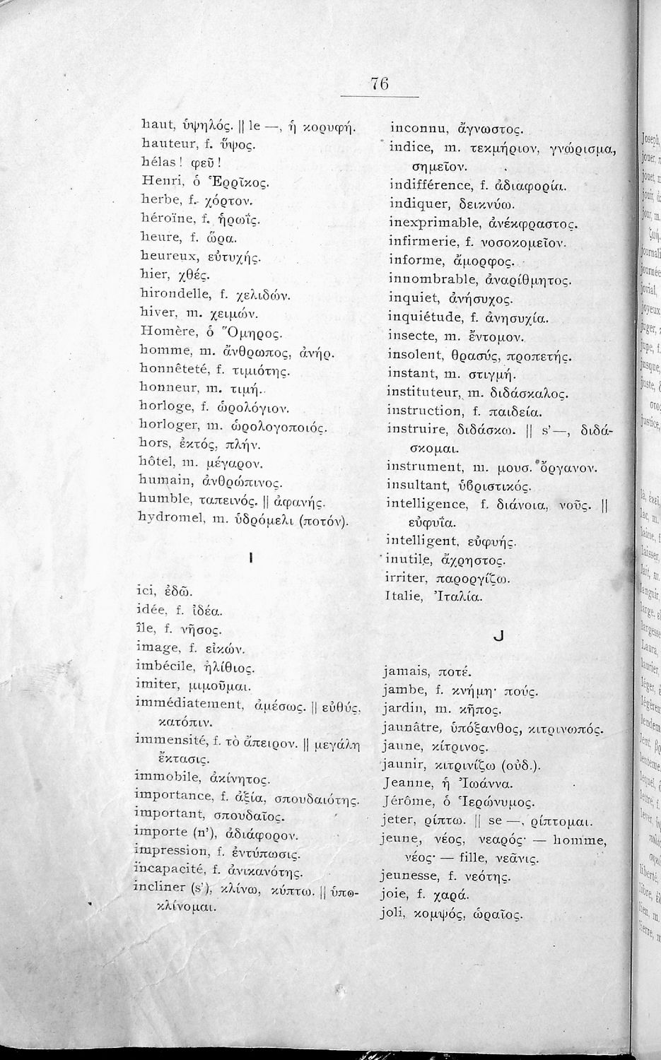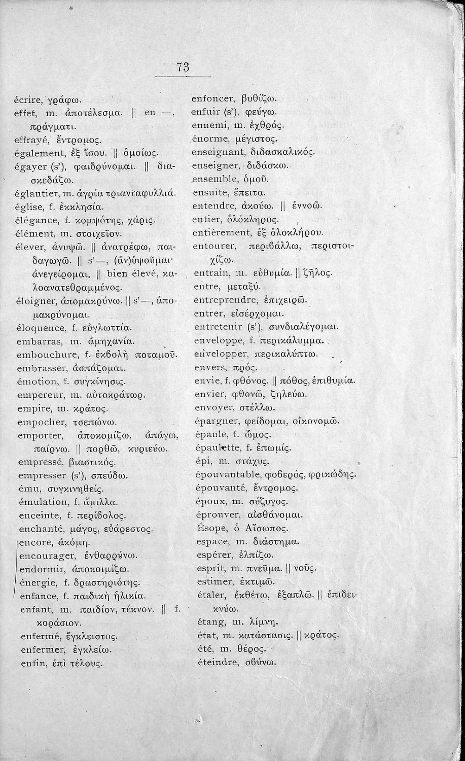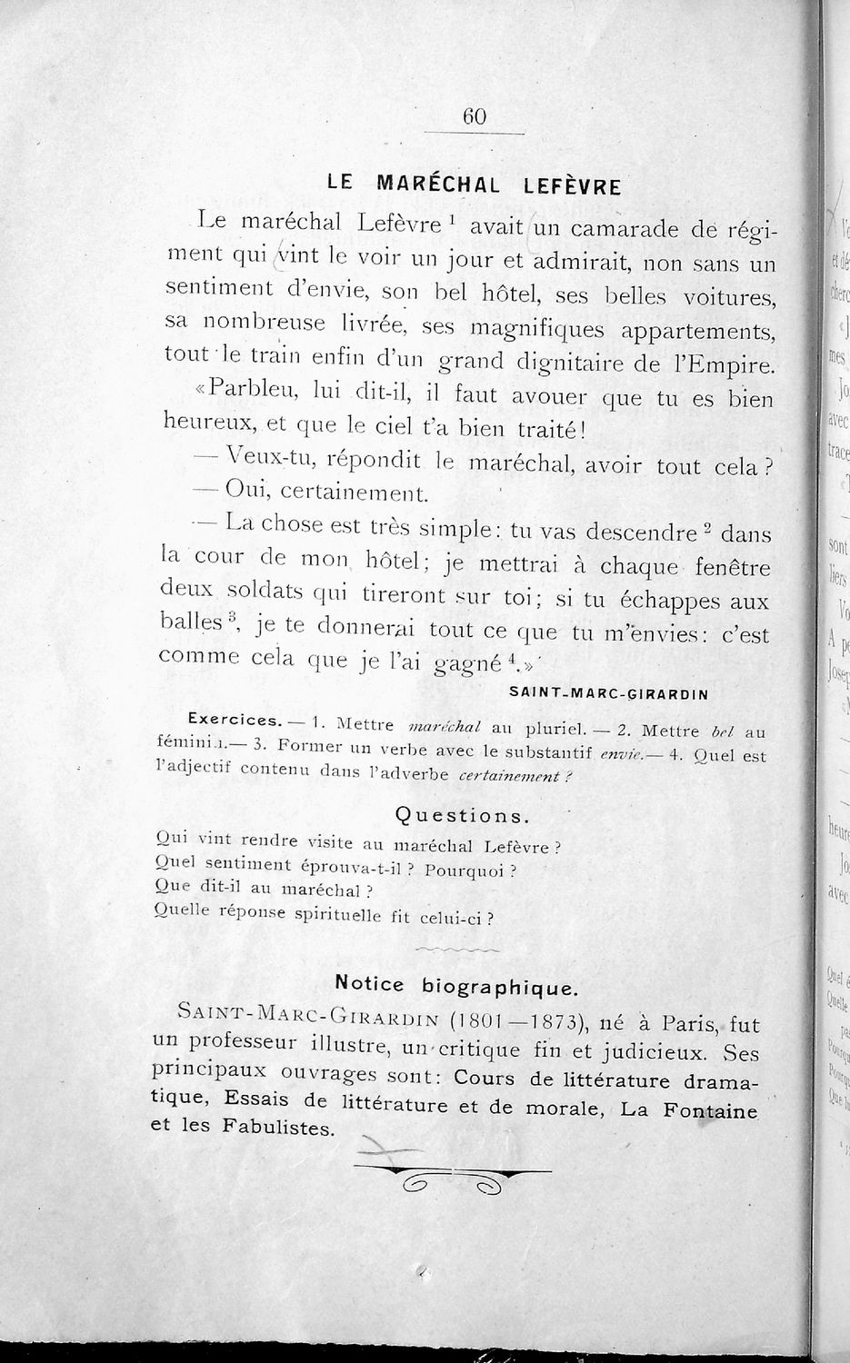 Σχολικό εγχειρίδιο Γαλλικών για τις Γ΄ Γυμνάσιου, Β΄ Διδασκαλείου Θηλέων και Α' Διδασκαλείου Αρρένων που περιέχει αποσπάσματα έργων Γάλλων συγγραφέων, και γλωσσικά και ερμηνευτικά σχόλια.