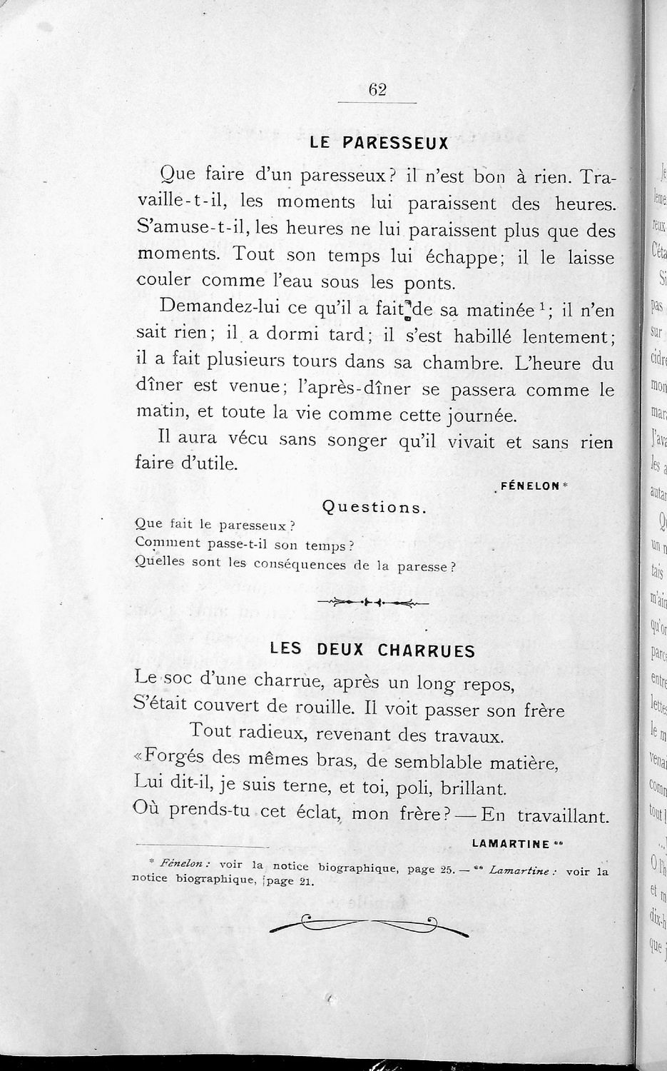 Σχολικό εγχειρίδιο Γαλλικών Α΄ Γυμνασίου και Γ΄ Αστικού Σχολείου που περιλαμβάνει αποσπάσματα έργων επιφανών Γάλλων συγγραφέων, σύντομα βιογραφικά σημειώματα, επεξηγηματικά σχόλια, ασκήσεις και λεξιλόγιο.