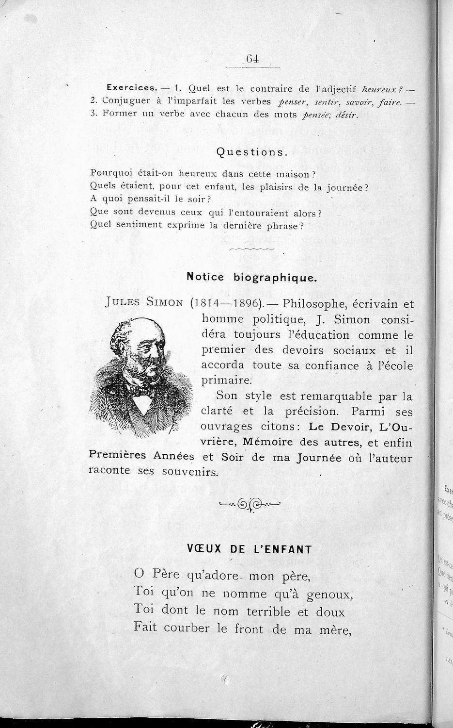 Σχολικό εγχειρίδιο Γαλλικών για την Α΄ Γυμνασίου και τις Β΄ και Γ τάξεις των Αστικών Σχολείων που περιλαμβάνει πεζά, ποιήματα, λεξιλόγιο, βιογραφικά σημειώματα των συγγραφέων και επεξηγηματικές σημειώσεις.