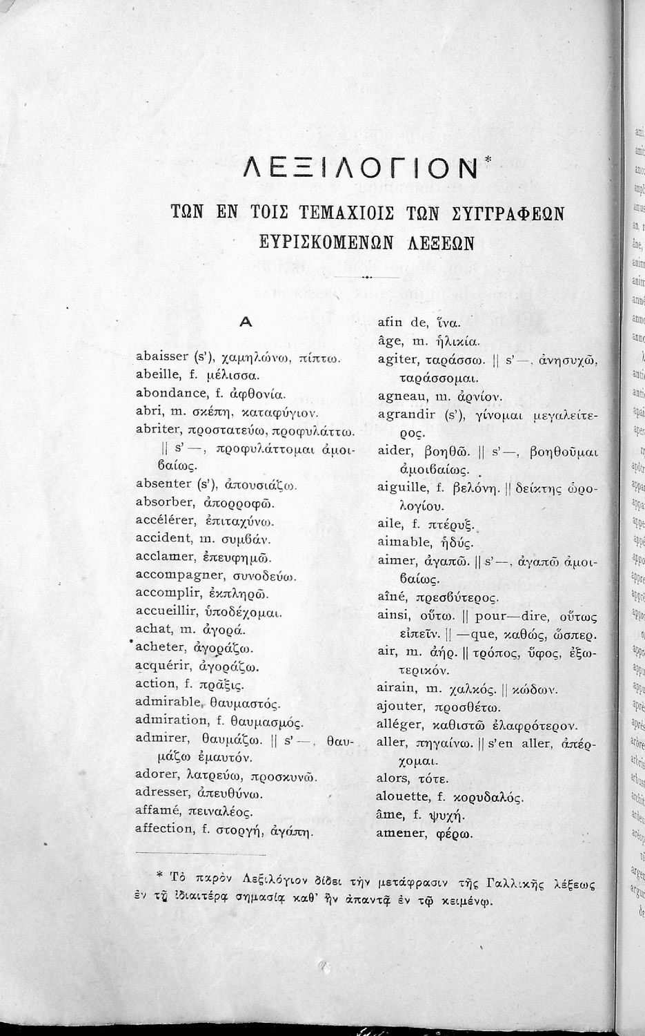 Γαλλική Χρηστομάθεια δια την Α΄ τάξιν του Γυμνασίου, δια την Β’ και Γ’ τάξιν των Αστικών Σχολείων θηλέων, τόμος Α