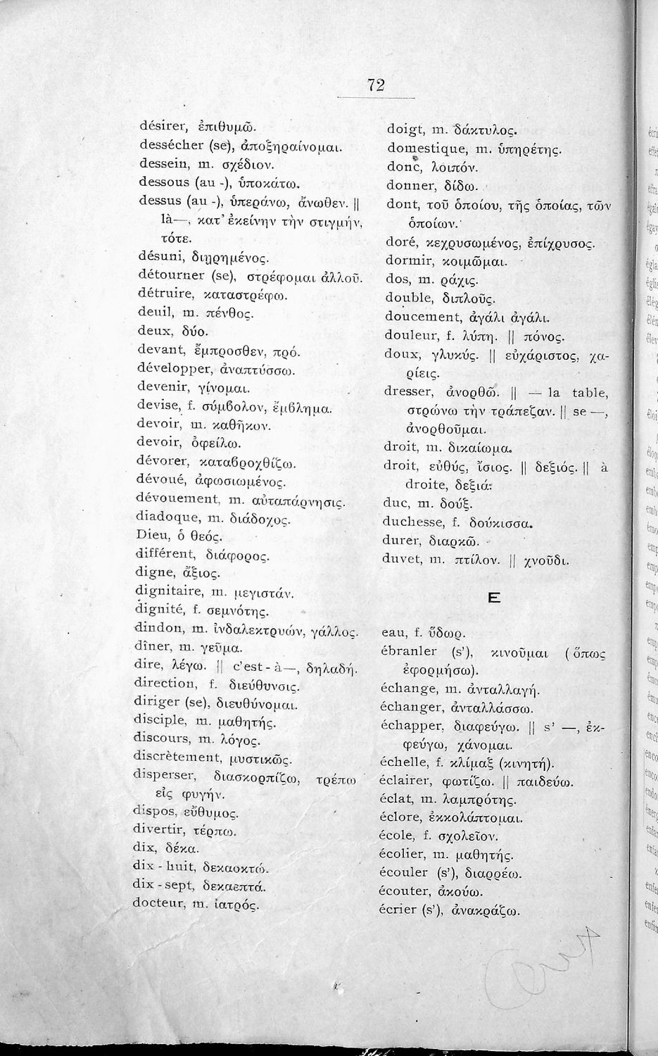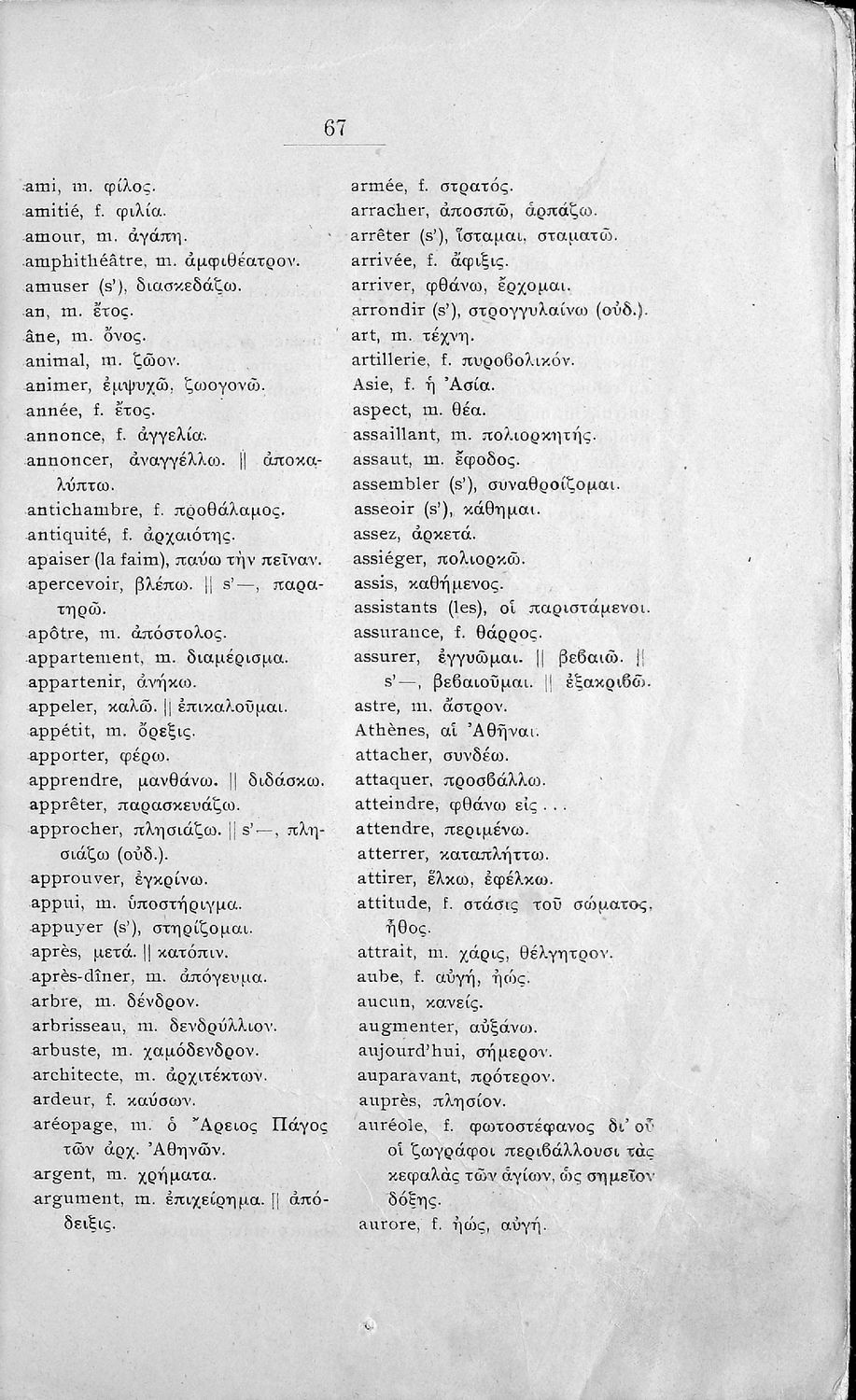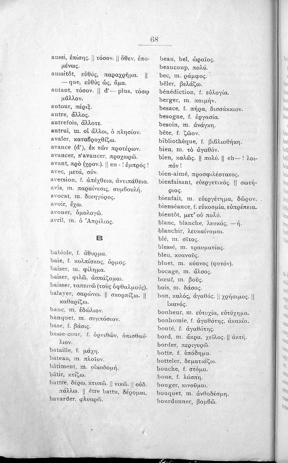 Σχολικό εγχειρίδιο Γαλλικών για τις Β’ και Γ’ Ελληνικού και Αστικού Σχολείου και Παρθεναγωγείου που περιλαμβάνει ασκήσεις προφοράς, συνομιλίας και γραμματικής, και λεξιλόγιο.